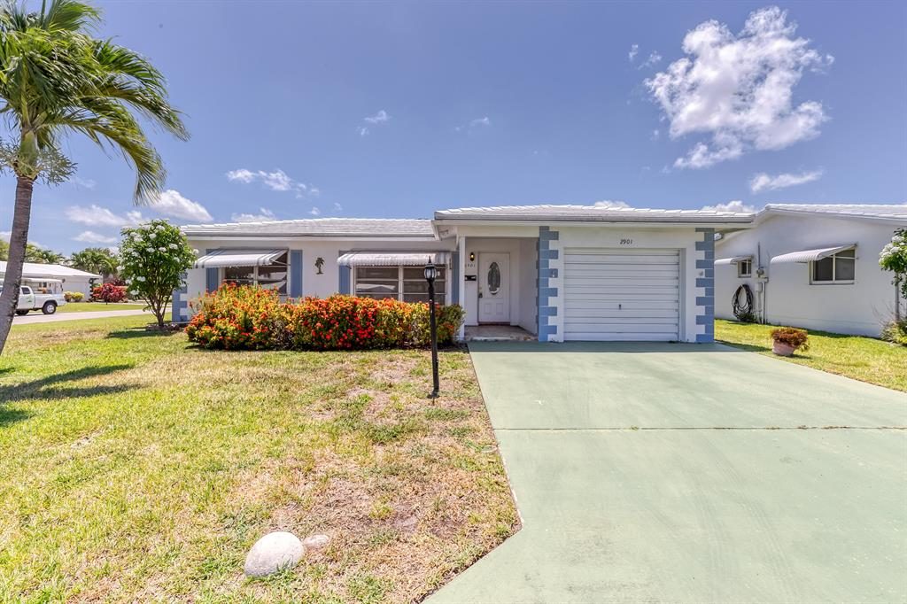 This beautiful and spacious 2 Bedroom/2 bath home with a one car garage is situated on a corner lot. Verified 55+ Community. Washer/dryer to stay. Low Maintenace fee includes lawn, water, Association scheduled house/roof painting. Community amenities include: 2 heated poos, 2 clubhouses, 9-hole/Par 3 Golf Course, association scheduled Courtesy Bus.