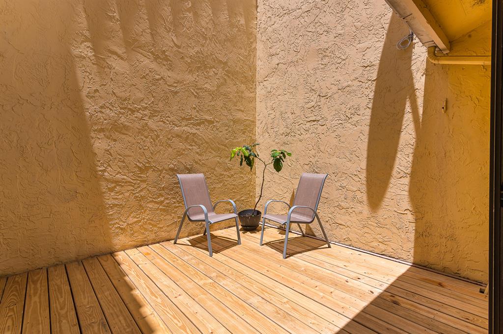 Not a thing to be done, this home is in move-in condition. 3 Bedrooms and bathroom with one bed and bath on the first floor. New pressure treated wood on the atrium deck, new plank flooring on stairs and second floor, ceramic tile on main level, all newly painted. Newer Dishwasher and dryer, AC is 2017. Accordion shutters on most windows.ASSOCIATION RESPONSIBLE FOR ROOF!