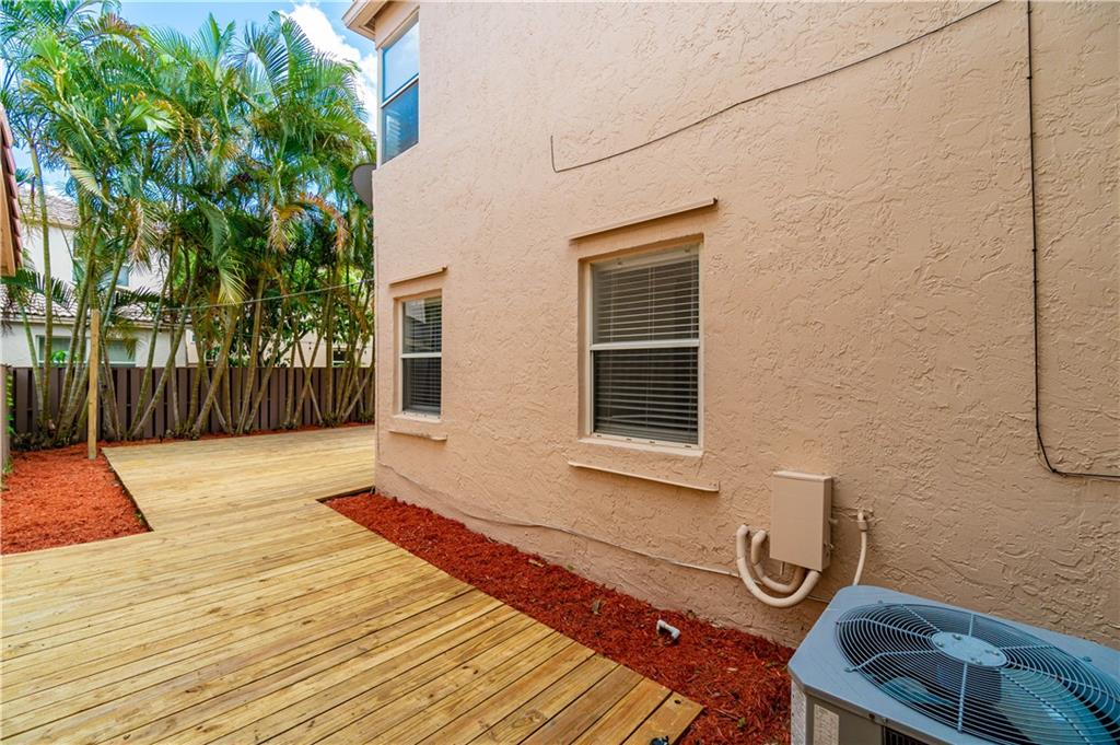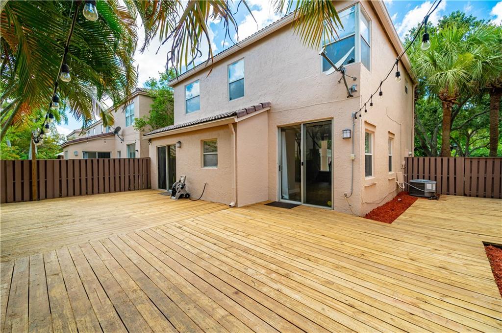 BACK ON THE MARKET, Single Family 2 story home with 3 bedrooms, 2.5 bathrooms and 1 car garage in the very desirable Fountain Springs Community. Four car driveway plus plenty of guest parking lot across the street. Upgraded Porcelain Floors & Granite Kitchen. Each Bedroom has ceiling fans as well as higher end window shades. Master bedroom walk-in-closet with additional closet. Crown molding, updated wood porch, surrounded by Palm Trees along the Wooden Fence in the back yard. HOA maintains front lawns, trees, shrubs & also paints every 7 years. Community pool & Clubhouse. Enjoy walking across Plantation's Deicke Park complete with Playground, Picnic Pavilions, Open Sports Field and Basketball Court.