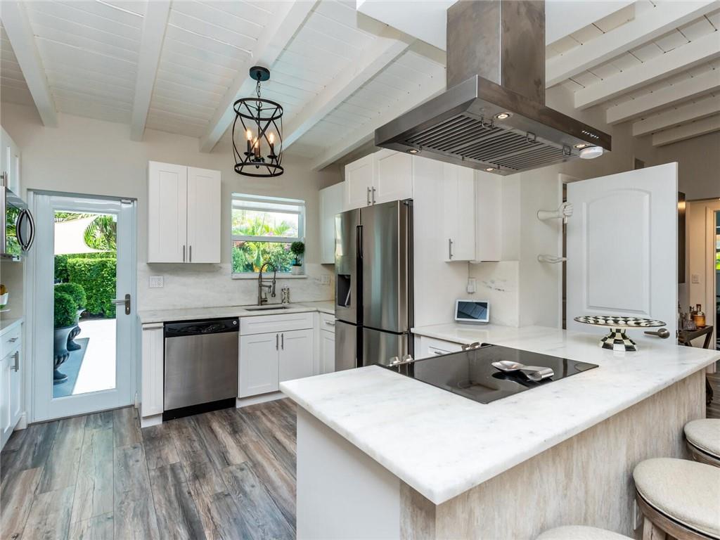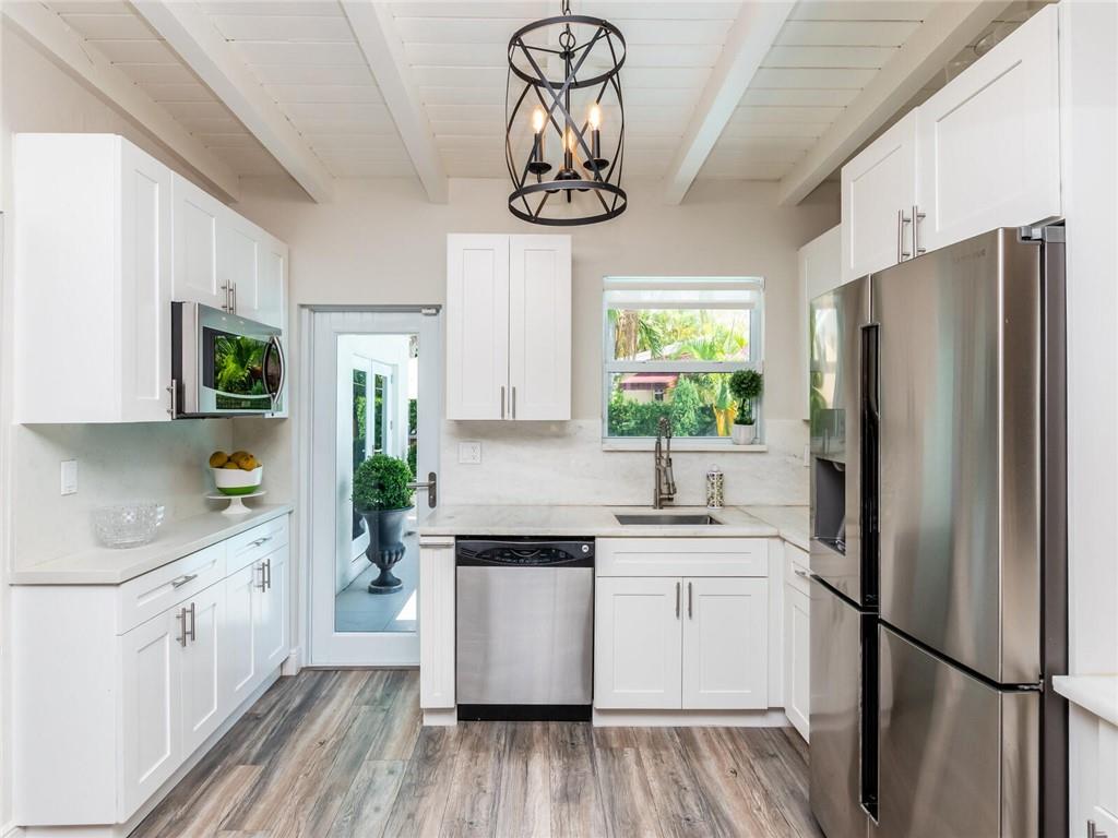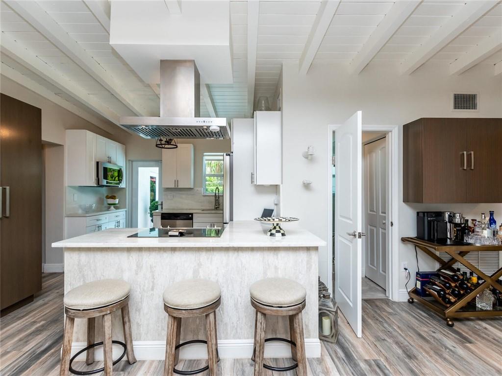 Amazing opportunity to own this gorgeous home in the prestigious gated Keystone Point! This 3 bedroom 3 bathroom pool home features a split floor plan with vaulted ceilings and upgrades throughout. Upgrades include engineered wood flooring, updated modern kitchen with quartz countertops and marble backsplash, updated stainless steel appliances and front load washer & dryer, High Impact windows, water heater only 3 years old, new sprinkler system, updated teak decking w/ 25 year warranty, Flat roof refinished 2 years ago w/ warranty, Heated pool, custom built in cabinets, built in bar and closet organizer systems and so much more! The additional den/ bonus room could easily be converted to a 4th bedroom or office. Nothing left to do but bring your toothbrush and move in!