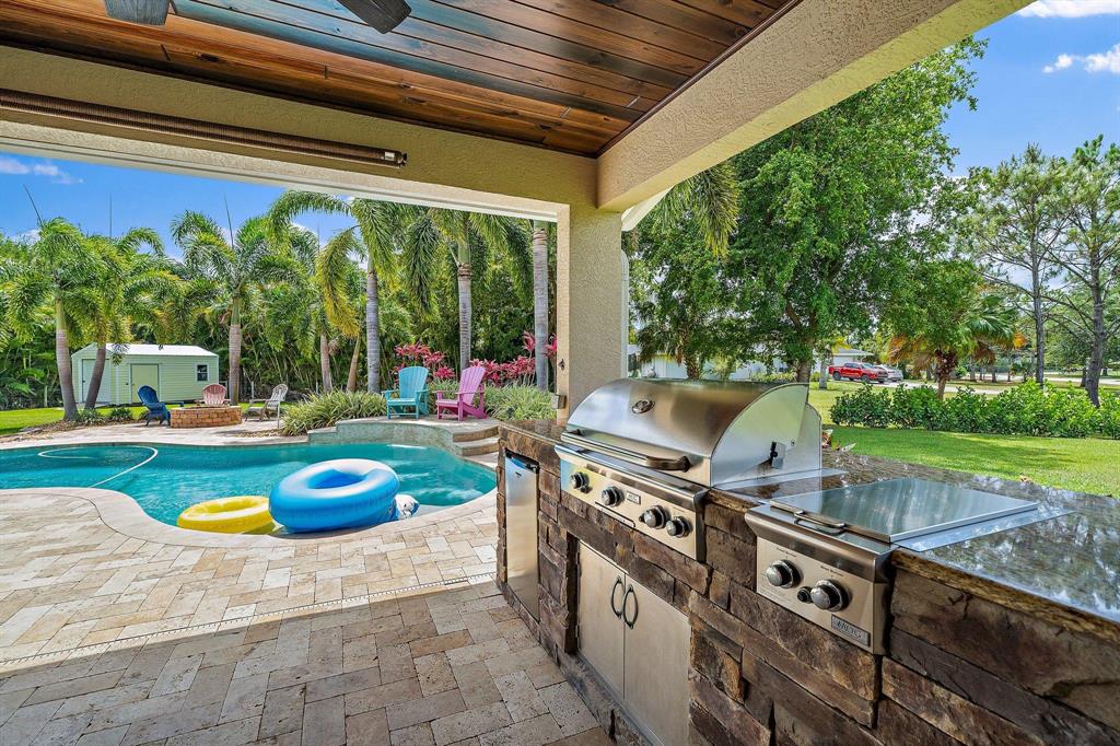 *BRING ALL YOUR TOYS* 6 GARAGE SPACES* 1.3 ACRES* NO HOA* 4/2 POOL HOME*Come and take a look at this fabulous Palm Beach Country Estates gem, but don't wait! Pride of ownership shows in every detail. Built in 2011 with an additional 1000 SQ foot detached garage/workshop added in 2020. The main home and detached garage are both CBS. The home further benefits from impact windows. Over 2600 SQ feet under air providing 4 bedrooms & 2 full bathrooms within a spacious, split floor plan. Sliders from the dining room and master bedroom open to the covered outdoor kitchen/entertaining area and the tropical pool deck just beyond. The fully sodded, irrigated & meticulously landscaped LOT extends to a little over 1.3 acres.Video tour attached.Showings available from Friday 30th July.