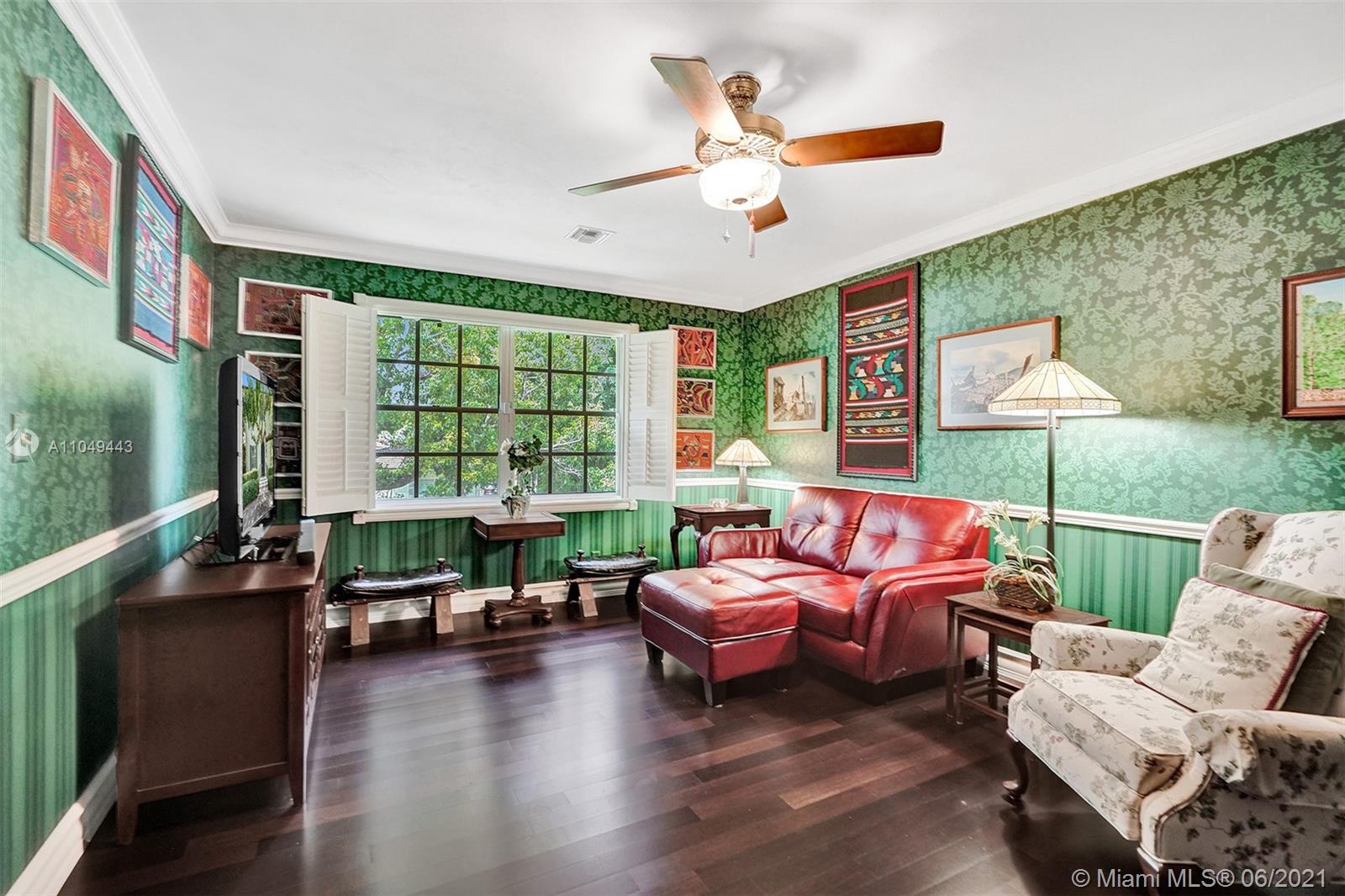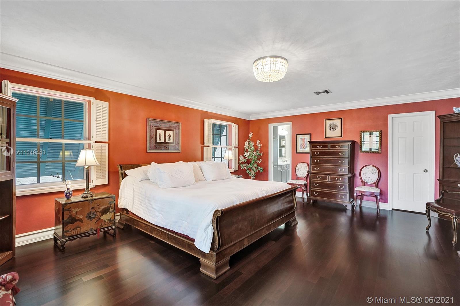 Chateau in Coral Gables perfectly sited on a private lush corner lot shaded by mature live oaks and surrounded by floral formal gardens. Double wrought iron gated entrance leads to the spectacular foyer with a majestic inlaid wenge wood staircase & traditional wainscoting. Spacious formal living room with a rococo marble fireplace and formal dining room covered with rich dark wenge wood flooring. Beautiful kitchen with a breakfast nook & powder room & 2 car garage on the first floor. Second story features 2 appointed master bedrooms with en-suite master baths, immense walk-in closets and a private office. Centrally located in the heart of Coral Gables within walking distance to Riviera Golf Course, Biltmore Hotel, Venetian Pool, and minutes to the University of Miami and top shcools.