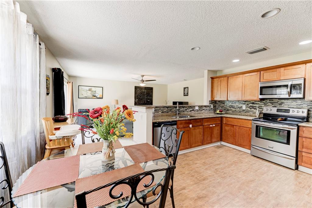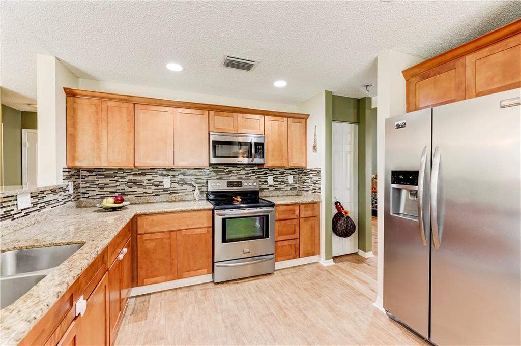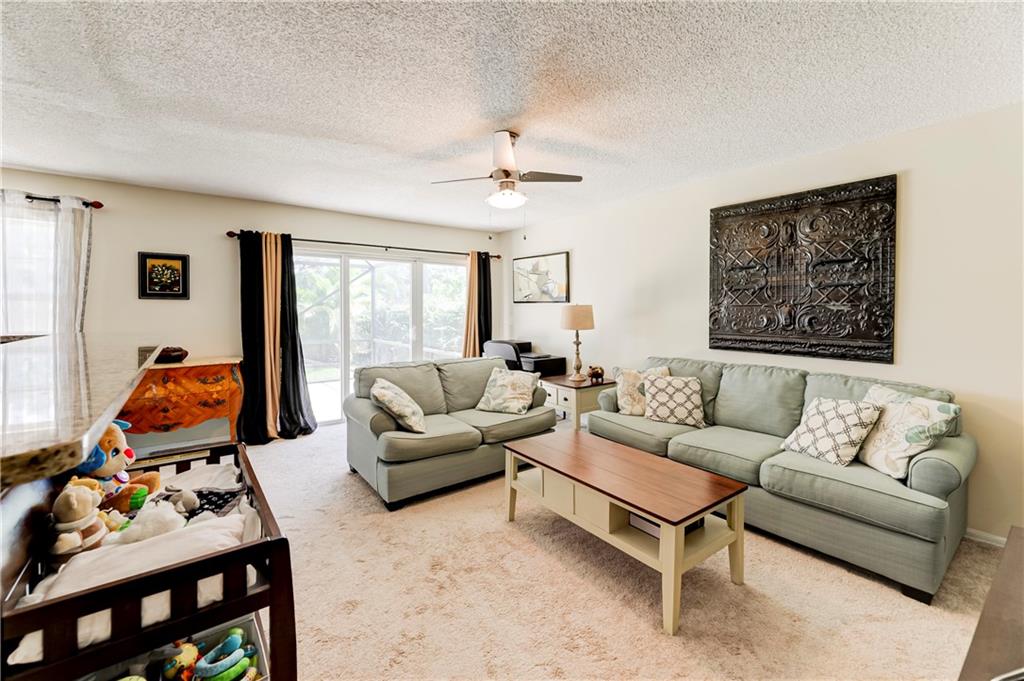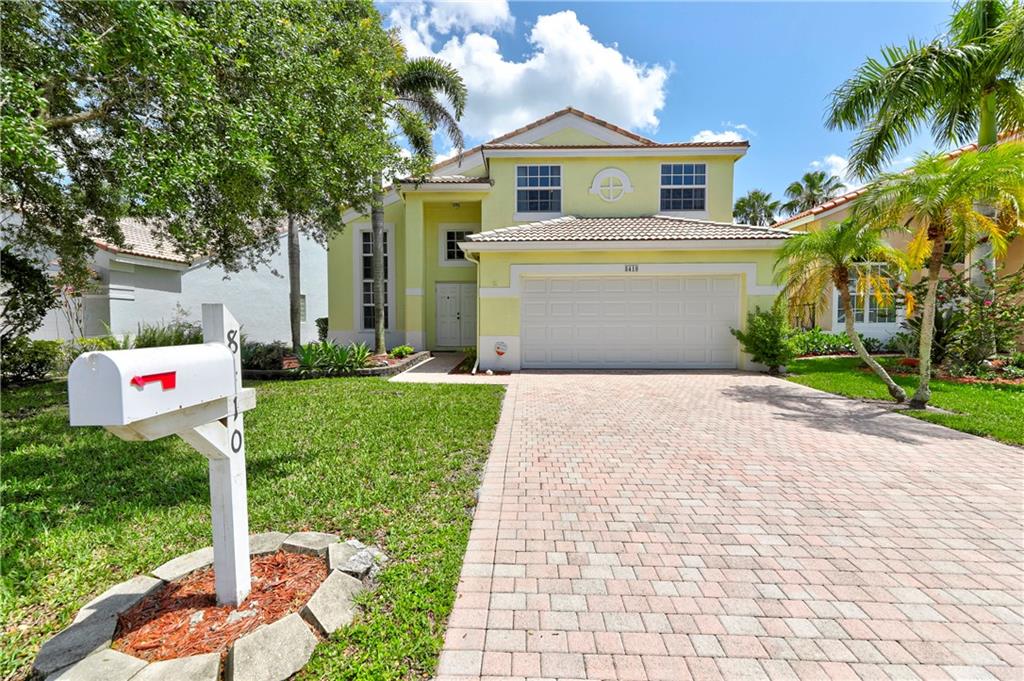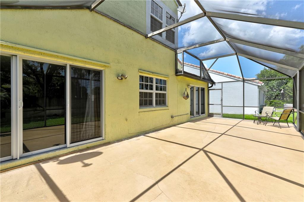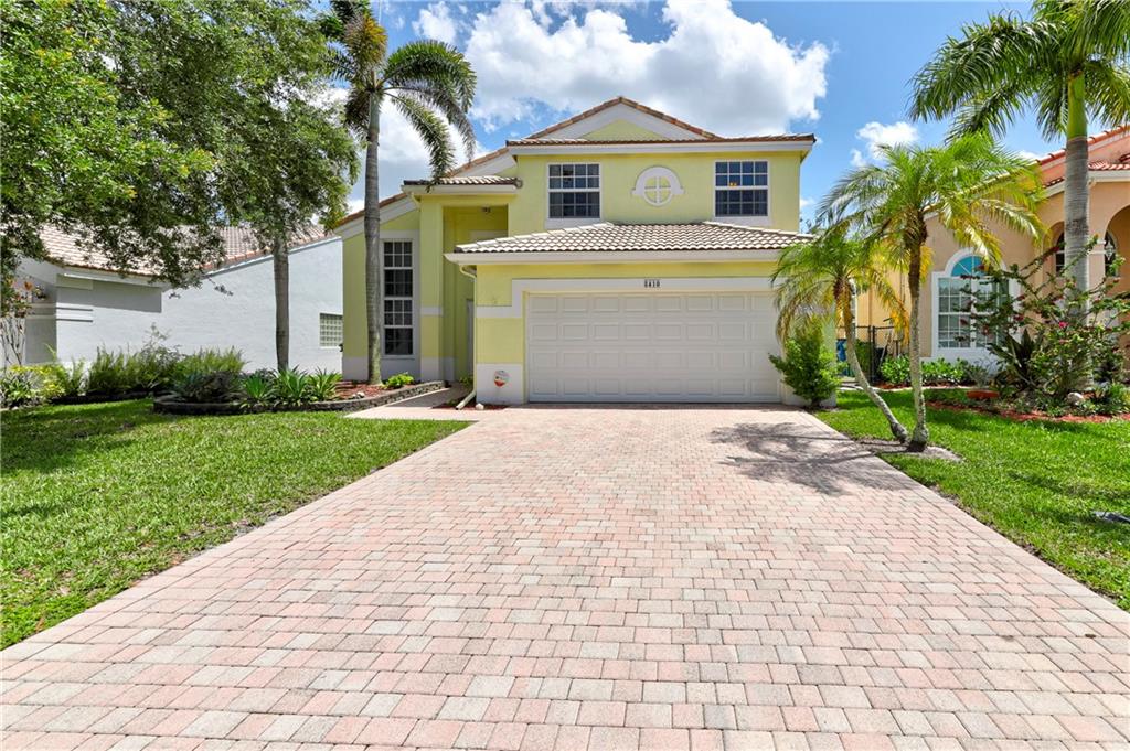 MUST SEE! Beautiful 3/2/1 single family home in Pine Ridge. Updated kitchen with wood cabinets, granite counter top and stainless steel appliances. Wood floor throughout the living room, dining room and kitchen area. Separate nice size family room, connected with the kitchen and eating area. Completely remodeled 2 bathrooms upstairs and 1 half bathroom downstairs. Curtain are custom made for all the windows, and will stay. Large screen patio with beautiful landscaping. Home has impact doors, windows and impact garage door, that gives a large saving on the monthly electric bill. 2 car garage with installed shelf's for storage, and additional 2 parking spaces in the driveway. Community is gated, and is near major shopping stores.