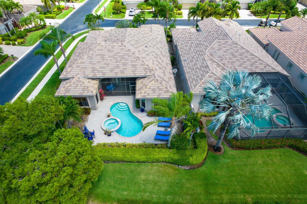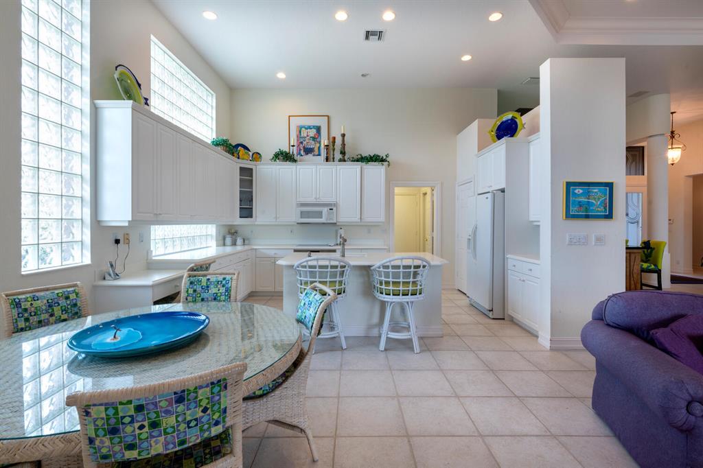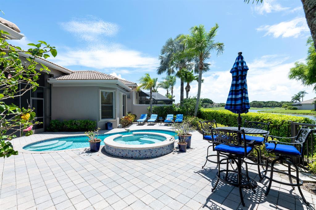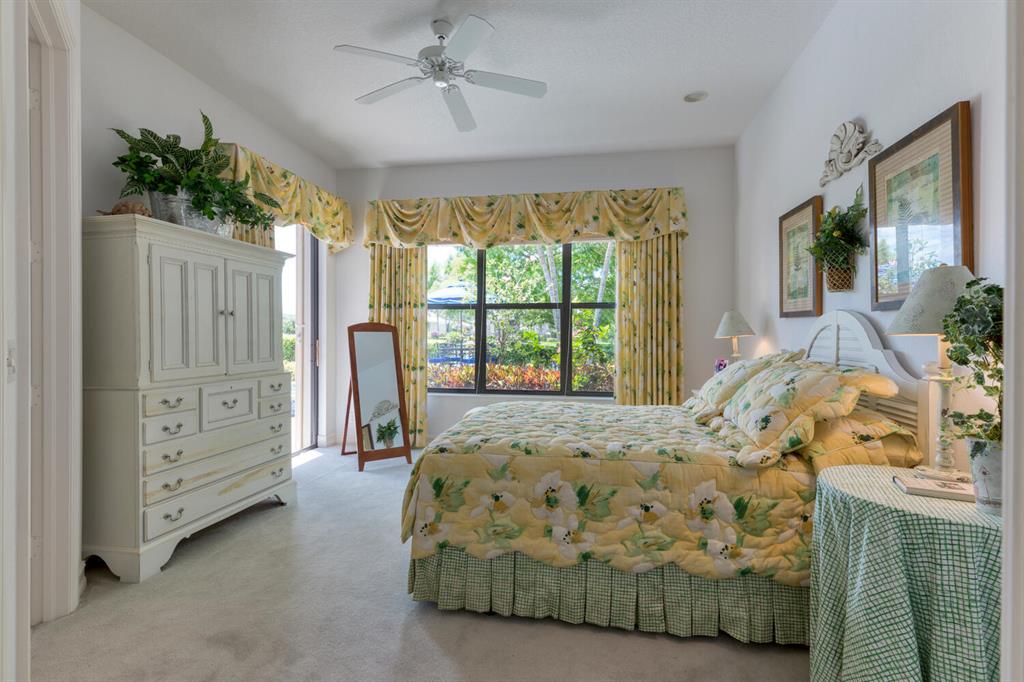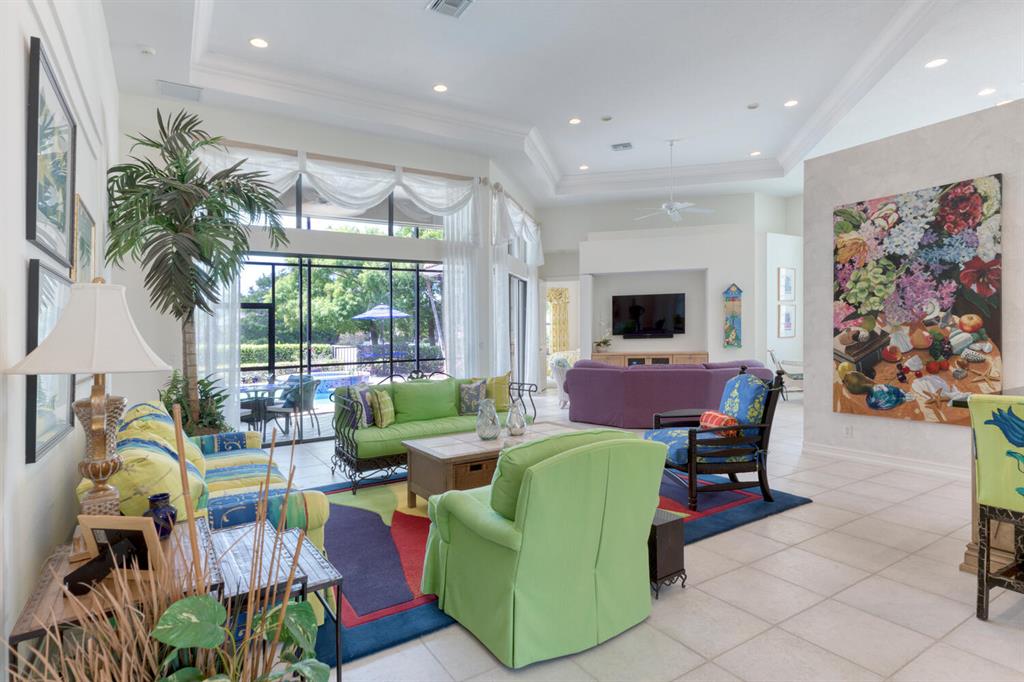 Much desired Blue Heron 3/3 plus den with separate golf cart garage. Beautiful Danielle model offering 2560 sq ft with southern water views. Etched glass entry doors open to living area with double sliders and custom built entertainment area with wet bar. Family room is open to kitchen and has custom built in cabinetry. Kitchen has center island, white cabinets, newer stove, eat in area and plenty of natural light. Master is light and bright with his/her master closets, coffered ceiling and opens to screened outside area. Den has custom built ins and desk area. Rear guest room has ensuite bath and access to lanai/pool area. Front guest room is spacious and separated from master and other guest room. Resurfaced pool and spa offers magnificent views of water. Accordion shutters! It's a WOW!