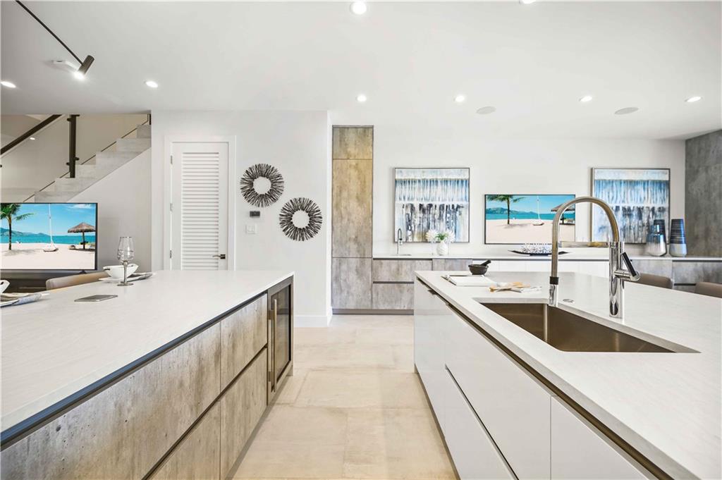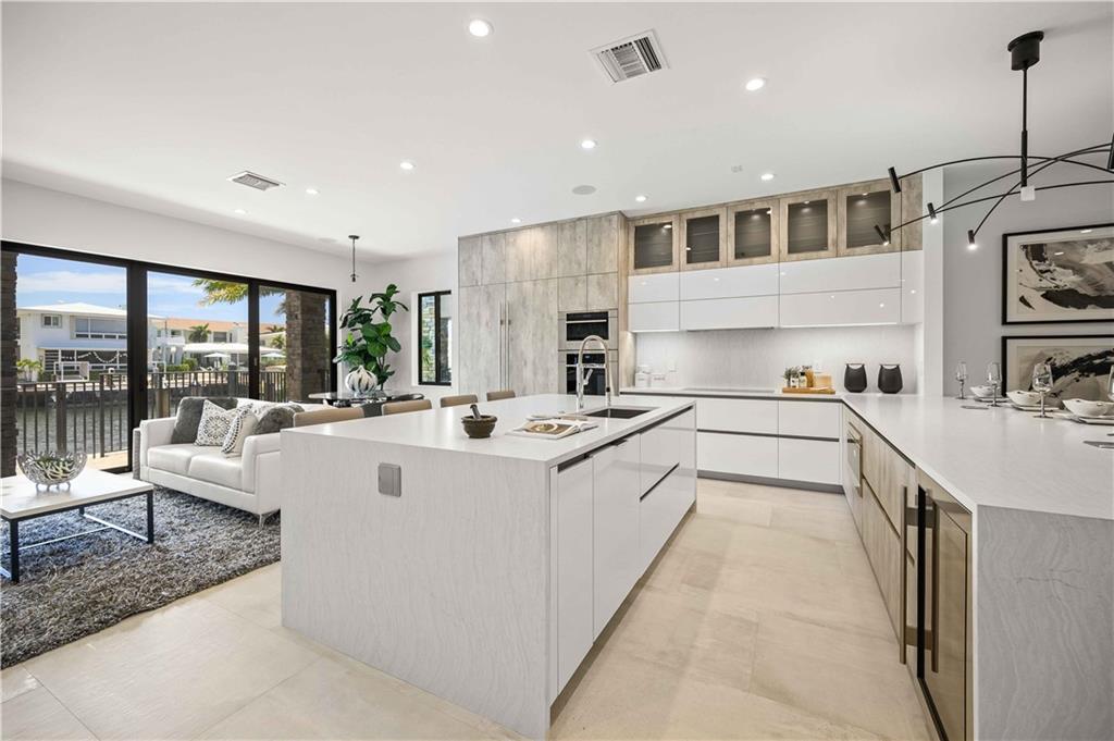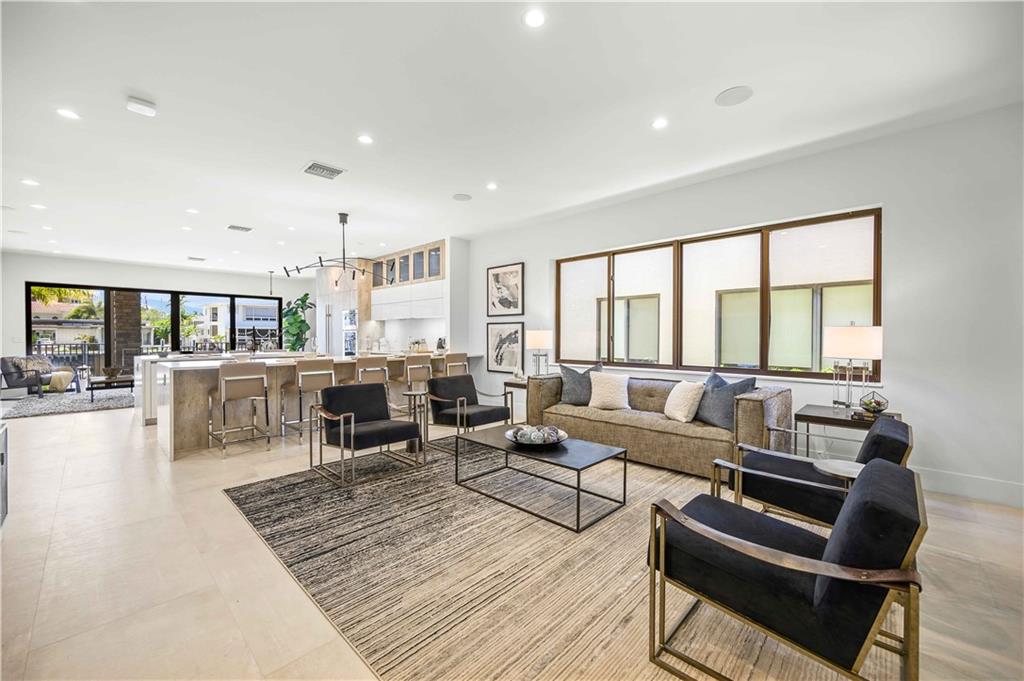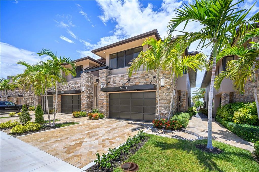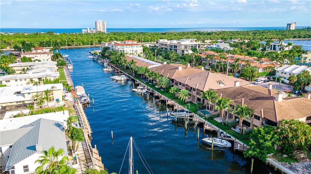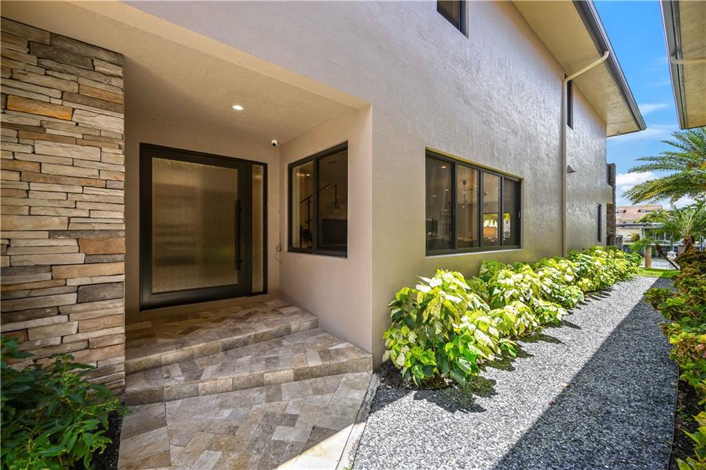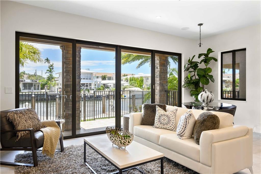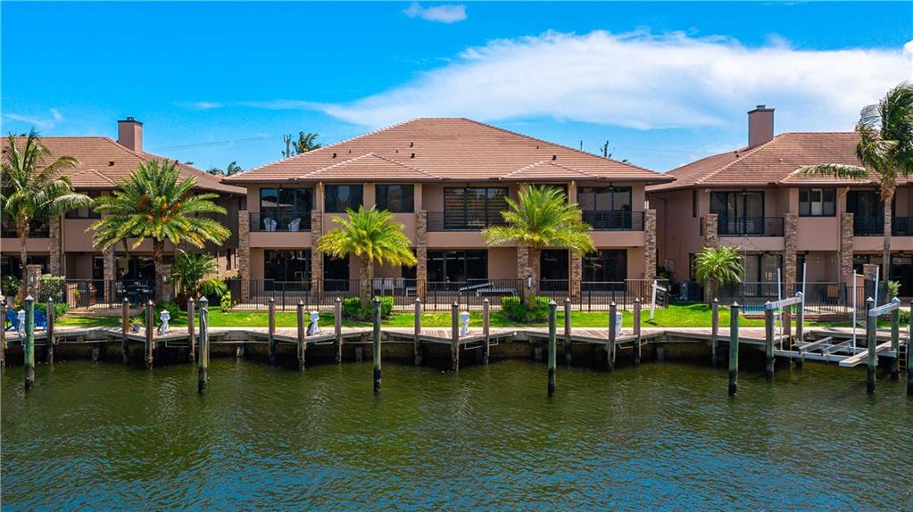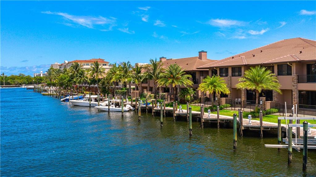 Easy to take care of yet independent NEW Construction waterfront 2-level townhome with private dock for 42' craft, elevator and 2-bay garage with glass door. Corner home with bright sun-lit interiors with high ceilings and walls of sliding doors and windows on three sides. Modern interior has two living areas, porcelain floors, custom cabinets and a wall length buffet, wet bar and media center. The kitchen features seating at both a breakfast bar and the center island. Also Wolf, Bosch and Sub Zero appliances. The second floor landing has a morning bar with sink and fridge. Each bedroom has a bath and generous closet. The Primary bedroom has private balcony and luxury spa bath. Smart home ready with speaker system. Pool ready with pilings already in place.