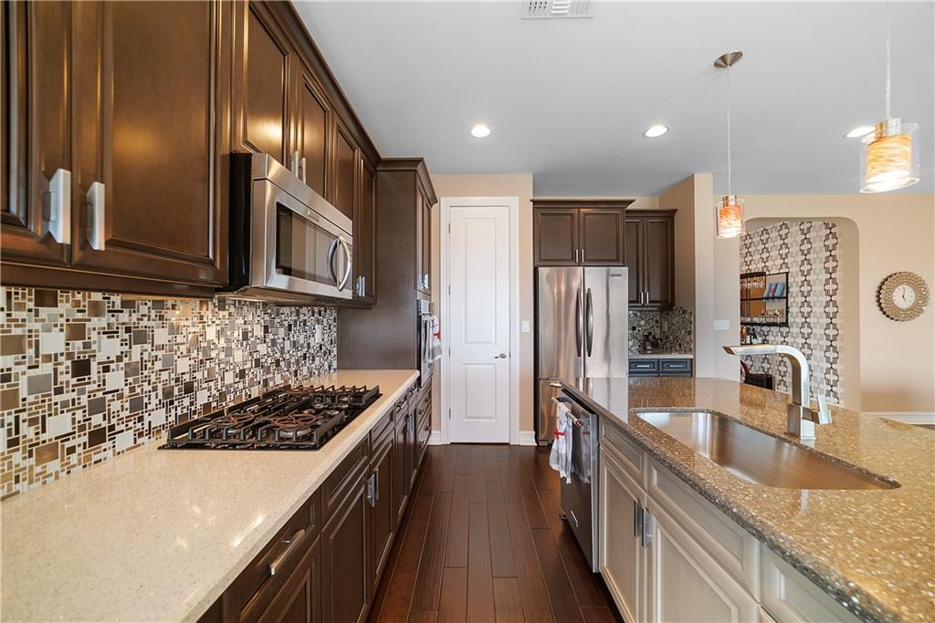 Live Directly On Watercrest's famous BIG LAKE! 180 Degree Of Non-Obstructed, Gorgeous Water Views! Amazing Sunsets! Over $32,000 In Seller Upgrades! Extended Pavered Patio w/Room For Pool On Oversized Fenced-In Lot! Walk To The Pierhouse Clubhouse w/Resort Style Amenities! Home Features 3 Full Beds, Plus Den Which Could Be Used As An Office Or Game Room, & 2.5 Baths. Stunning, Upgraded Light Fixtures Window Treatments, Fans, & More! Amazing Kitchen w/Quartz Counters, Stainless Steel Appliances, Backsplash, Huge Island, & Breakfast Area All Overlooking The Amazing Views From All Rooms On South Side Of Home! Wood Floors Throughout. Spacious Master Suite, Walk-In Closet, Quartz Counters, Separate Jetted Tub & Shower, A-Rated Schools, Best Location On Watercrest Prime Waterfront Lot!