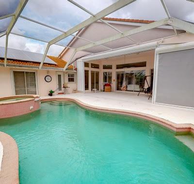 Beautiful waterfront home in a gated community. Perfect combination of comfort and casual indoor/outdoor living. Inground pool with raised spa, One-Sty home that overlooks the picturesque lake. Plenty of sitting areas inside and outside, walk-in closets in the Master wing. Updated kitchen with SS appliances and separate living, dinning & family rooms. Two (2) wall mounted cool air circulation units - one in the living room and other in the garage, solar panels on the roof and an automatic screen that runs the length of the patio. Great school district, minutes from expressways. Click on the 3D "Matterport" tour below.