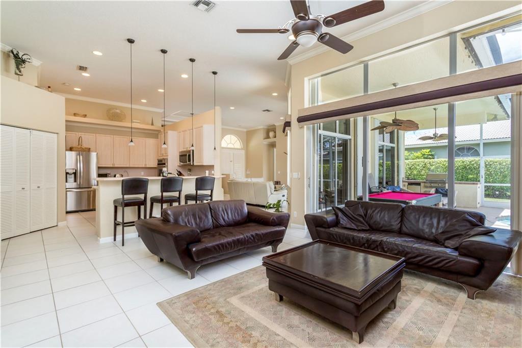 Location!!! Location Location!!! Fantastic 5/3 single family pool home with expansive water views & beautiful sunsets. This home is a must see with features that include: Oversized screened in freeform pool area & hot tub, split bedroom plan with tile throughout main living areas and wood floors in the bedrooms, complete hurricane shutter package, formal dining room, built in BBQ grill area and open kitchen off the family room for the perfect social gatherings. Community features include: convenient & quick access to all highways, 24 manned security, A-Rated schools & tennis courts.