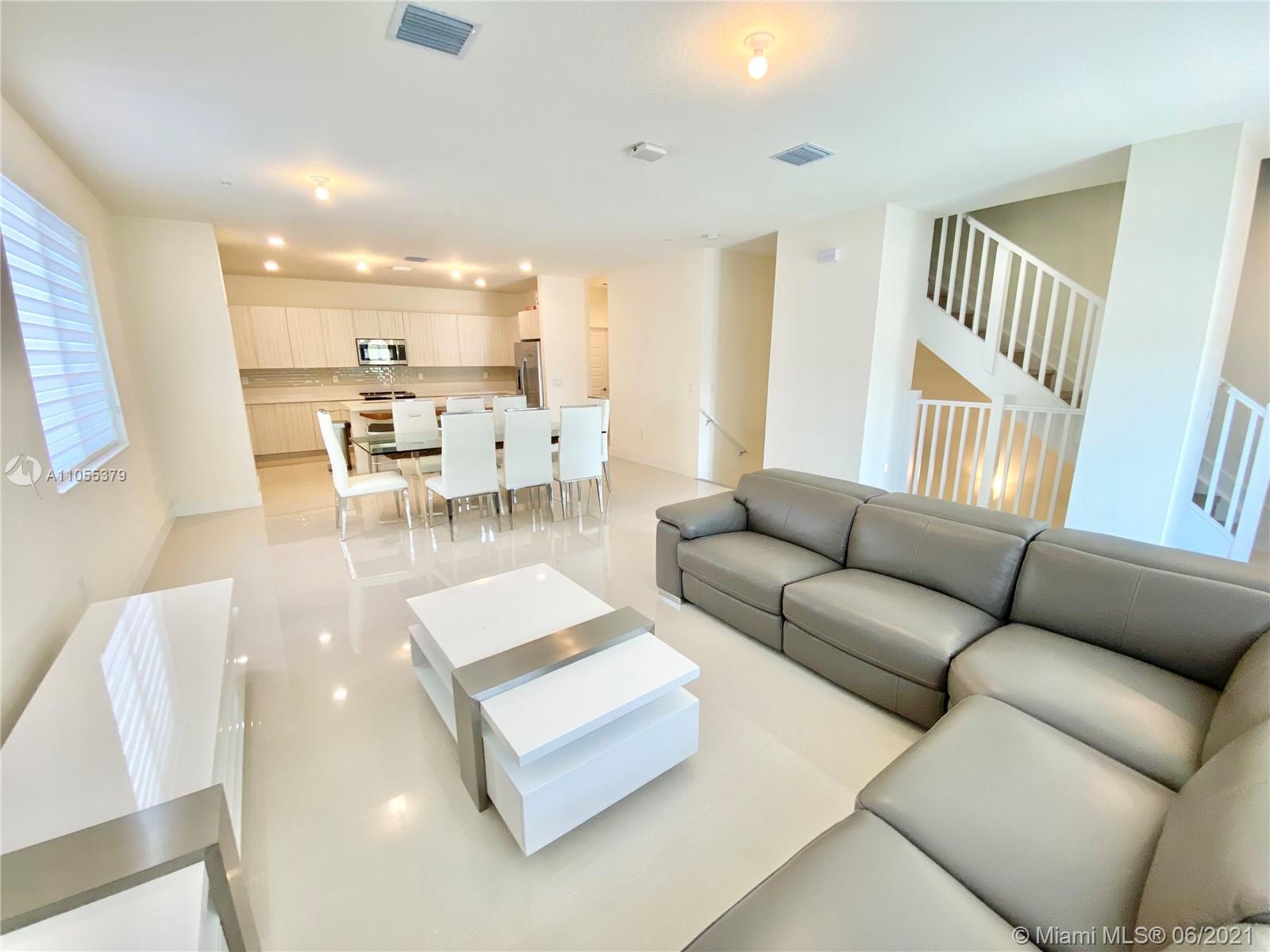 For sale, this stunning corner 4 story Townhome at URBANA Downtown Doral. This Townhome model LB, features 3 bedrooms, 3 baths, 2 powder rooms, a media room, Skyview terrace, with BBQ area, private elevator, 2-car garage, and much more. Enter through the spacious covered entry into the inviting foyer and reception lounge with adjacent powder room. On the opposite wall, a door leads to the 2-car garage, while on the west side of this space both a stairway and elevator provide access to the other floors. Second floor dining room and kitchen overlooking an expansive balcony. Third floor is occupied by the luxurious owner's suite, bedroom 2 and its private bathroom; and a laundry closet. Fourth story, entertainment area, Room 3, covered terrace with BBQ Area, and full bath. READY TO MOVE IN.