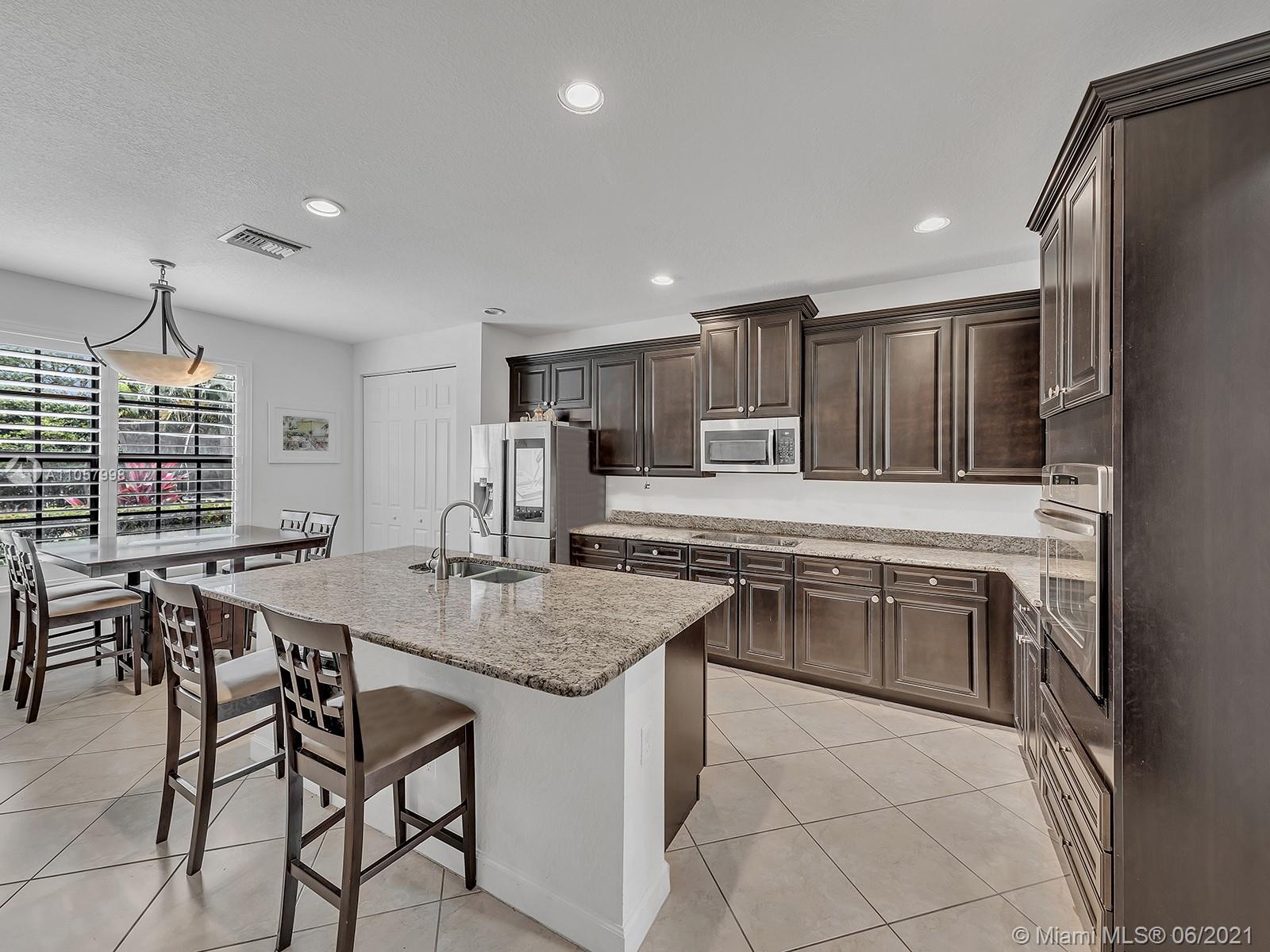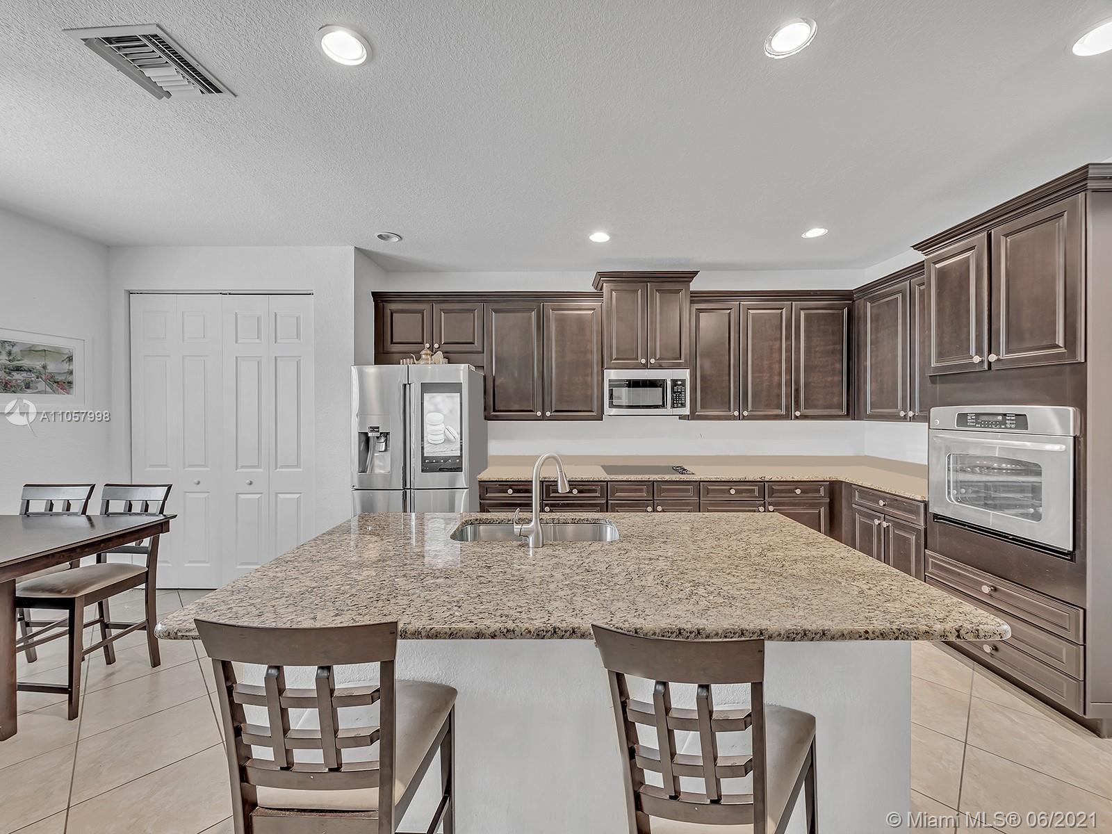 Stunning gated community property in Monterra with a grand entrance. The features of this magnificent home include 4 bedrooms plus a huge loft and 3.5 baths , (1 bedroom and full bath and a half downstairs) This home also features hurricane high impact windows, Valuated ceilings,a huge kitchen, great for entertaining with 42" wood cabinets, granite counters with an island and a second sink, and a workstation desk. The spacious master bedroom features a double door entry and 2 walk-in closets. The private patio and lot on the back have a large swimming pool. This 24 hours gated community offers resort-style living, featuring a state of the art fitness center, tennis and basketball courts, pool, walking trails, & tot lots. A+ rated schools.