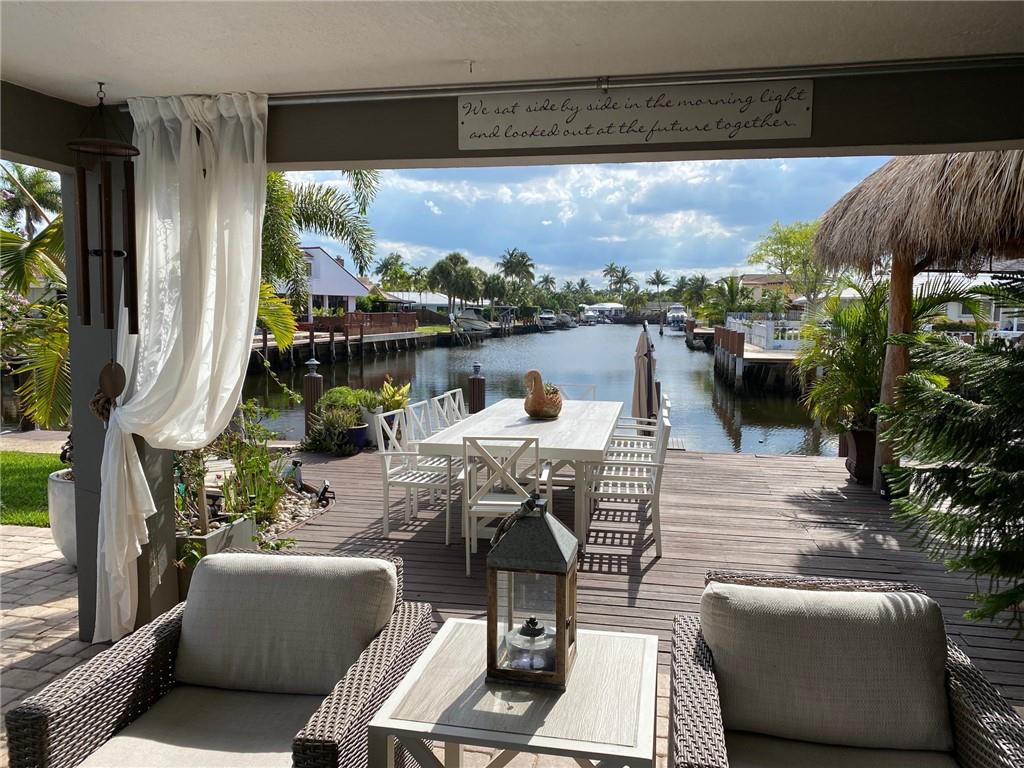 Entertain in Style in this Amazing 3 Bedroom 2 Bath waterfront home. Designed to showcase the stunning waterfront views down the canal from every angle. Close to the beach, Restaurants and Shopping. Heated Pool Full Outdoor Tiki Bar and Covered Patio with lush Tropical Landscaping. More photos will be uploaded. This property is a must see.