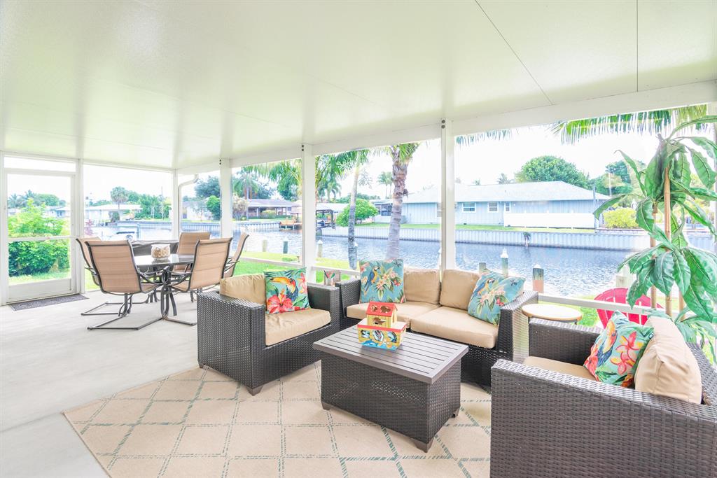 CBS built 3 bedroom 2 bath home, plus office with split floor plan situated on a quiet street on wide navigable canal that leads to Lake Clarke and beyond. Renovated to high end standards upgrades include impact windows and doors, recessed lighting, updated kitchen and baths, porcelain tile in living areas, custom closets and stainless steel appliances. The new family will absolutely love the large screened back patio overlooking the water. Back yard is completely fenced with seawall and has its very on boat ramp on the property. Other features to note is the oversized two car garage and plantation shutters are beautiful.