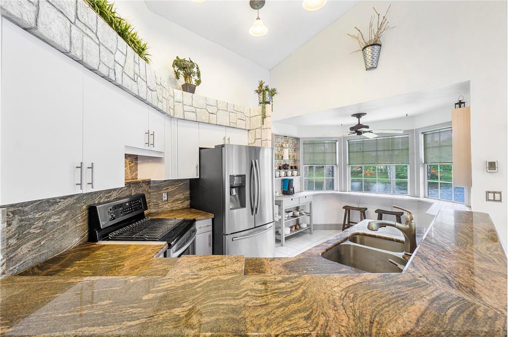 Enjoy the beautiful breeze and privacy of this waterfront home on a cul-de-sac! Bright, open floor plan with vaulted ceilings and a breathtaking view in Weston! Zoned for A+ schools in sought after gated neighborhood with very low HOA! Seller is a wonderful painter, she has created custom flooring and accent pieces through out the home along with custom built-ins that add to the character and charm! This family home has been loved and cared for meticulously! Kitchen has been updated w/ stainless steel appliances, roof-2014, AC-2017. Close to hospital so power is restored quickly during storms! There is plenty to do at home with bass fishing on the Jon Boat, relaxing in the luxurious private Caldera Spa or walk to the community pool, playground and basketball courts! This home has it all!