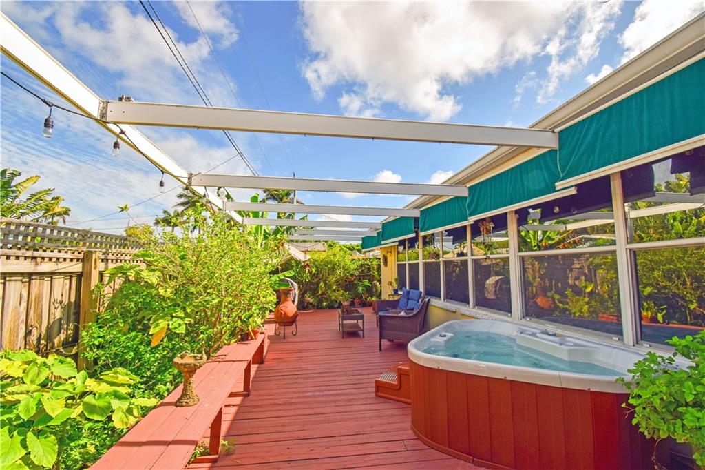 Welcome to paradise! This is your opportunity to own the Florida dream. 5-minute drive to gorgeous North Beach. This single family home has an excellent location east of US-1 in Hollywood Lakes. Nestled next to West Lake Park, you are close to everything you need & may want. NEW ROOFS coming. This home offers modern comforts & has room and floorplan flexibility for a 3rd bedroom. Features: courtyard entry, foyer, renovated eat-in kitchen, updated bathrooms, spacious living room, large Florida room, dining room, 300+ sq. ft. wood deck in the patio, fenced lush, private backyard, concrete block construction with 2,000+ total sq. ft., 1-car garage, brand new A/C, & more. No HOA. Close to dining, shopping, international airport...Get to Hollywood, Fort Lauderdale, & Miami downtowns in minutes