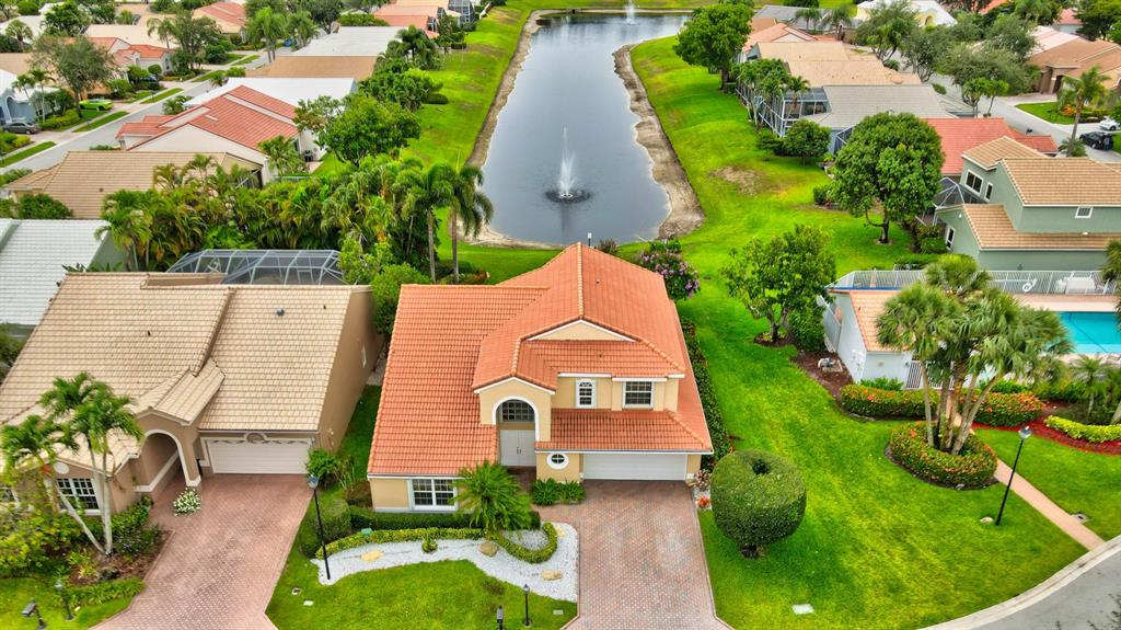 This home has it all. Roof replaced 2013, AC replaced 2018, hurricane shutters or impact glass on all windows installed 20/21. Beautiful expansive long lake views. Windows have 3M Sun shades to protect from FL sun. House is situated next to community pool great for FL living. Redone kitchen w/stainless appliances & granite tops. Washer & dryer new. Master bath redone w/frameless shower door, stone work and soaking tub. Custom cabinetry in kitchen and bath. White tile in living area custom designer carpeting on stairs and bedrooms. 2nd refrigerator in garage conveys. This pristine house is move in ready and offers volume ceilings and crown molding. Tropical landscaping surrounds this home. Costa Del Sol is a very well kept community. The exteriors of all homes have just been painted.