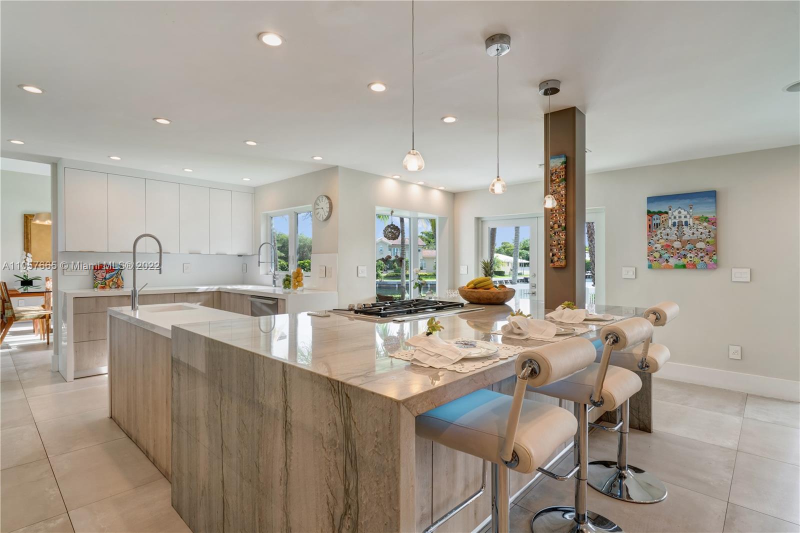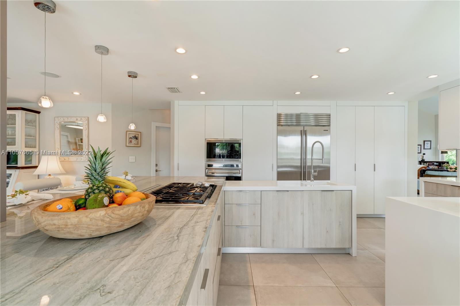 Say hello to your dream waterfront home resort-style living in Gables by the Sea, a tranquil guard-gated community. Live amid beauty and serenity in a spectacular 2-story, 4,056 SF remodeled for luxury living. Newly upgraded with a $500K renovation to the highest standards, w/high ceilings, Porcelanosa floors, impact windows and doors throughout, brand new kitchen, roof and driveway. Take in the gorgeous sunsets over the water, either from the hammocks swinging between the palm trees or while indulging in the Jacuzzi cascading into the pool. Prepare meals in the beautiful, open-plan kitchen complete with a giant natural quartzite island and Sub-Zero/Wolf appliances. Wake up to a breakfast in the master suite’s waterfront balcony overlooking a gorgeous patio and lush tropical surroundings.
