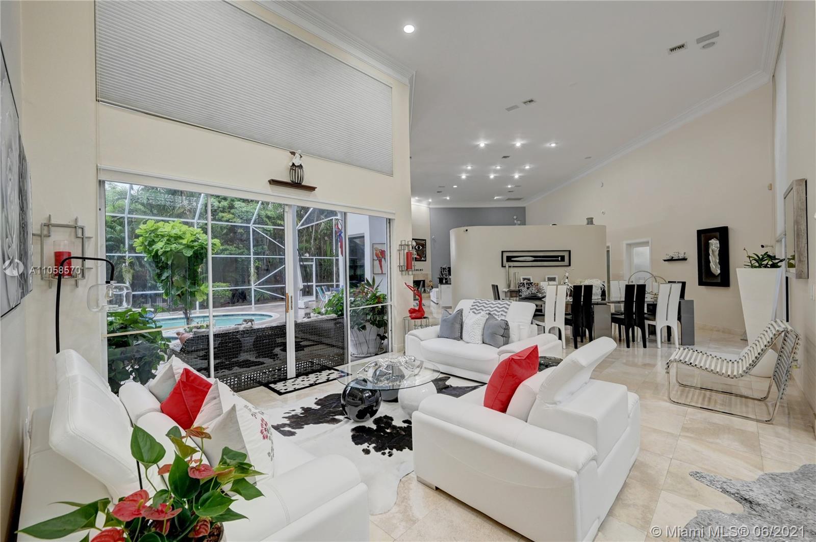 Unique custom-built estate home situated on 1.35-acre lot in gated Parkland community. Enjoy a large screened in salt-water heated pool with bar and outdoor kitchen. This 5 bedroom 4 bath single story triple split layout provides an open floor plan perfect for both privacy and entertaining. Beyond the kitchen is the family/media area which features an 18 foot wall with IMAX theater paint to enable the use of a home theatre style projector and is wired for Bose surround sound. The room also features a working marble gas fireplace and a wet bar complete with a sink and wine refrigerator. A-Rated Schools, Low HOA Dues! *All furniture negotiable. Also please see the attachments for a full description of the upgrades.