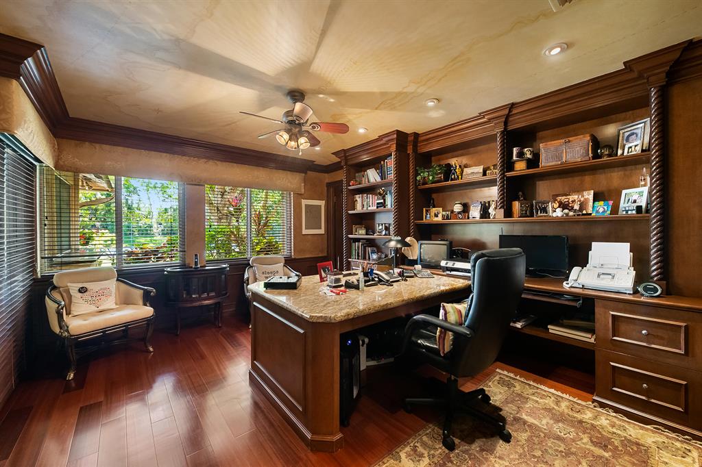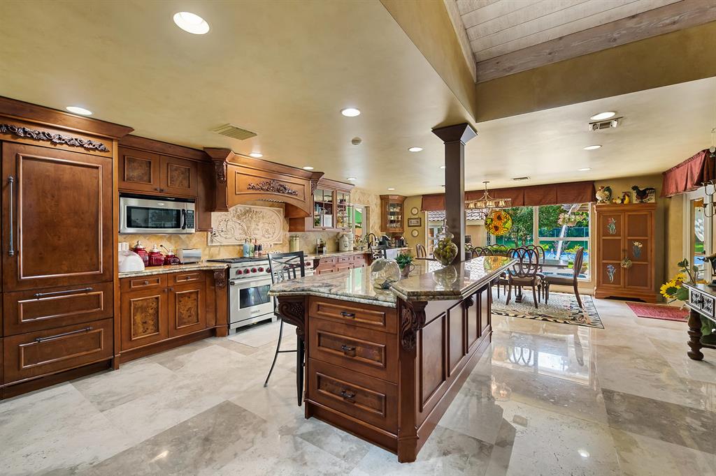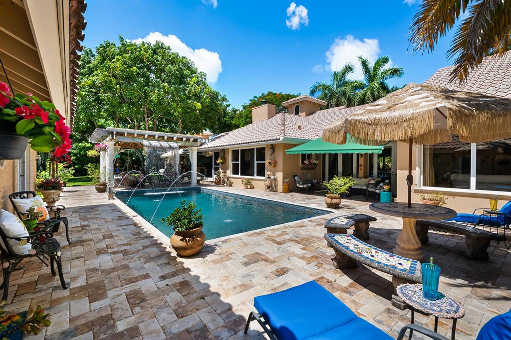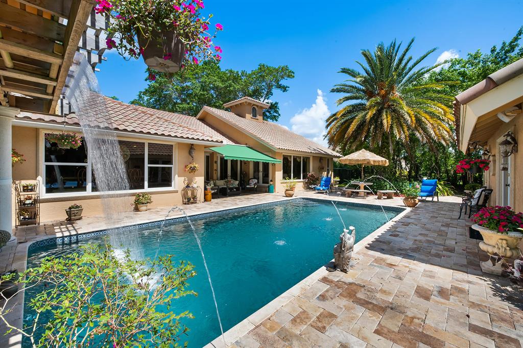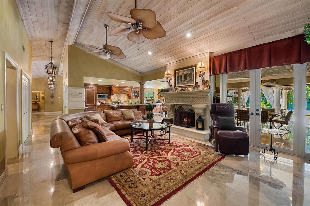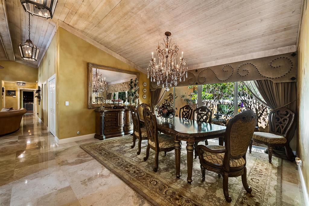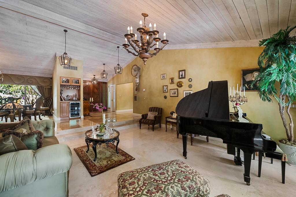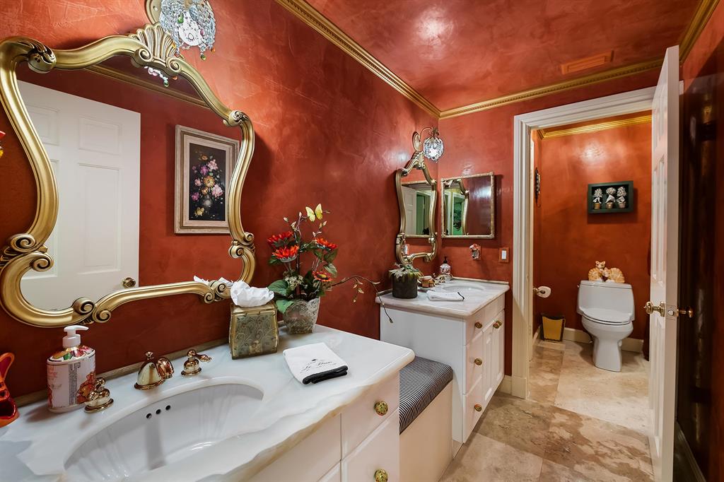 This retreat-style estate home sits on an acre of land & is complete with a tennis court, private pool & guest house. Inside you will find luxurious details such as Swarovski crystal door knobs & chandeliers by the same designer as the Boca Hotel. The gourmet chef's kitchen features a 6-burner double Wolf gas range with griddle, Subzero refrigerator & freezer, oversized granite island, copper farmer's sink & wine fridge, perfect for entertaining. The large family room & eat-in area are great for families & overlook the beautiful outdoor space. The oversized primary suite features a sitting area, soaring ceilings, his & hers California closets & an en-suite bath with a large double vanity & spa tub. The primary bathroom also features stunning onyx countertops. The wood paneled library...
