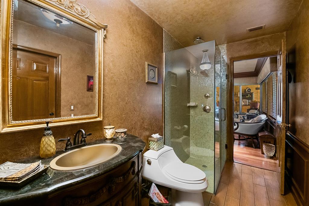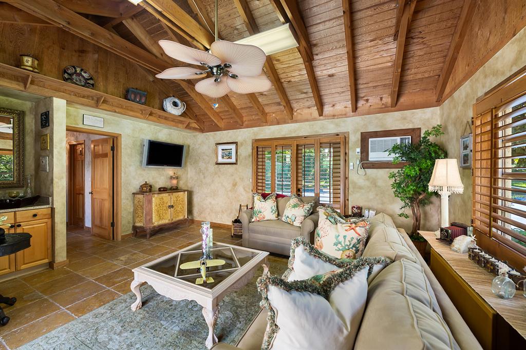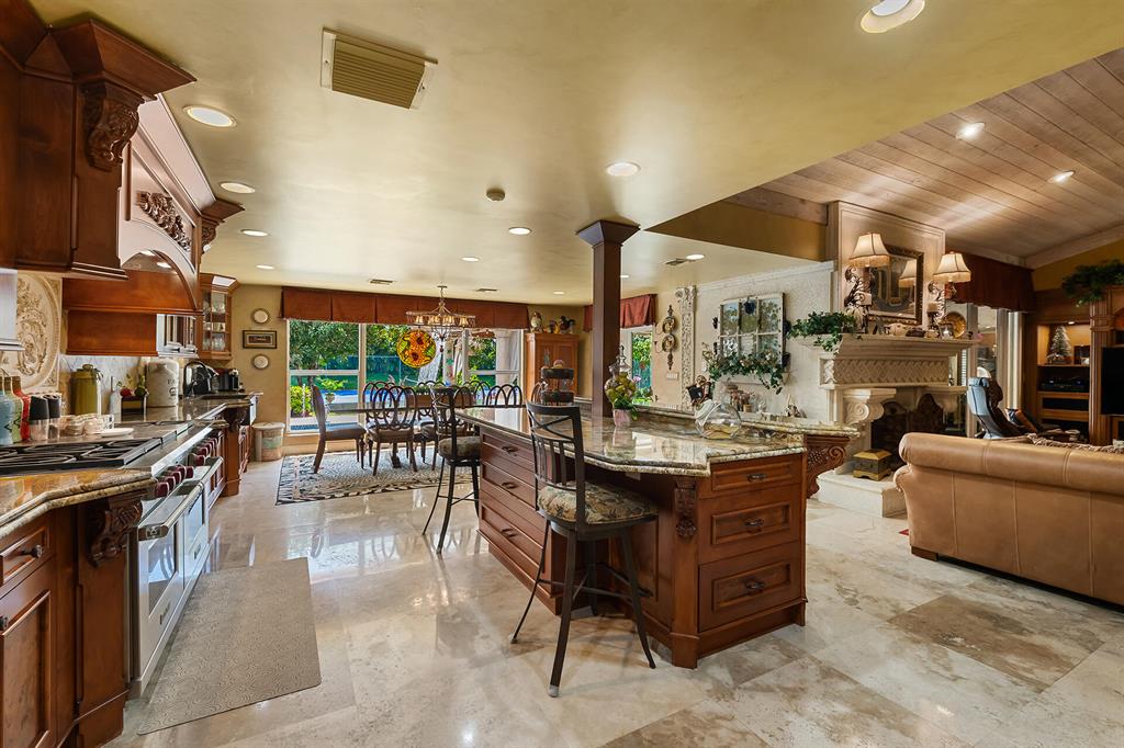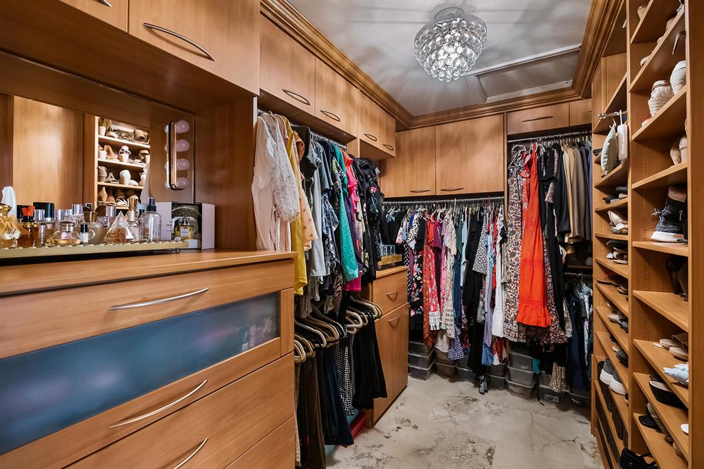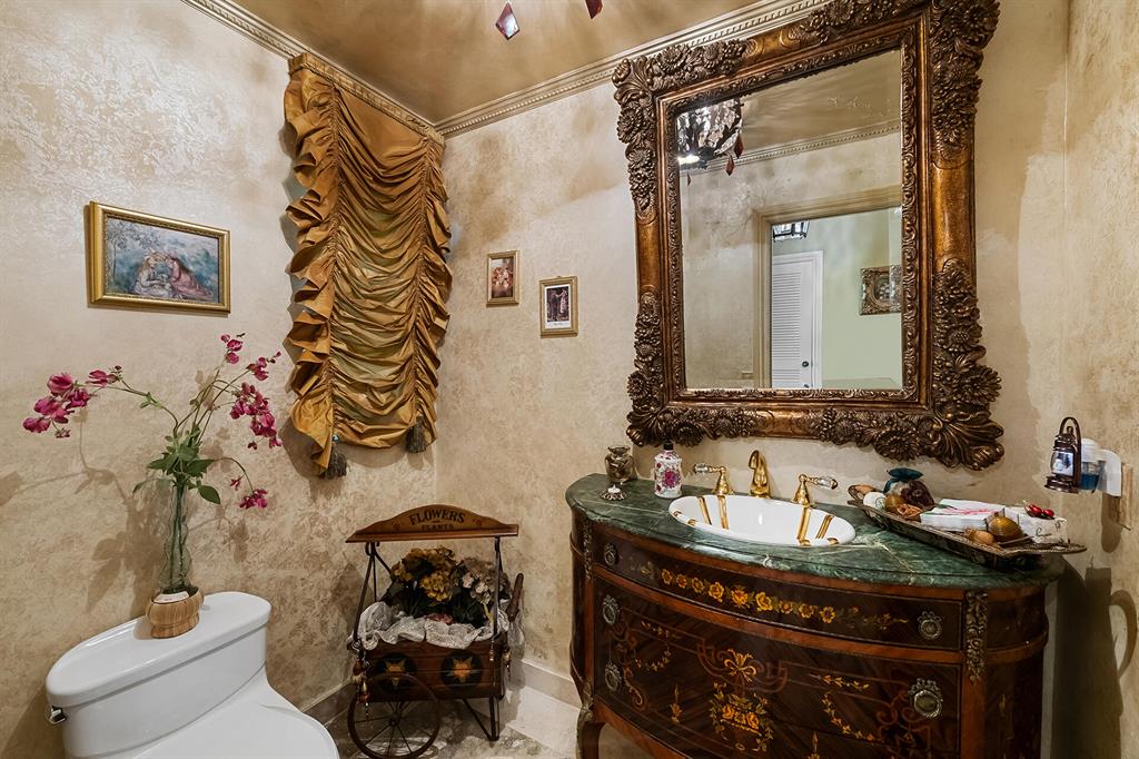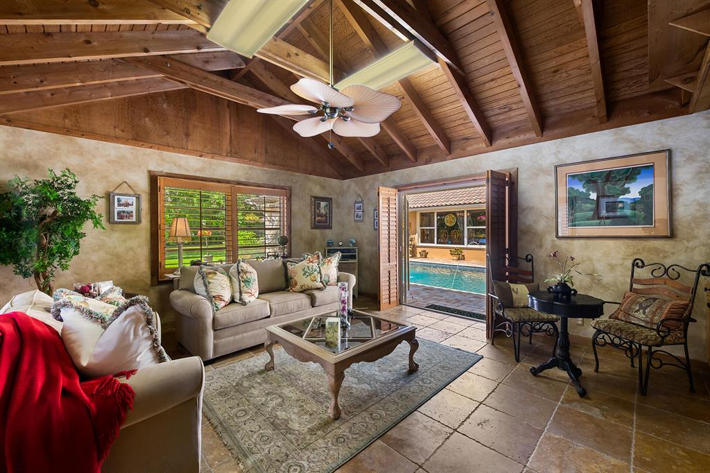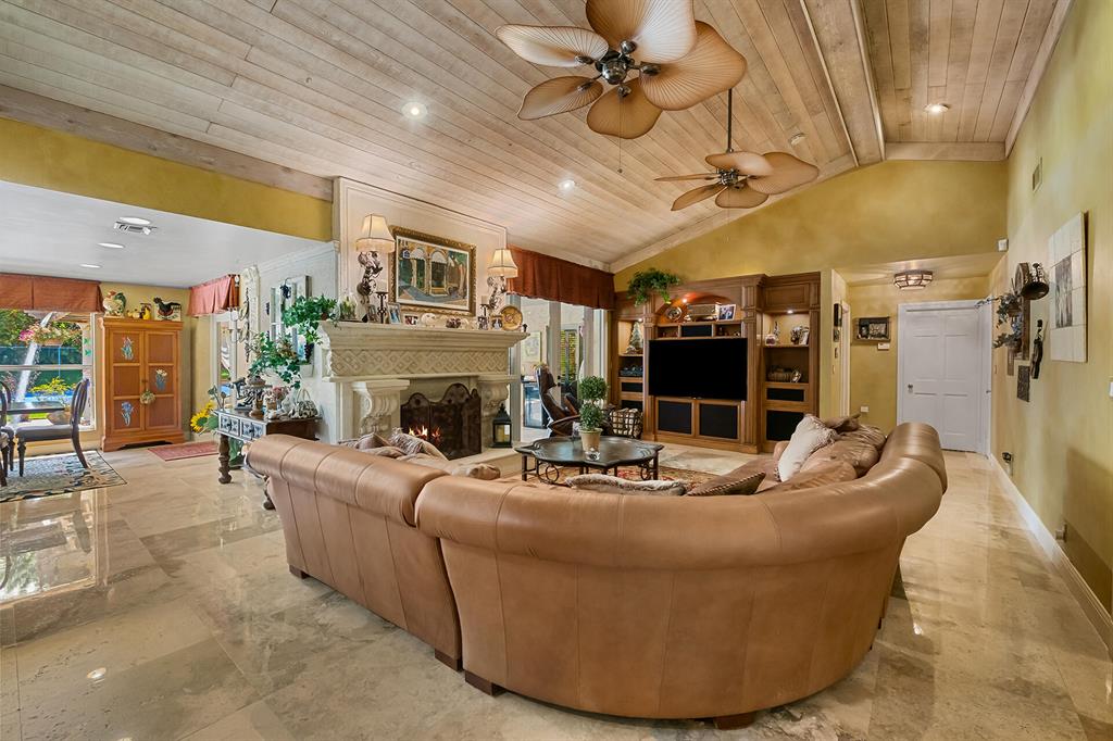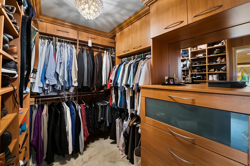 This retreat-style estate home sits on an acre of land & is complete with a tennis court, private pool & guest house. Inside you will find luxurious details such as Swarovski crystal door knobs & chandeliers by the same designer as the Boca Hotel. The gourmet chef's kitchen features a 6-burner double Wolf gas range with griddle, Subzero refrigerator & freezer, oversized granite island, copper farmer's sink & wine fridge, perfect for entertaining. The large family room & eat-in area are great for families & overlook the beautiful outdoor space. The oversized primary suite features a sitting area, soaring ceilings, his & hers California closets & an en-suite bath with a large double vanity & spa tub. The primary bathroom also features stunning onyx countertops. The wood paneled library...