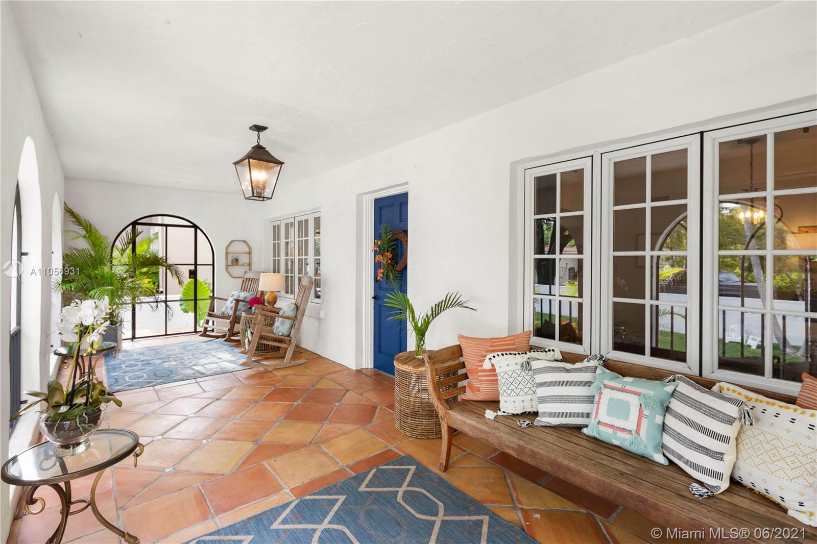 Spectacular classic old gables Spanish with hugh Florida porch. Immaculately restored, 3-bedroom, 2-bath home with gorgeous wood floors, fireplace and archways. This home has beautiful Tule-work and has the bones to stand strong for future generations to enjoy. New roof with TPO insulation, impact windows, new AC, great Florida room, lot of storage and walled yard. Great kitchen with a large pantry and plenty of storage. Walk to your favorite restaurants in downtown Coral Gables! This home is going to sell fast.
