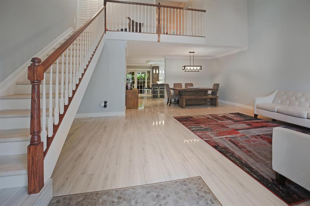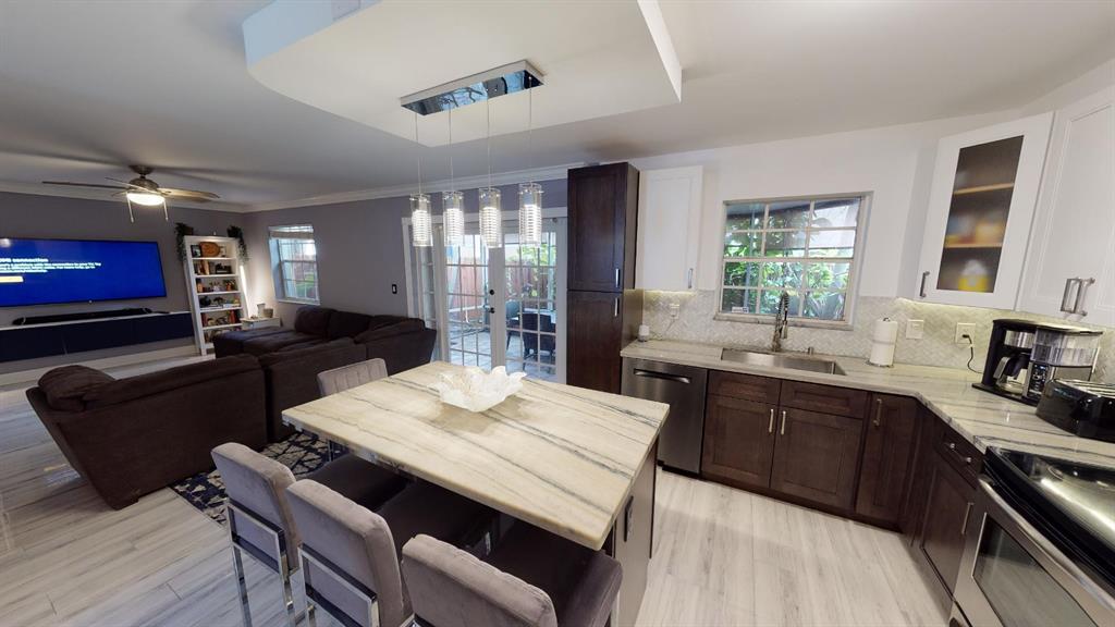 Remodeled with comfort and style in mind, this charming 3 bed 3 bath townhome has a free-flowing floor plan, featuring a freshly remodeled modern interior and comes equipped with rustic white wood porcelain plank tile, a totally redesigned kitchen, large entertainment spaces, good-sized living room, and well-proportioned split bedroom plan. Have all the counter space you need in this chef-inspired, eat-in kitchen featuring quartzite countertops, marble backsplash, custom-made island, sleek cabinetry with soft close, decorative pendant lighting, LG state-of-the-art refrigerator, over-the-range microwave and a glass cooktop electric range. The generously-proportioned master suite is a secluded retreat
