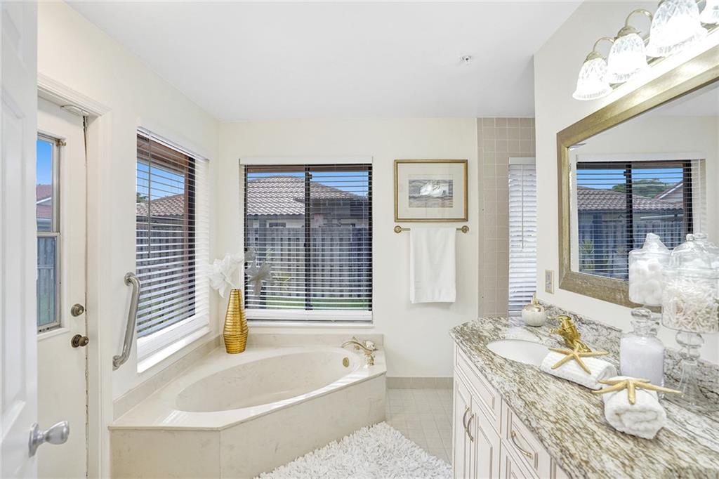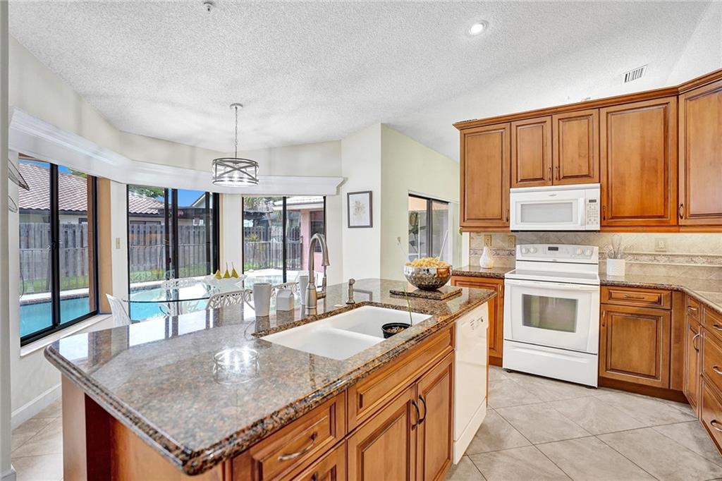 Great pool home on a quite street* Low HOA* Home comes equipped with a generator that services the entire House once the power shuts off* All modern lighting and fixtures* freshly painted *Roof was put in in 2010 *Travertine Tile in Living Areas, High Quality Kitchen Cabinetry with Granite Tops & Accent Under Cabinet Lighting* Family Room with Wet Bar & 1/2 bath* All bathrooms redone with granite tops* Master bath with roman tub & huge walk-in shower. Formal Dining Room & Separate Breakfast nook*ls