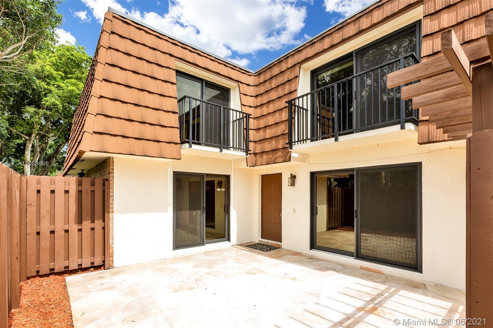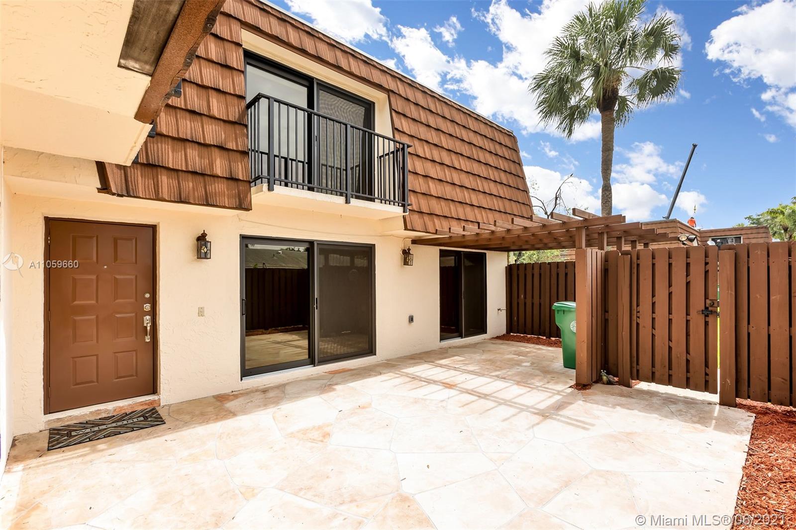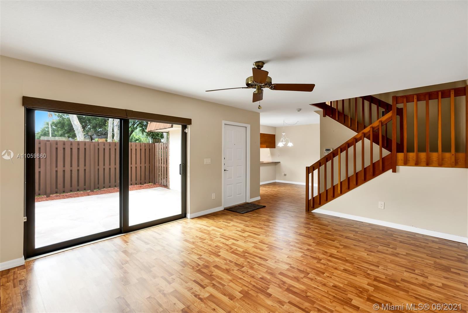 Beautiful and move in ready. This amazing townhome has 2 bedrooms with balcony on the 2nd floor, a great master bathroom with shower, spacious walk in closet and an additional separate closet, lots of storage. A den/bedroom on the first floor that can easily be converted to an additional bedroom, beautiful spacious renovated kitchen with plenty of cabinets, granite counter top and SS appliances. Kitchen overlooks the fenced private patio. Perfect for entertaining and outdoor fun. This home has high impact windows throughout, laminate floors and is super clean and ready for a new owner. Great A+ schools, amazing location, close to shopping, dinning, entertaining, 20 minutes from Ft. Lauderdale Airport, Sawgrass Mills Mall and the beach. Come by!