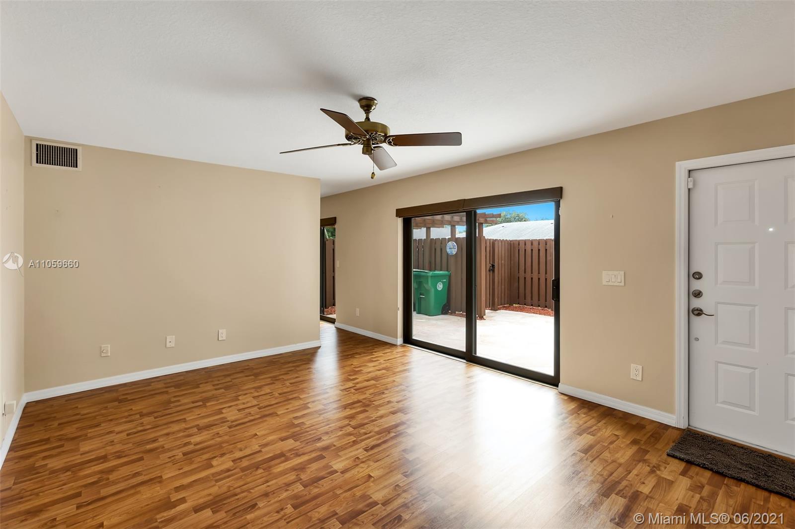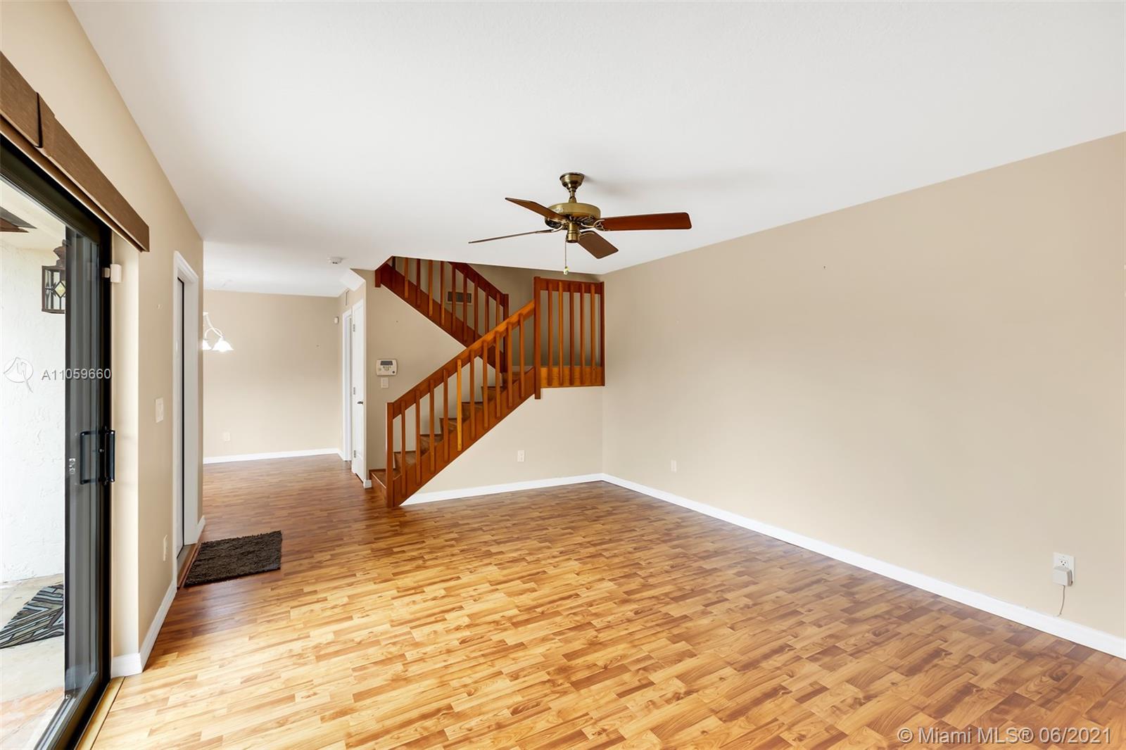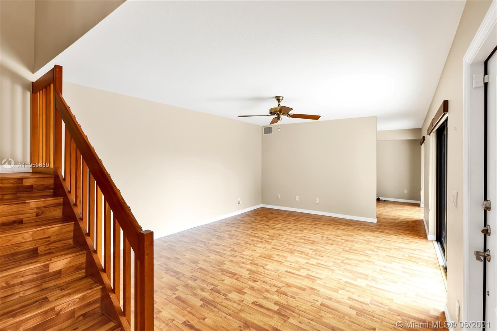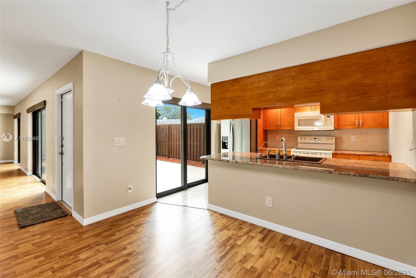 Beautiful and move in ready. This amazing townhome has 2 bedrooms with balcony on the 2nd floor, a great master bathroom with shower, spacious walk in closet and an additional separate closet, lots of storage. A den/bedroom on the first floor that can easily be converted to an additional bedroom, beautiful spacious renovated kitchen with plenty of cabinets, granite counter top and SS appliances. Kitchen overlooks the fenced private patio. Perfect for entertaining and outdoor fun. This home has high impact windows throughout, laminate floors and is super clean and ready for a new owner. Great A+ schools, amazing location, close to shopping, dinning, entertaining, 20 minutes from Ft. Lauderdale Airport, Sawgrass Mills Mall and the beach. Come by!