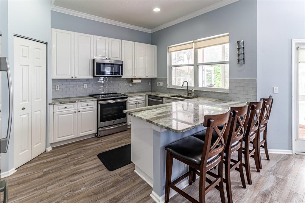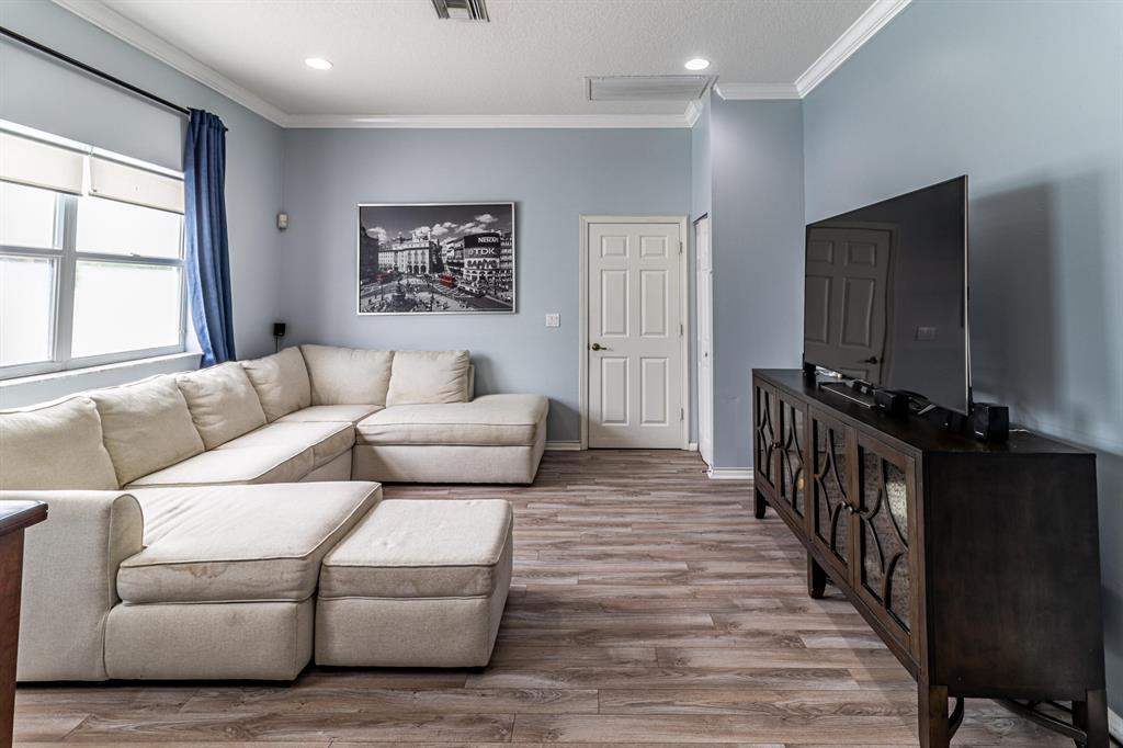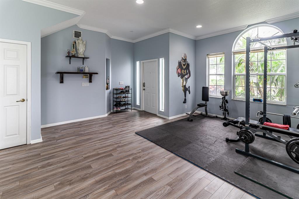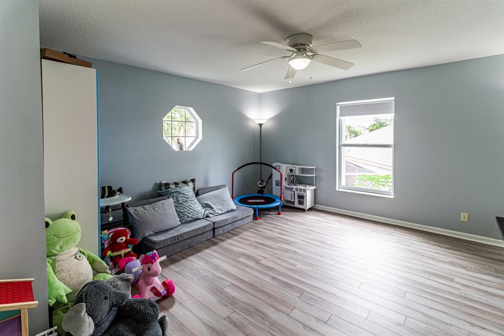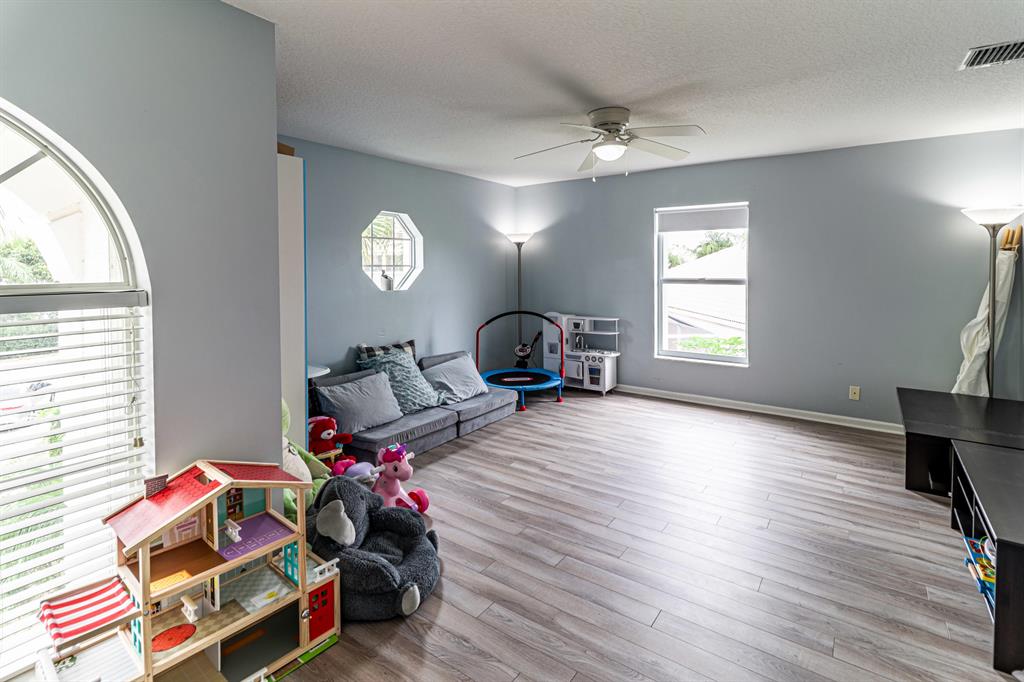 Check off every item on your wishlist with this lakeview pool home located in the desirable Lakes of Laguna neighborhood. Spacious home featuring mature landscaping -- incl mango, dragonfruit, guava, avocado, jackfruit, sugar apple, sapota and other fruit trees -- and expansive fenced pool and sundeck. This is the perfect spot for outdoor fun and relaxation plus cabana bath w/ shower for add'l convenience. Designer details incl laminate flooring, crown molding plus open-concept floorplan with bonus flex space and loft. Open kitchen features granite countertops, stainless steel appliances, subway tile backsplash, pantry and seated bar. Owner's suite features tray ceiling, spacious dual closets, and en suite bath w/ water closet, dual sink and seated vanities, separate tub and shower.
