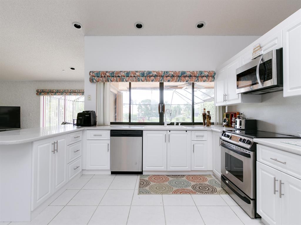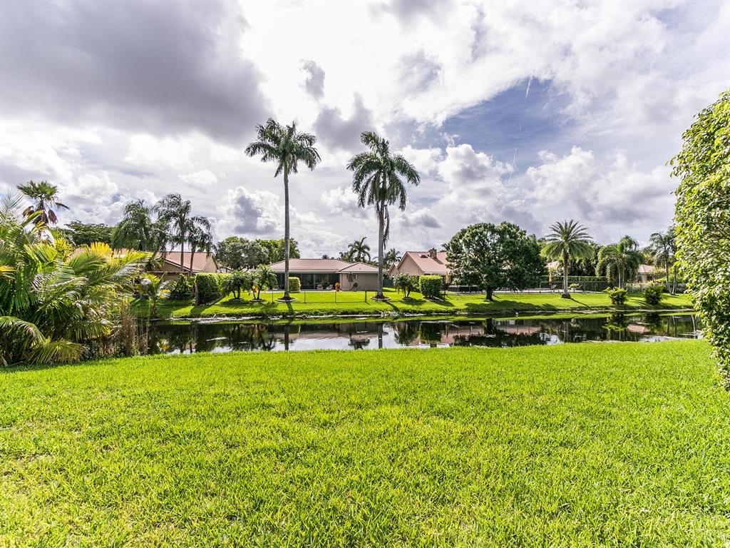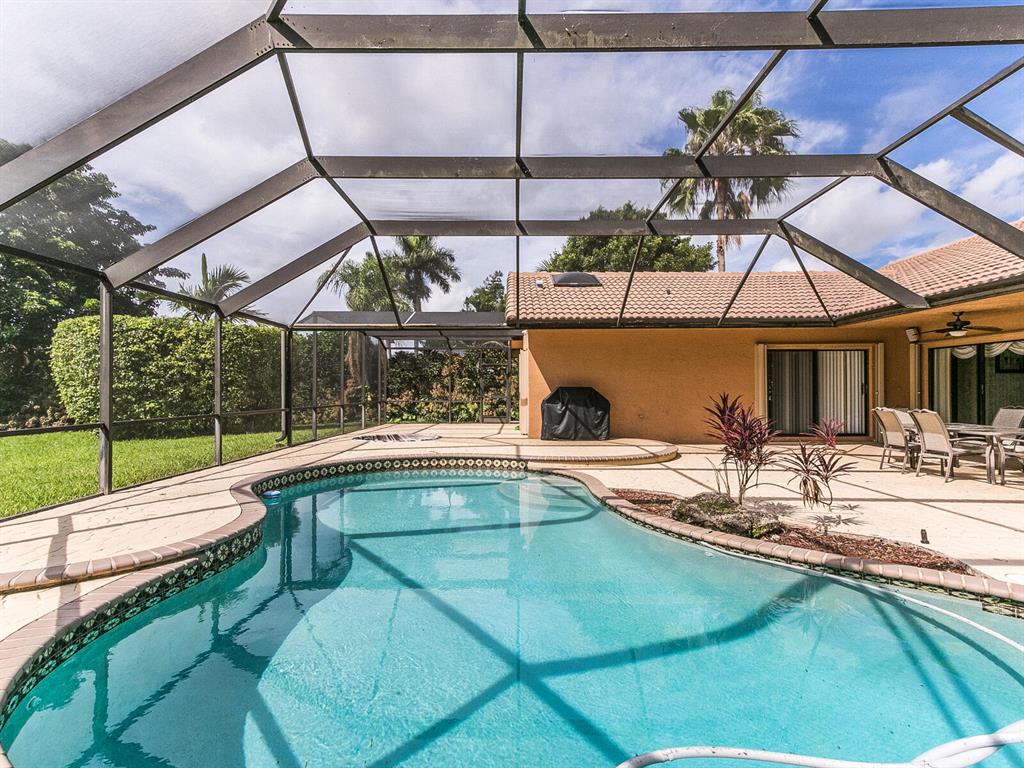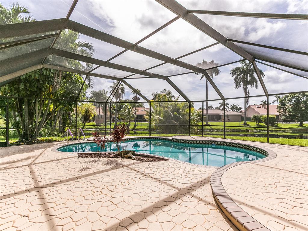 This beautiful four bedroom home is located on a rare pie shaped water lot. Enormous screen enclosure that covers the pool for tranquil backyard relaxation. Inside you will find soaring ceilings with large living areas and bedrooms. Cathedral ceilings make all the rooms feel spacious. A great floor plan for entertaining and split bedrooms are ideal for a large family. The kitchen has white cabinetry and stainless steel appliances. The home has been maintained and ready for a new family with newer appliances and interior neutral paint. Accordion Hurricane Shutters as well. The circular driveway provides an abundance of parking. Great neighborhood, close to shopping, and all conveniences!!