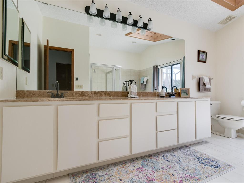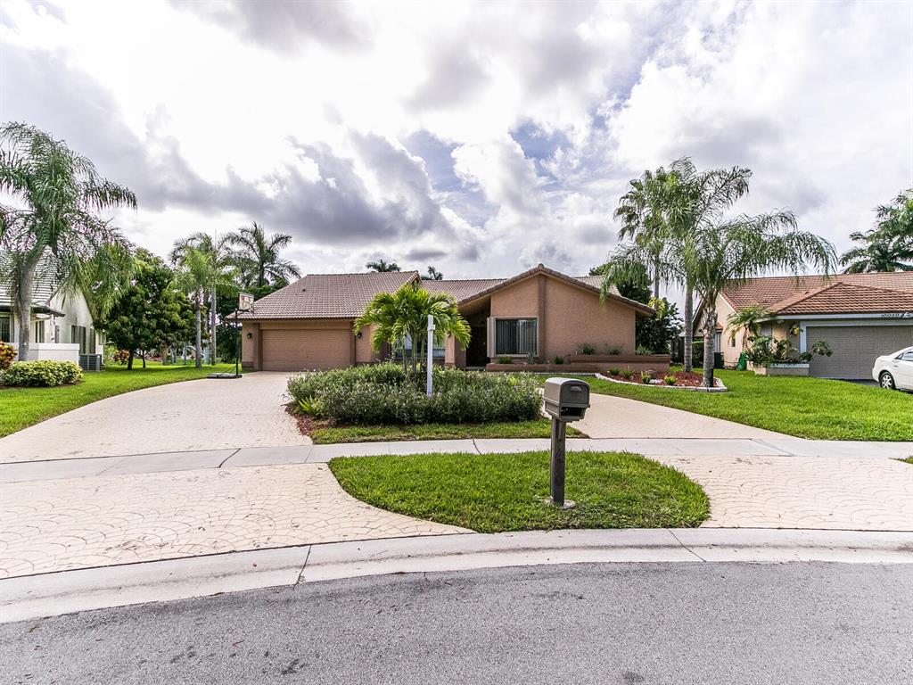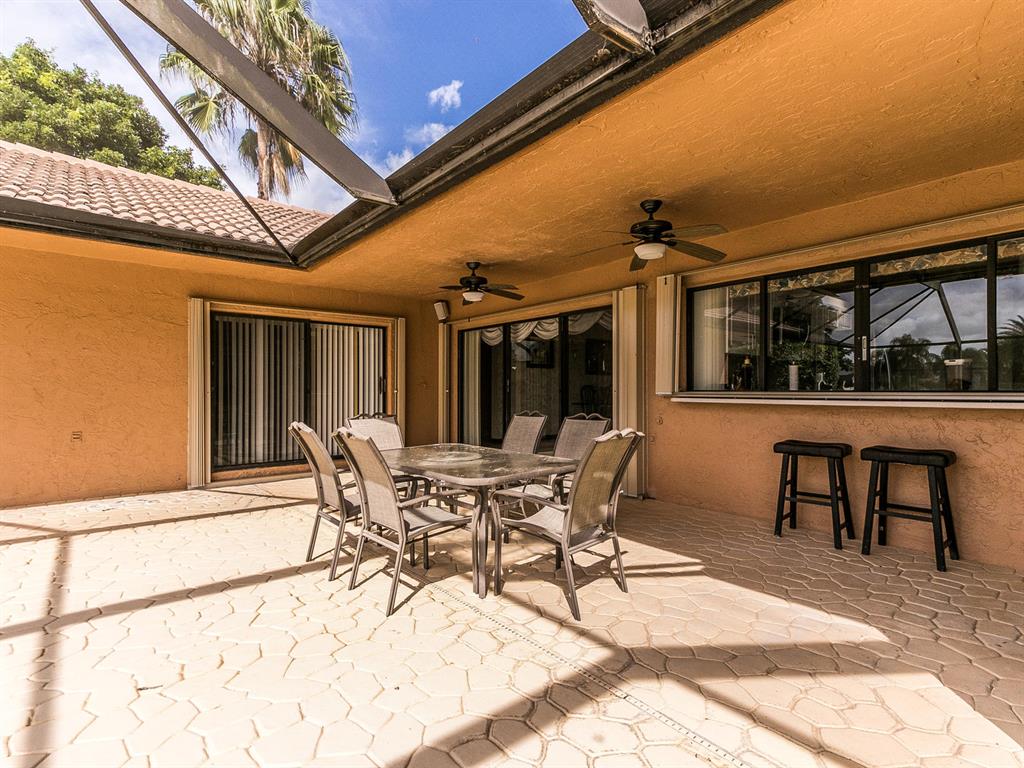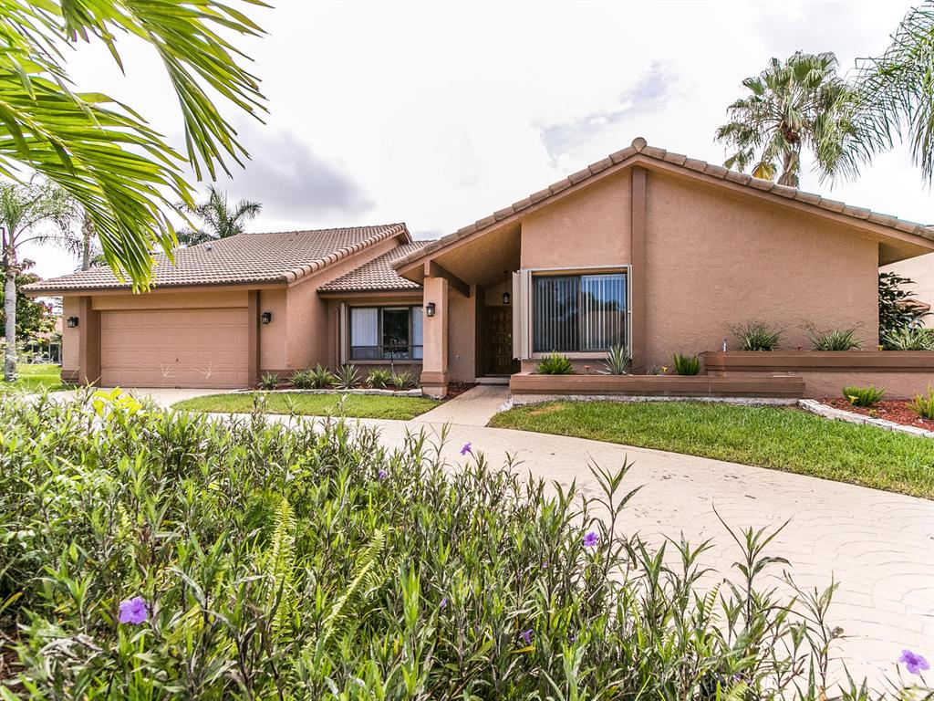 This beautiful four bedroom home is located on a rare pie shaped water lot. Enormous screen enclosure that covers the pool for tranquil backyard relaxation. Inside you will find soaring ceilings with large living areas and bedrooms. Cathedral ceilings make all the rooms feel spacious. A great floor plan for entertaining and split bedrooms are ideal for a large family. The kitchen has white cabinetry and stainless steel appliances. The home has been maintained and ready for a new family with newer appliances and interior neutral paint. Accordion Hurricane Shutters as well. The circular driveway provides an abundance of parking. Great neighborhood, close to shopping, and all conveniences!!