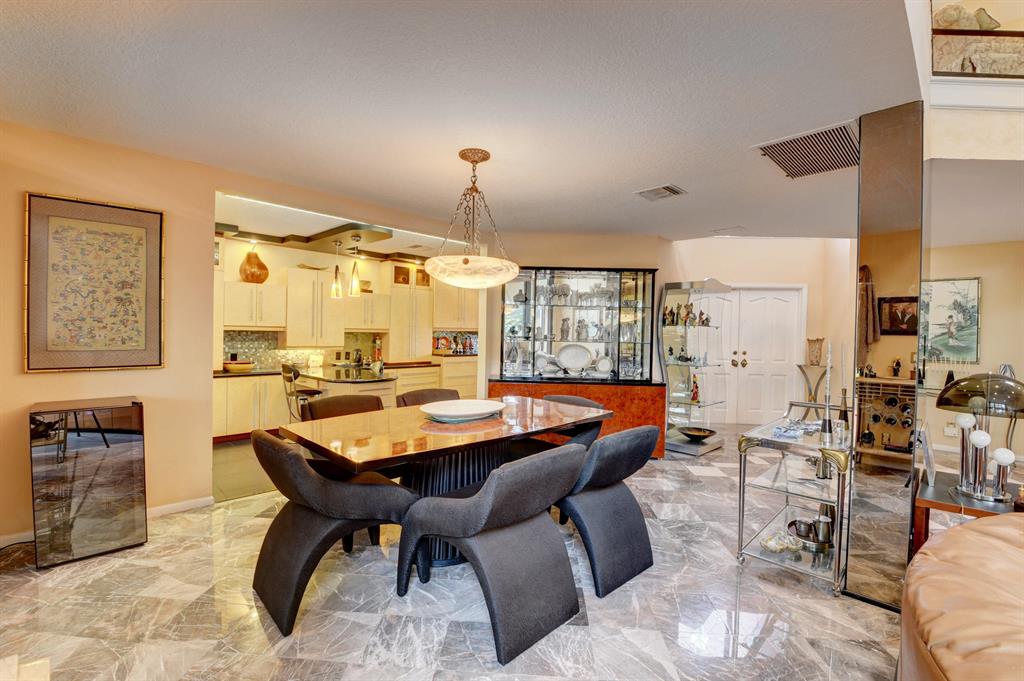 Popular Eden Roc model townhome in Caravelle. This lovely home features a huge living room with soaring ceilings and windows, bedroom and full bath downstairs and master bedroom plus 2nd bedroom with private bath upstairs. Kitchen and master bathroom updated. Huge screened patio with private garden views and golf views in the distance. Laundry room has plenty of room for storage. Upstairs master bedroom closet has custom shelves and tons of space. Two car garage! Kitchen has built in table plus a formal dining room. Storage under stairs. Flat roofs just replaced. Other features include replaced staircase railing, marble floors, updated carpet, knock down finish on ceilings, tile roof 2008. Subdivision pool. Membership optional.