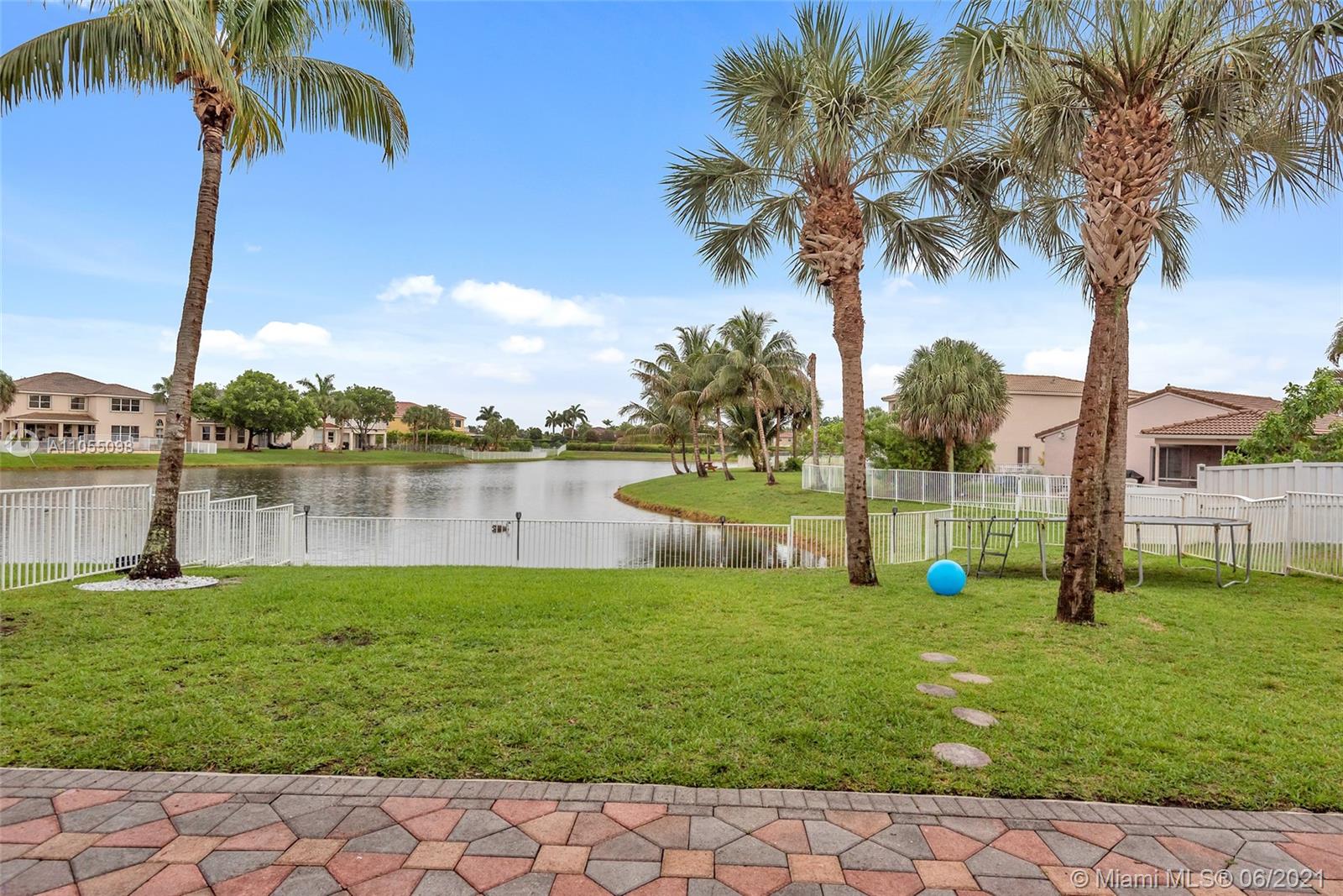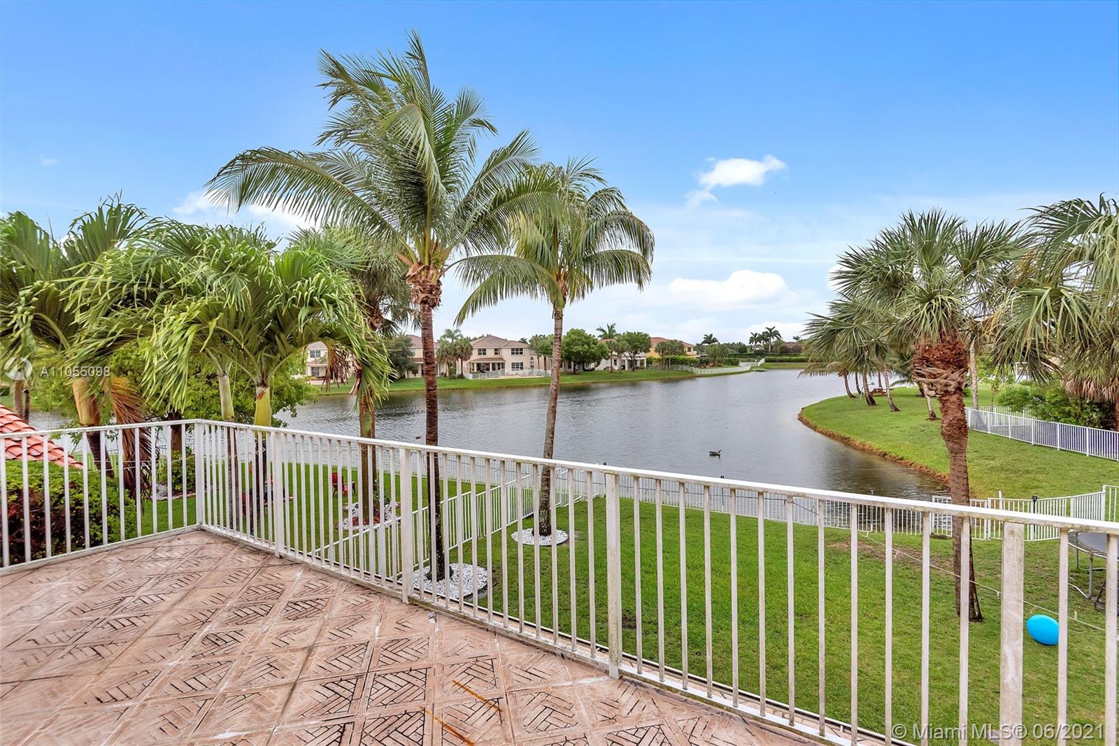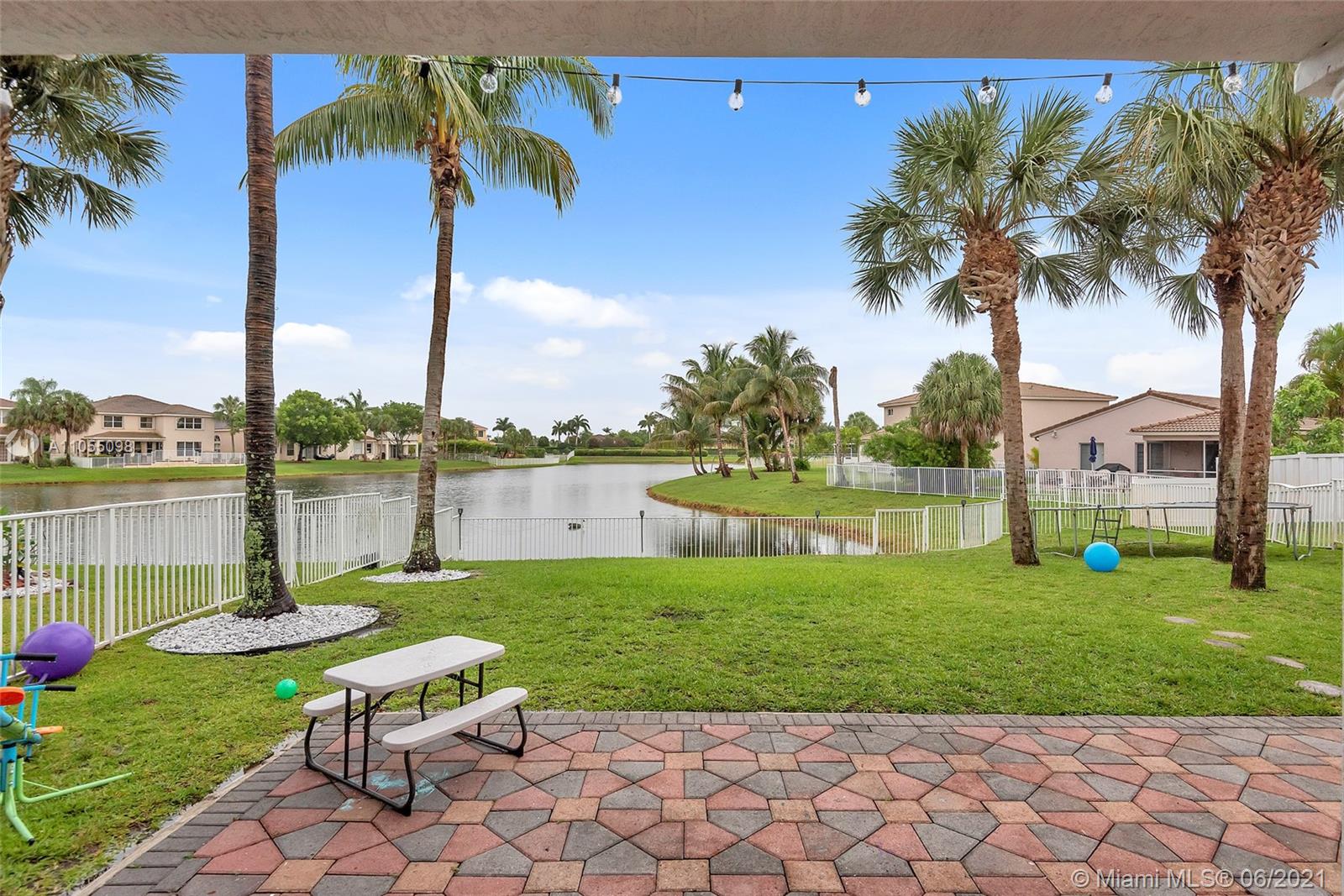 Lakefront 2 Story Home located in gated community Silver Falls in Miramar. Tree lined with palm trees, lakes, playgrounds and walkways. 4 bed, 2 bath, 1 half bath and flex space ideal for office / kids play area / small excerise area. Open concept with lakefront views from kitchen, dining and family room. Granite kitchen counter tops with stainless steel appliances, covered terrace, yard with room for outdoor kitchen and pool. Perfect for entertaining and a growing family. Master includes oversized balcony overlooking the lake. Expanded paved driveway fits 3 vehicles. Newly finished flooring in 2 car garage with ample storage space. Accordion shutters, solar panels, electric water heater, water softener. Close to schools, shops and highways. SEE BROKER REMARKS.