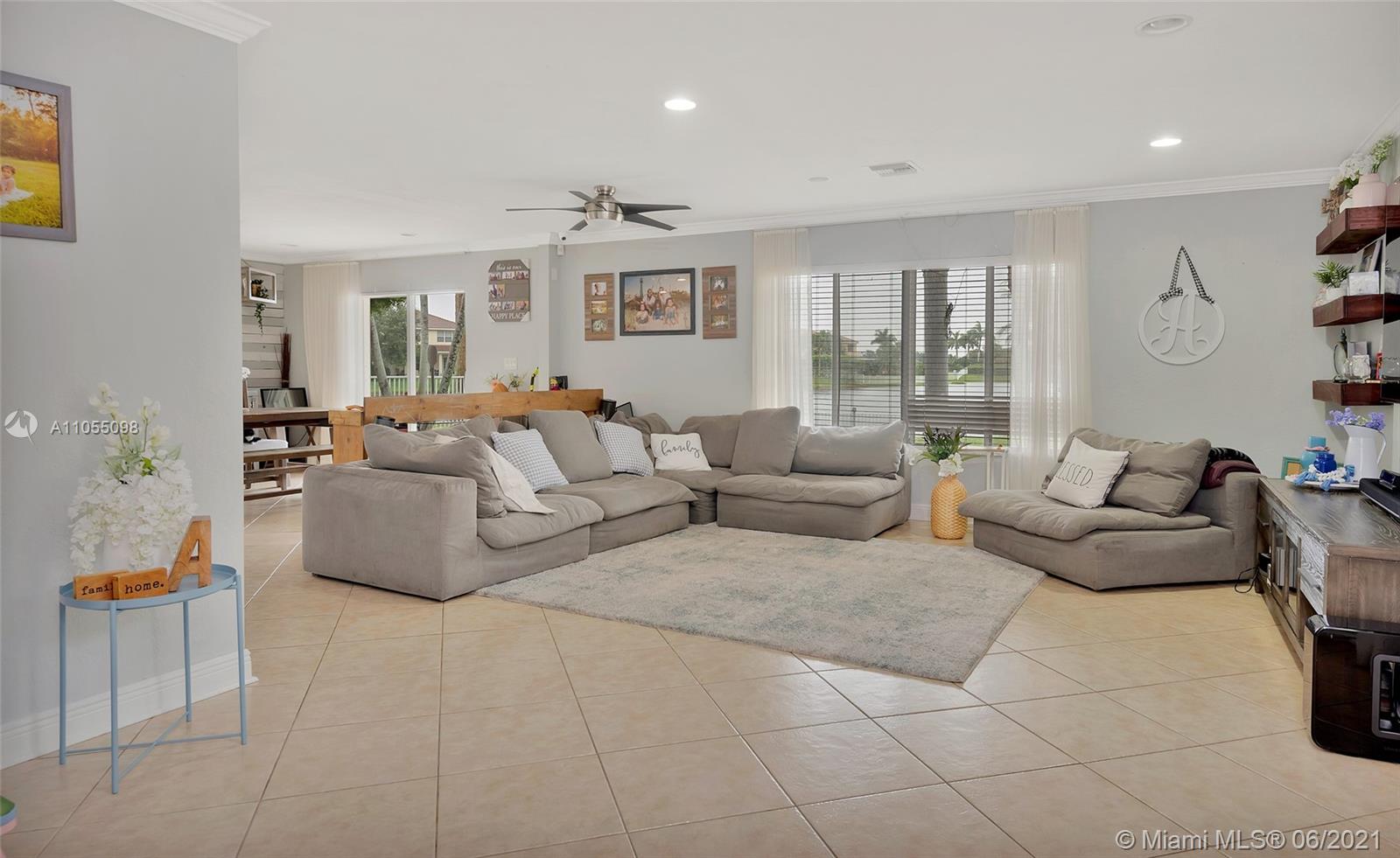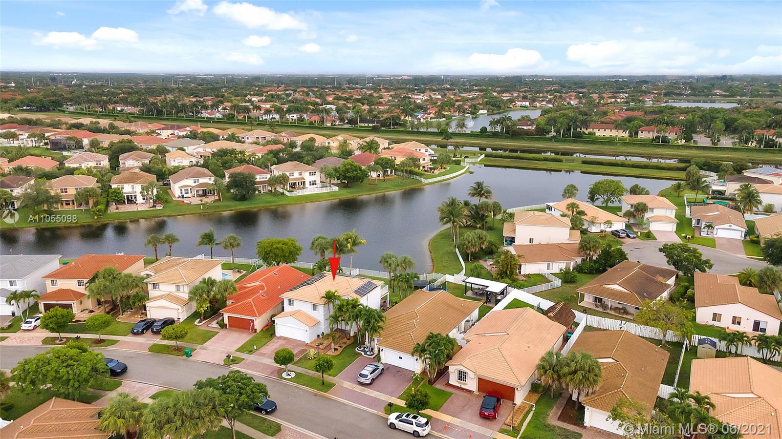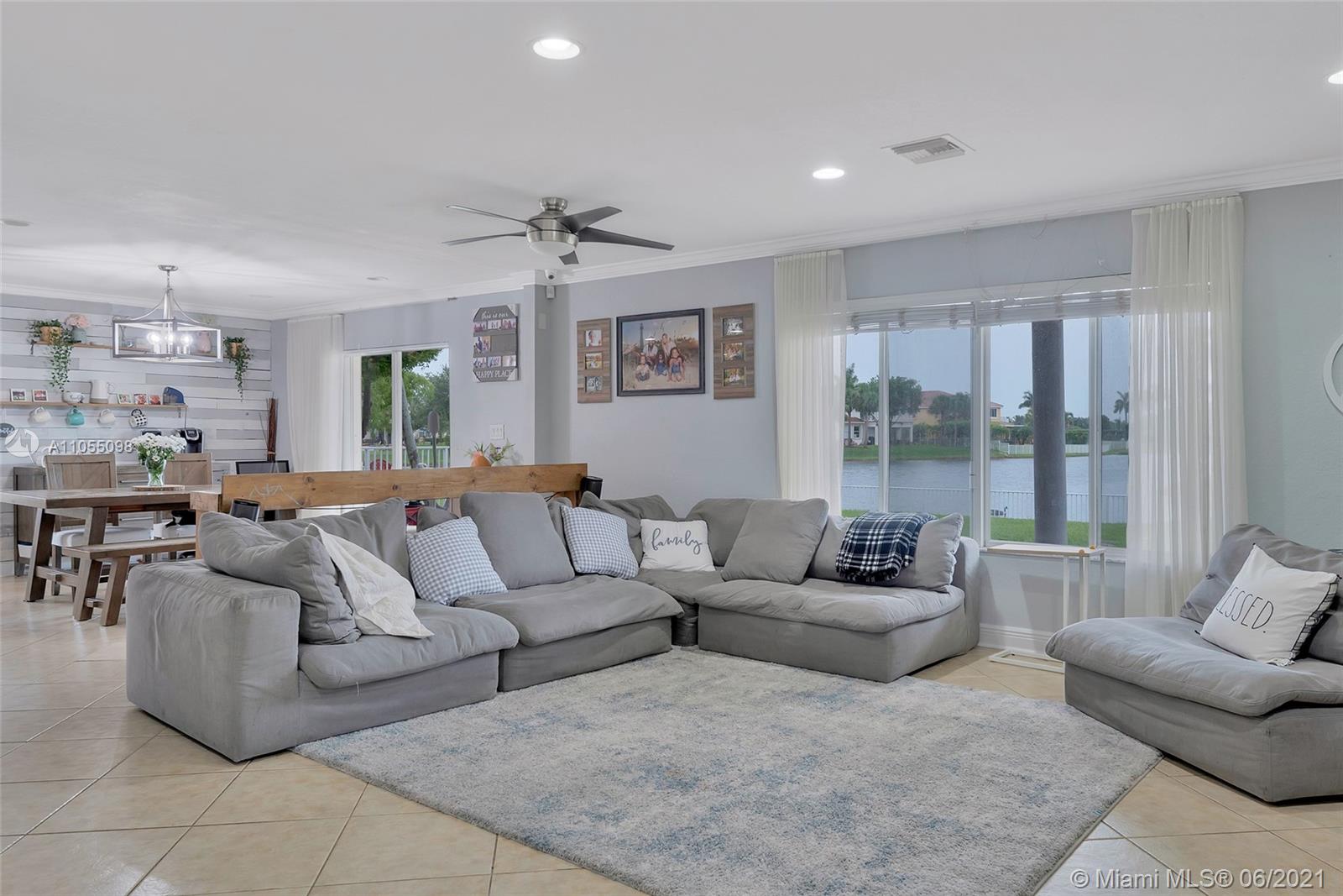 Lakefront 2 Story Home located in gated community Silver Falls in Miramar. Tree lined with palm trees, lakes, playgrounds and walkways. 4 bed, 2 bath, 1 half bath and flex space ideal for office / kids play area / small excerise area. Open concept with lakefront views from kitchen, dining and family room. Granite kitchen counter tops with stainless steel appliances, covered terrace, yard with room for outdoor kitchen and pool. Perfect for entertaining and a growing family. Master includes oversized balcony overlooking the lake. Expanded paved driveway fits 3 vehicles. Newly finished flooring in 2 car garage with ample storage space. Accordion shutters, solar panels, electric water heater, water softener. Close to schools, shops and highways. SEE BROKER REMARKS.