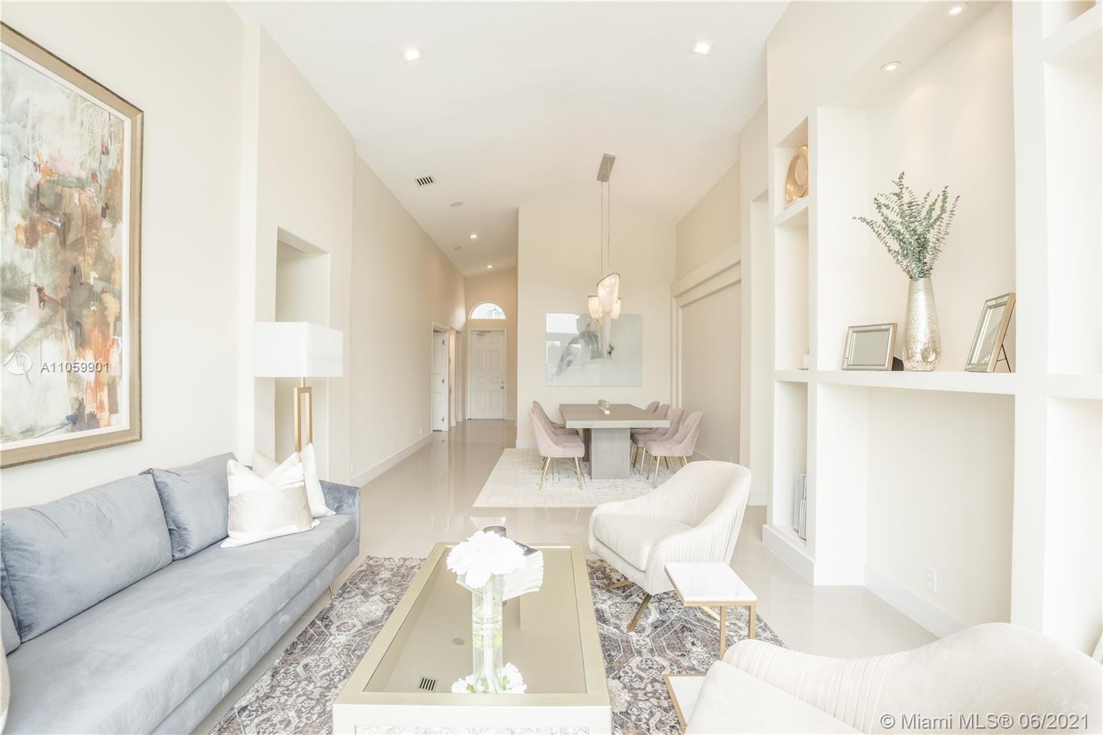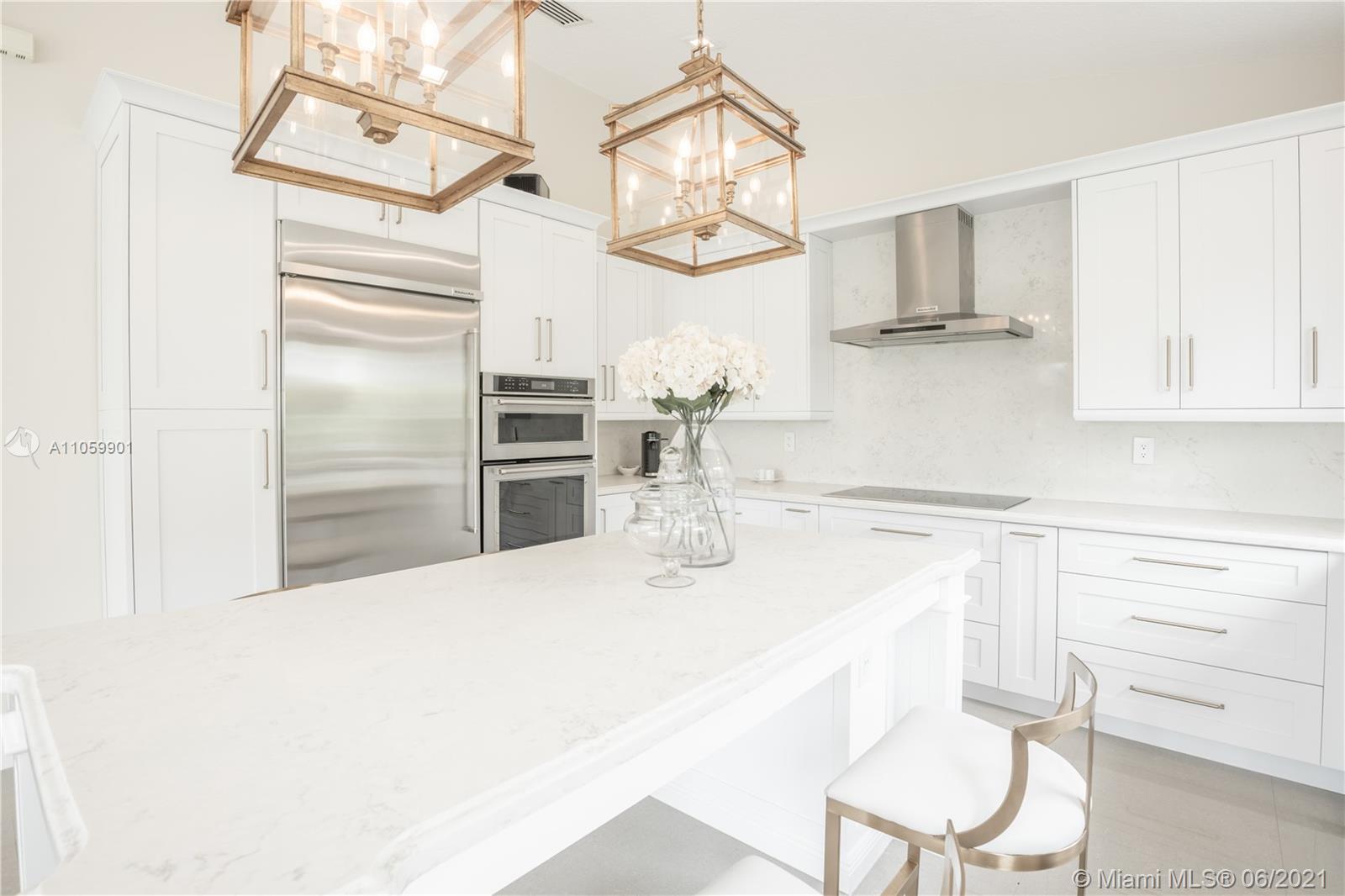 This luxurious, modern, dream home features 4 bed/3 bath, interior laundry room & a 2 car garage. The backyard features a pergola witha gorgeous custom salt water pool with fountains overlooking the lake! Your future home features a Pelican filtration water system delivering chlorine/chloramine-free water. The spa-like master bath features a deep standalone tub, double sink vanity & a large glass enclosed shower. The spacious kitchen includes KitchenAid built in SS appliances & an oversized quartz island perfect for entertaining. Other luxurious details include: European custom doors, custom California closets, exquisite 24x24 porcelain tile, elegant chandeliers, Eco hurricane impact windows & french doors, new AC, water heater, VacuFlo central vacuum & elegant landscaping to name a few.