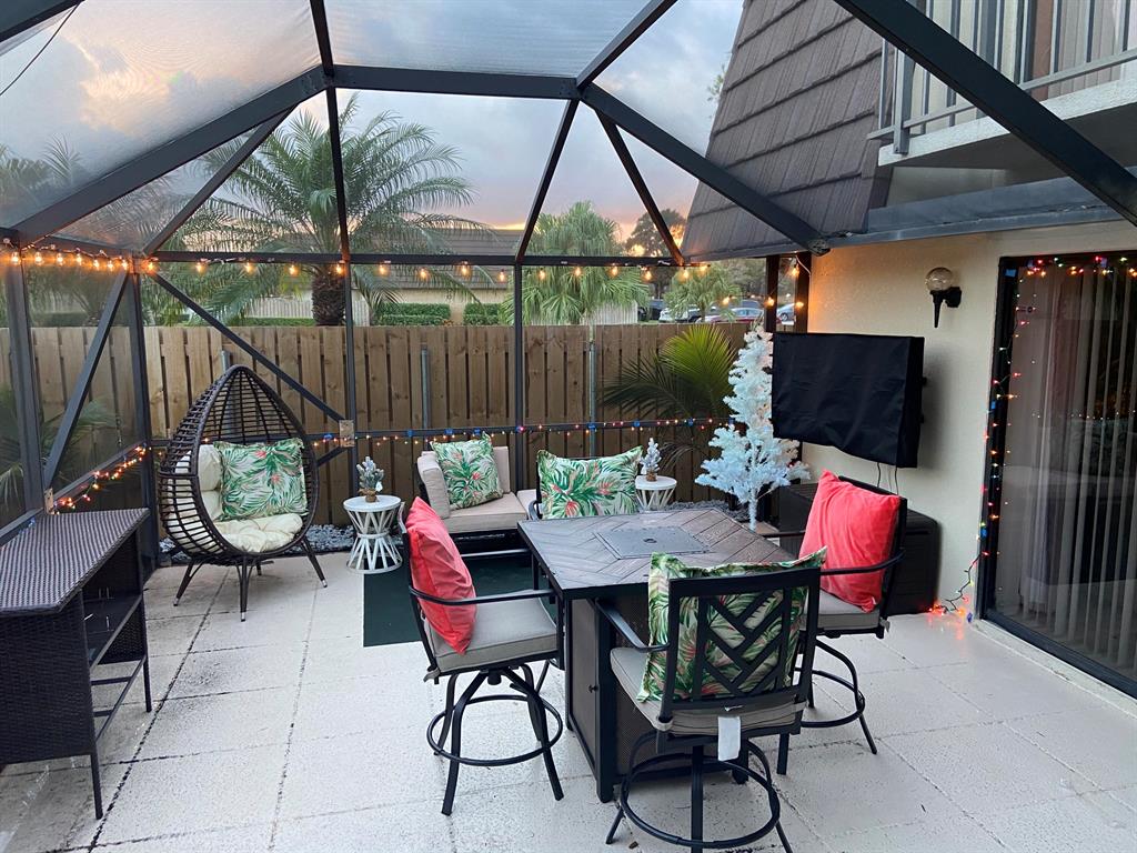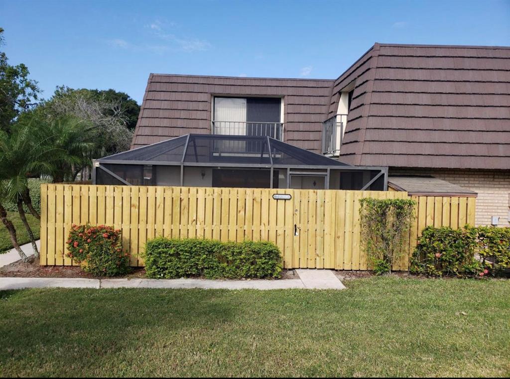 This must see updated 2 bedroom, 2.5 bath town home is located in Heritage Village.This home comes equipped with an exterior privacy fence and screened in patio with customized privacy shades. Stainless steel appliances, laminate floors throughout on the first level while they second level has carpet. Bathroom on the first floor has been completely remodeled. A/C unit is only a year old.