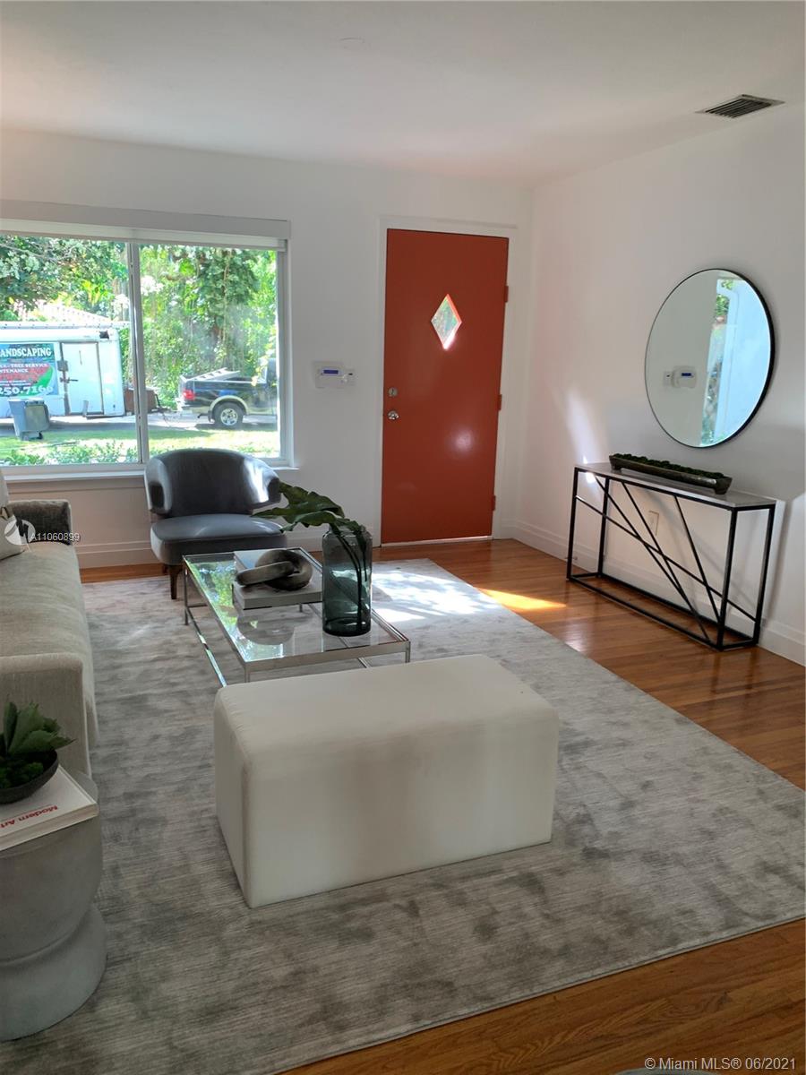 This fashionably remodeled chic 3/2/1 home is picture perfect and ready to move in. Gourmet kitchen w/ gas range, top of the line stainless appliances, quartz counter tops, wood cabinets & lime stone flooring. Split bedroom plan w/ private master suite & custom built in closets. Formal living & dining areas w/ hardwood floors. Large comfortable family room that enables you to enjoy the private patio & garden from the impact glass sliding doors. Also features small office space off the family room. 1 car garage w/ new top of the line washer & dryer. This home is located on a quiet street, close to Merrick Park, Coconut Grove, South Miami. Great home for anyone looking for a turn key, low maintenance property.