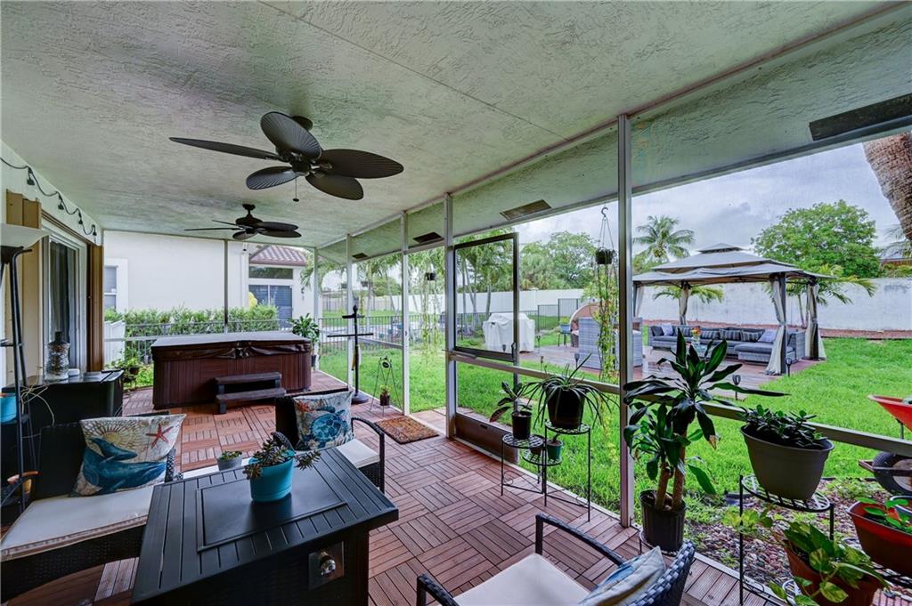 Looking for a Home in a Gated Community? This beautifully 4 Bedroom / 3 Full Bath home comes with a Pool Table and 4 Person Jacuzzi. Located in the North Section of Coral Springs, this home features wood-like floors throughout, vaulted ceilings, crown molding, updated kitchen with wood cabinets, granite counters, custom stone backsplash and stainless steel appliances. Bathrooms updated with modern designer style finishes. Cabana style full 3rd bathroom with access from back yard. Large Master Bedroom with walk-in closets looks out to the private fenced yard. Covered screened patio with custom designer flooring. Jacuzzi less than 1 yr old with LED lighting. Separate custom deck is perfect for outdoor entertaining. Accordion Shutters protects this home. Lot has plenty of room for a pool.