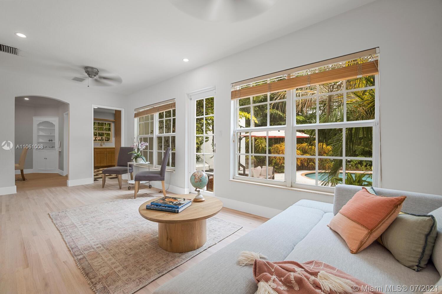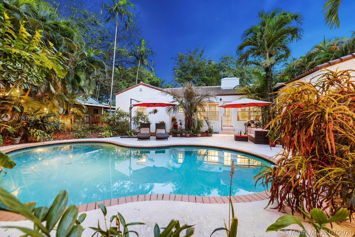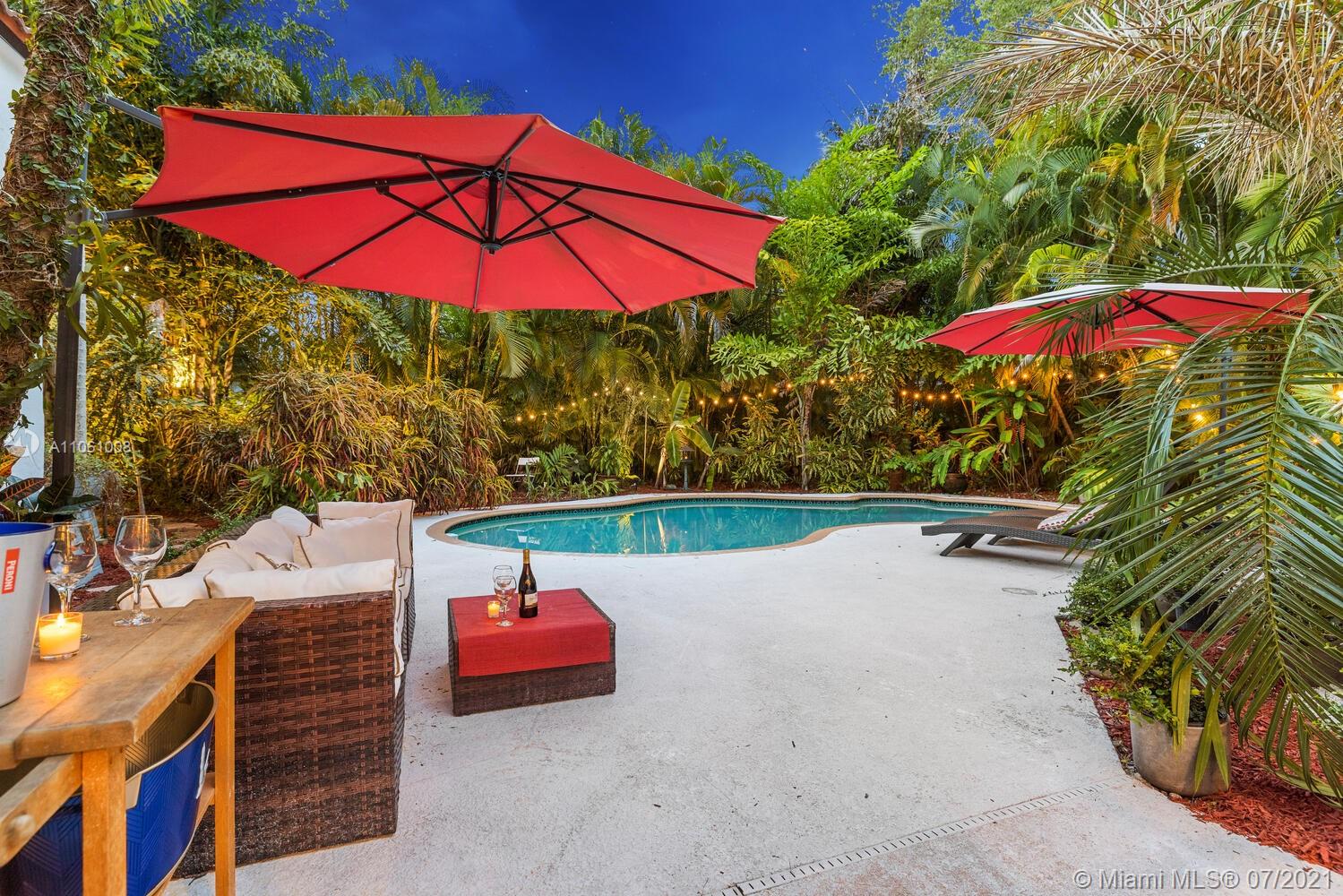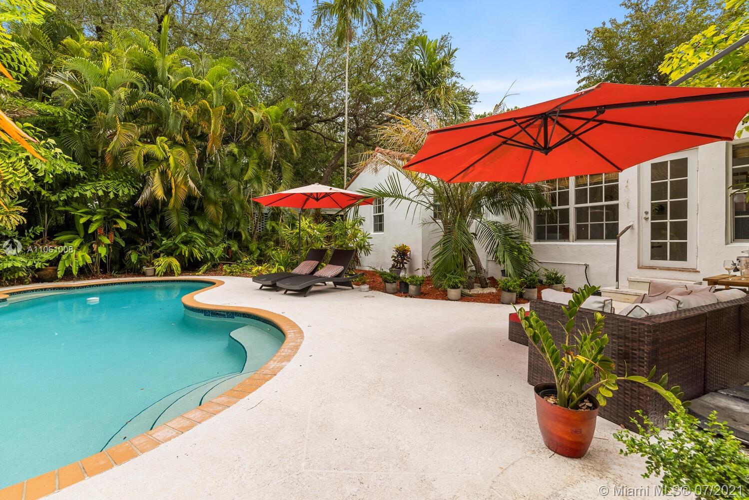 Your own personal retreat in this beautifully updated flowing home with spectacular pool, entertainment space and lush rear gardens. So much room to relax, play or entertain! Spacious living with signature fireplace flows to separate dining and sunny media room overlooking glistening pool waters and tropical gardens. You’ll love the extended eat-in kitchen with new appliances plus large laundry-prep room. Bright and airy throughout with refinished light oak floors, sleek updated baths and spacious bedrooms, each with designer custom closets. Welcoming front porch, new roof, impact windows-doors and a one car garage, all in non-flood zone! You’ll feel like you’re away on vacation, yet just a block to all the cool downtown Miami Shores restaurants and coffee shops. Property is owner agent
