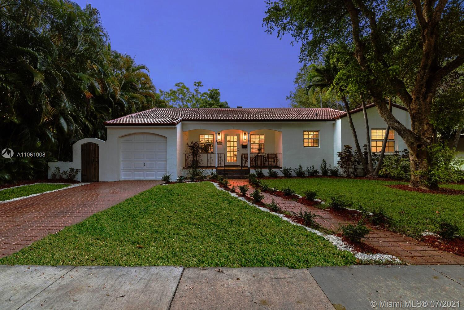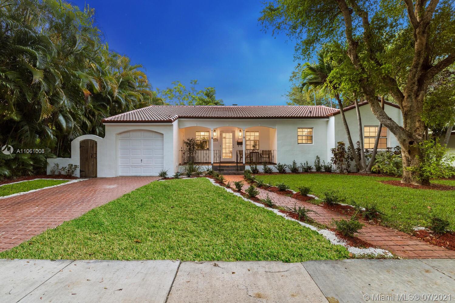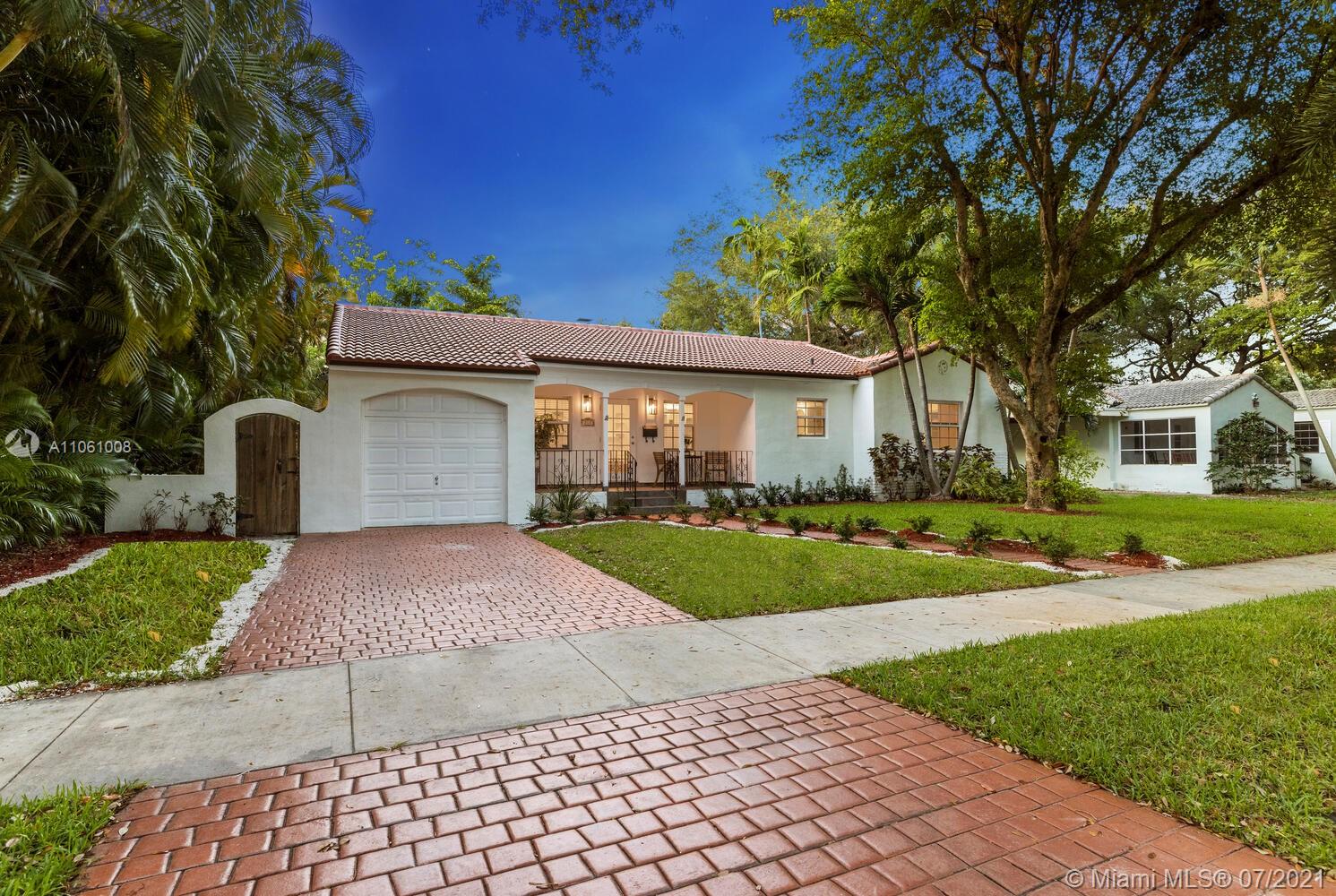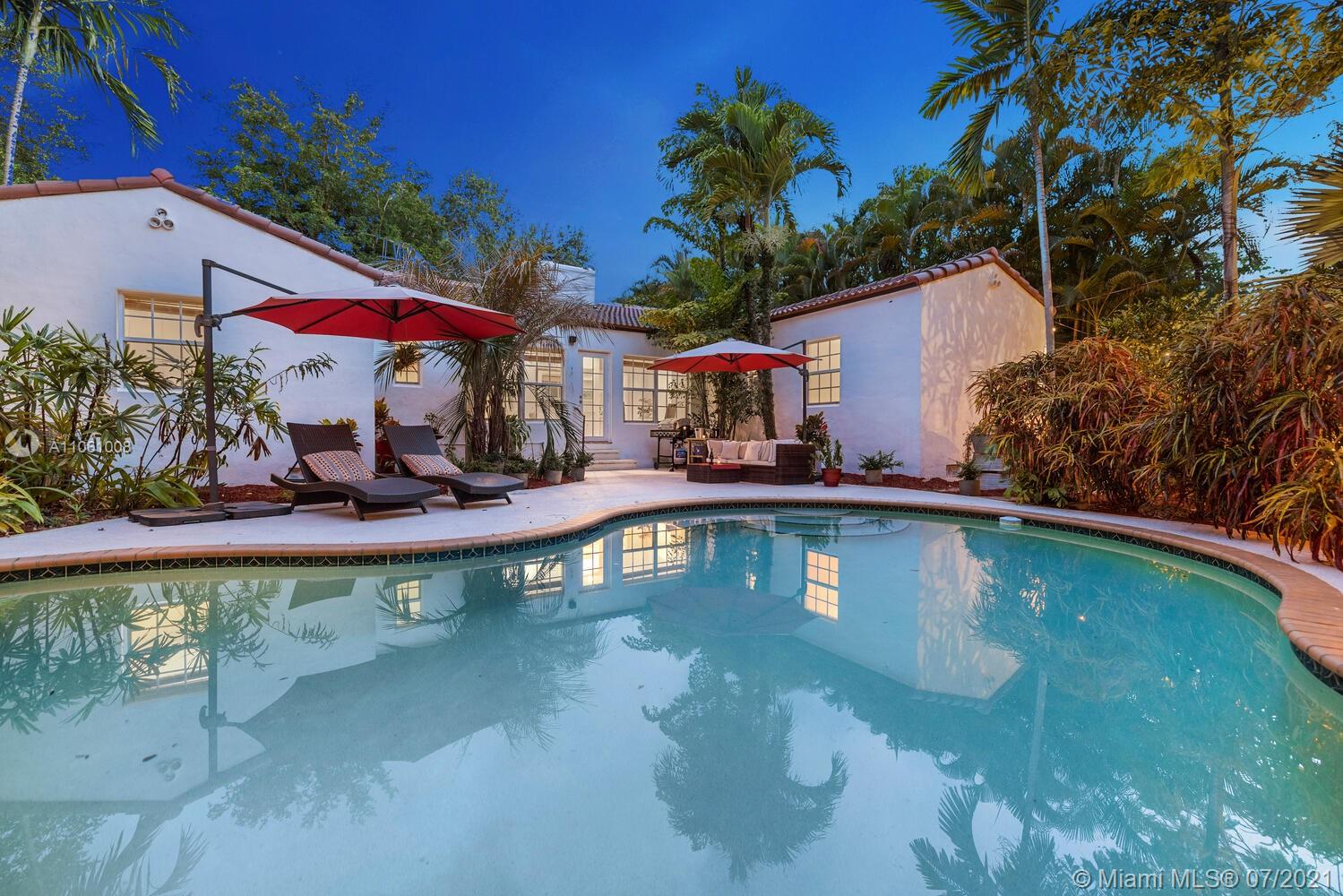 Your own personal retreat in this beautifully updated flowing home with spectacular pool, entertainment space and lush rear gardens. So much room to relax, play or entertain! Spacious living with signature fireplace flows to separate dining and sunny media room overlooking glistening pool waters and tropical gardens. You’ll love the extended eat-in kitchen with new appliances plus large laundry-prep room. Bright and airy throughout with refinished light oak floors, sleek updated baths and spacious bedrooms, each with designer custom closets. Welcoming front porch, new roof, impact windows-doors and a one car garage, all in non-flood zone! You’ll feel like you’re away on vacation, yet just a block to all the cool downtown Miami Shores restaurants and coffee shops. Property is owner agent