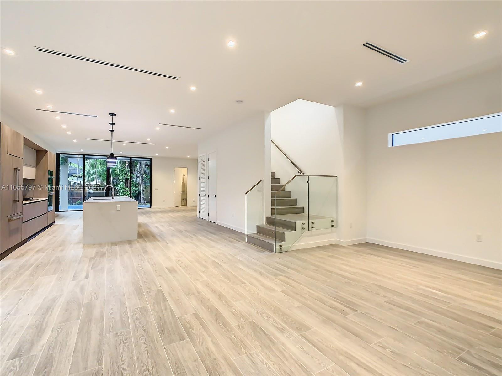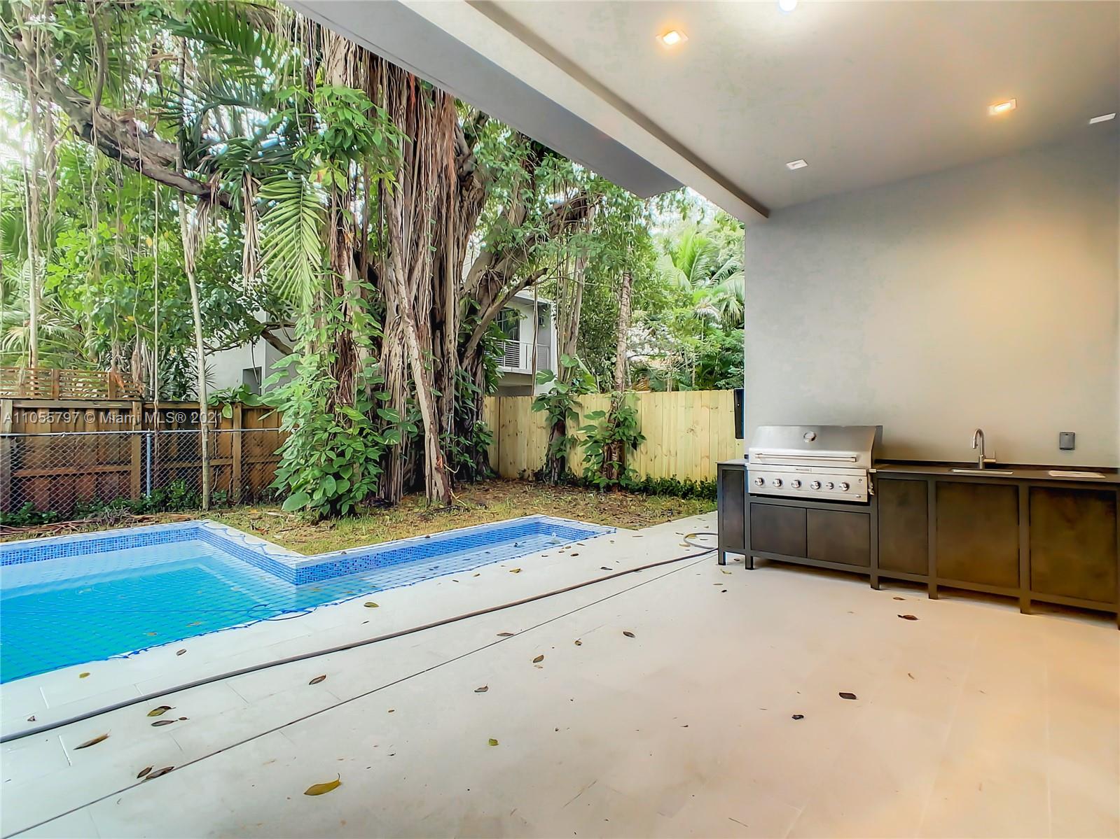 Back on Market! - Last One Available - One of 2 Custom townhouses perfectly located on a low traffic street in Coconut Grove. Walking distance to town center. Custom designed Italian kitchen cabinetry and quartz countertops with top of the line appliance package. Floor to ceiling glass sliding doors allows the light to flow through the home with views to the rear yard with porcelain deck, swimming pool and summer kitchen area shaded by a specimen Stranger Fig tree. Porcelain wood grain tile throughout the home and interior glass railings on staircase leading to spacious bedrooms on the second floor. The Master Bedroom has a terrace and oversized closets. Designer plumbing fixtures and solid wood doors are just some of the many impeccable details throughout the home. Private pool.