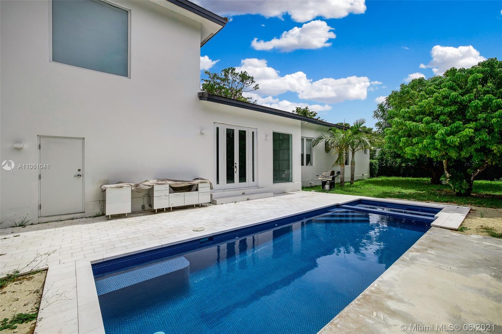 Modern home in Coral Gables, completely renovated, high impact doors and windows, large open living area perfect for entertainment, featuring an well appointed Mia Cuccina kitchen with top of the line appliances ( Miele double refrigerators,wine cooler, gas range, etc). Thasso marble floors throughout, contemporary European finishes in all bathrooms. Large custom walk-in closets . Two car garage, with separate laundry room. High ceilings. Fenced and private backyard with built-in grill, pool and jacuzzi, garden has fruit trees. All bedrooms have in-suite bathrooms, additional pool designated bath and the guest half bath. Electric shades, Smart Home Control 4 System, Italian custom doors. Within close vicinity to Country Club, University of Miami, Biltmore Hotel, restaurants and shops.