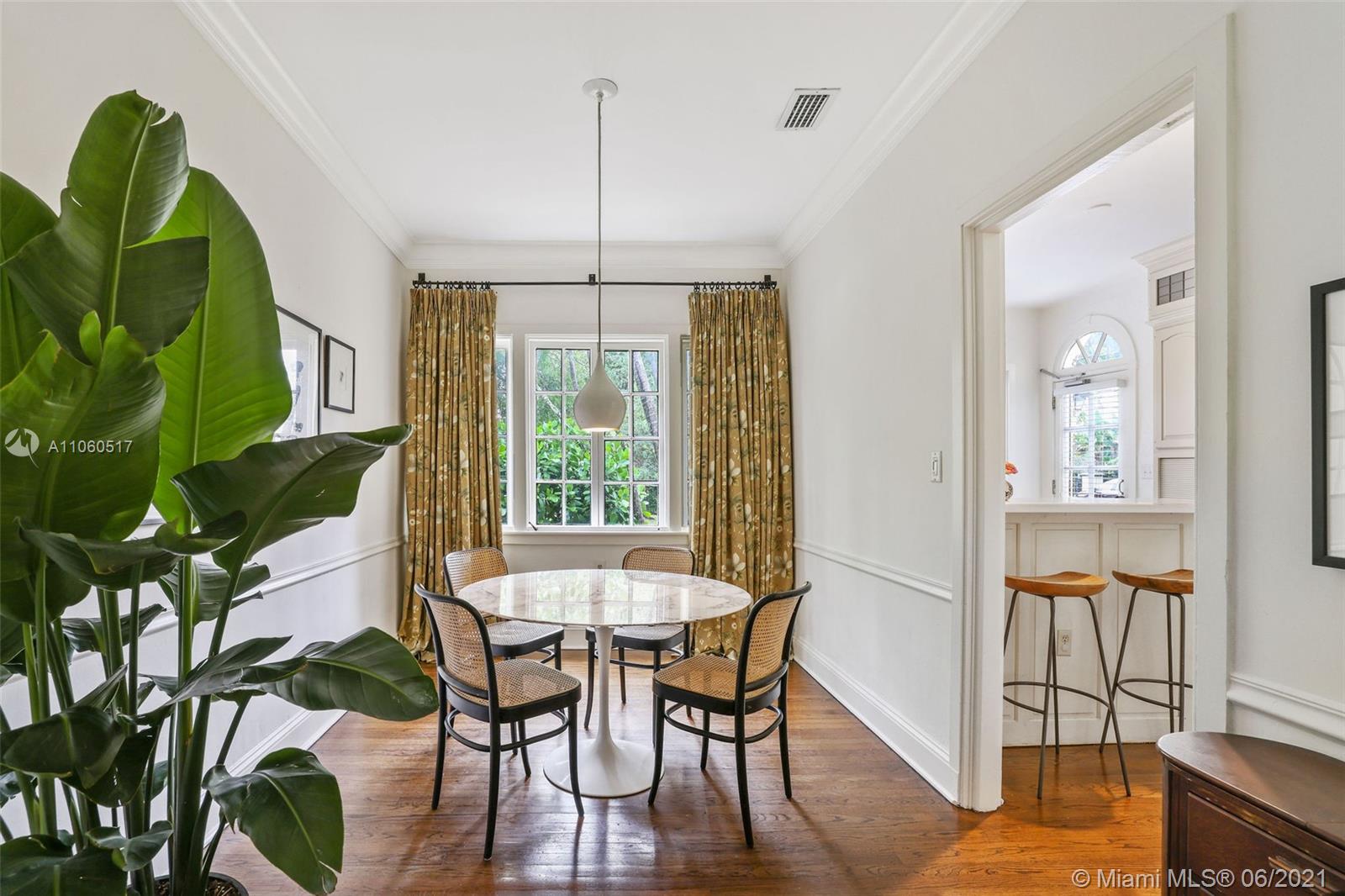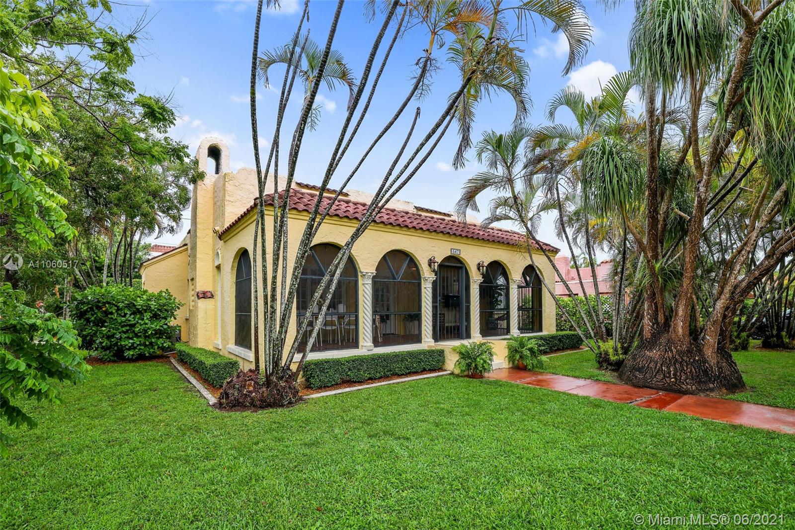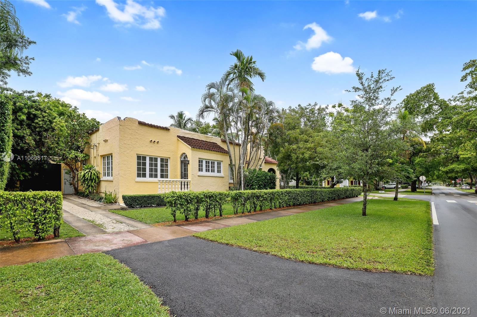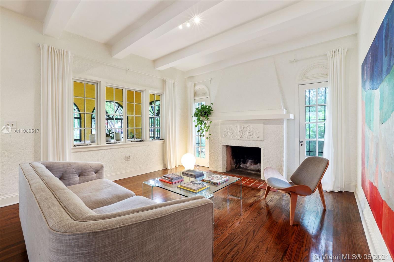 Stunning Old Spanish home with true charm on a beautiful tree lined street. Tastefully remodeled with modern touches that blend with the warmth of its original design, with beautiful arches, volume ceilings, and gorgeous hardwood flooring. Large screened porch provides the perfect outdoor family room. The living room is grand with a charming fireplace & beautiful casement windows, opening to a sun-filled reading room or home office. A separate dining room enters into a spacious kitchen with pantry. Bathrooms were recently remodeled. Spacious garage and partial impact glass windows. Located in one of the most desired areas in Coral Gables and walking distance to restaurants, parks & schools.