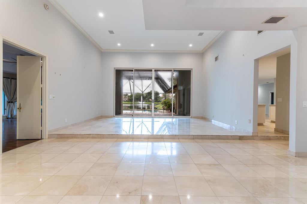 Spacious family home with long lake view as you walk through the double front doors to great room with soaring ceilings. All marble tile throughout living areas, bedrooms all have newly installed solid oak wood floors. Main bathroom was renovated about 7 years ago and features a his and hers division with shared shower, all other bathrooms and laundry room newly renovated. Kitchen is newer too, renovated about 6 years ago with soft white cabinets and glass countertops.Split bedroom plan offers complete privacy. Fully house gas generator was installed about 5 years ago. Accordion hurricane shutters throughout.Amenities of Boca Pointe Country Club available, various membership options including short term.