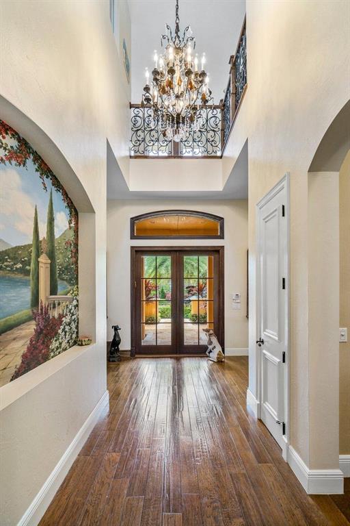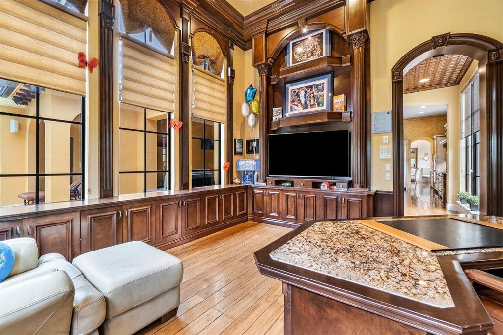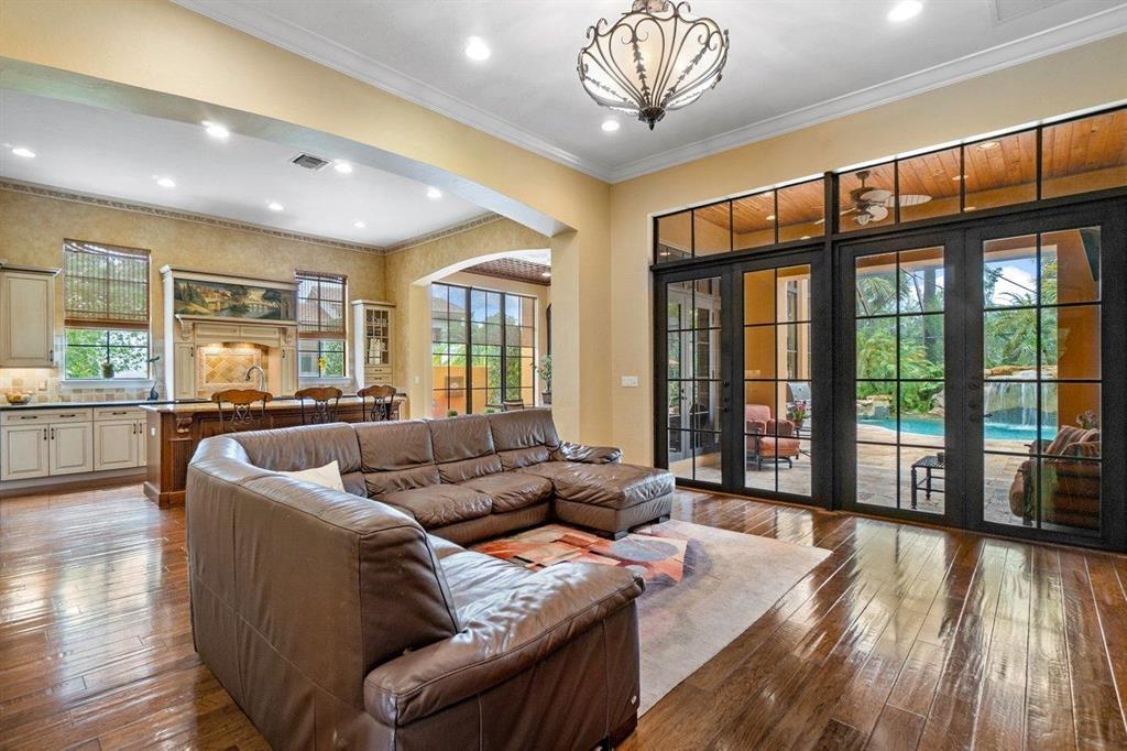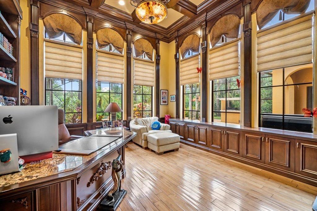 Stunning expanded Grenada model located in the prestigious Parkland Golf and Country Club. Situated on the largest corner lot of a cul-de-sac, with a huge side yard. This 4 bedroom, 3.2 bath home with an extended loft, feels like a private oasis. The screened in resort style backyard features a rock waterfall, summer kitchen, custom heated pool/spa and custom lighting. Elegantly decorated, this home has rich hardwood details, a custom kitchen which includes two sub zero, dual temperature, 300 bottle wine storage units, intricate crown moldings, coffered ceilings and a sonos music system throughout the home. The sophisticated built in office is surrounded by expansive windows and is drenched in natural sunlight. Hurricane impact windows/doors. This home is turnkey and truly one-of-a-kind.