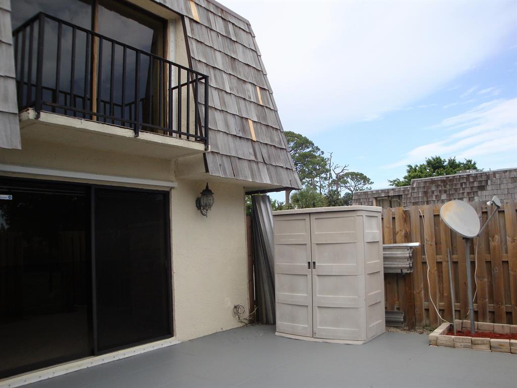 Corner unit, 2-bedroom, 2 baths with fenced patio great for outdoor entertainment. The dining room features custom mirror, spacious living room, each bedroom with a balcony. New Gas water heater & gas dryer, shed, hurricane panels. Two parking spaces & plenty of guest parking. Located on the desirable well-maintained community close to major highways, restaurants, shopping, schools, library, beach, parks, airport. Low HOA fee.