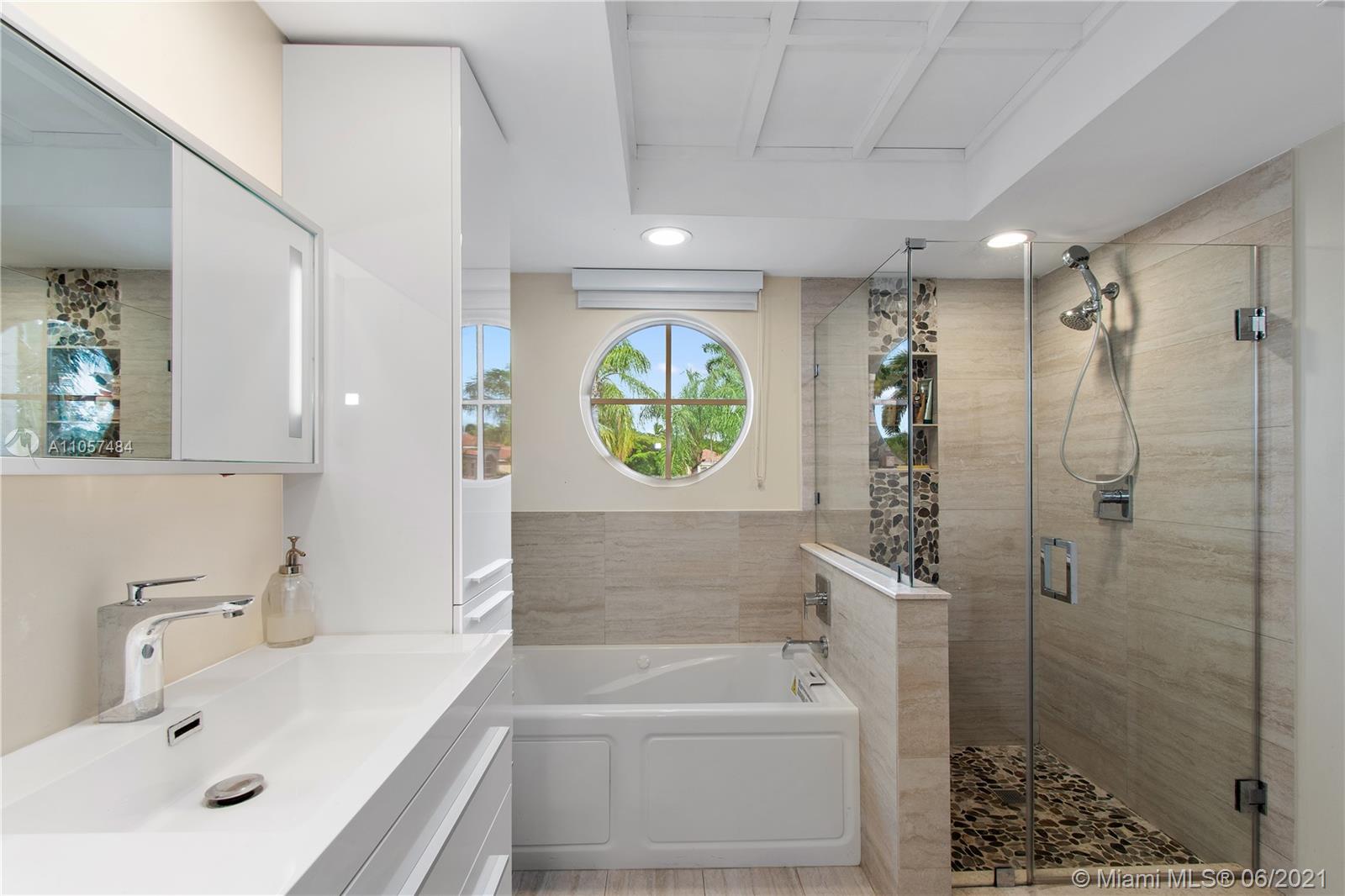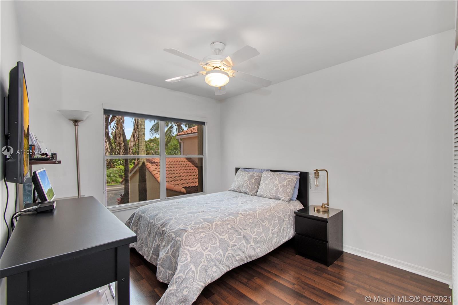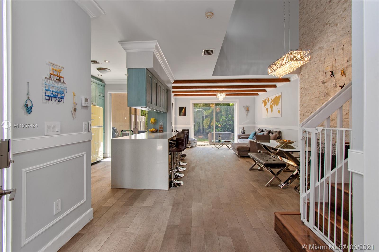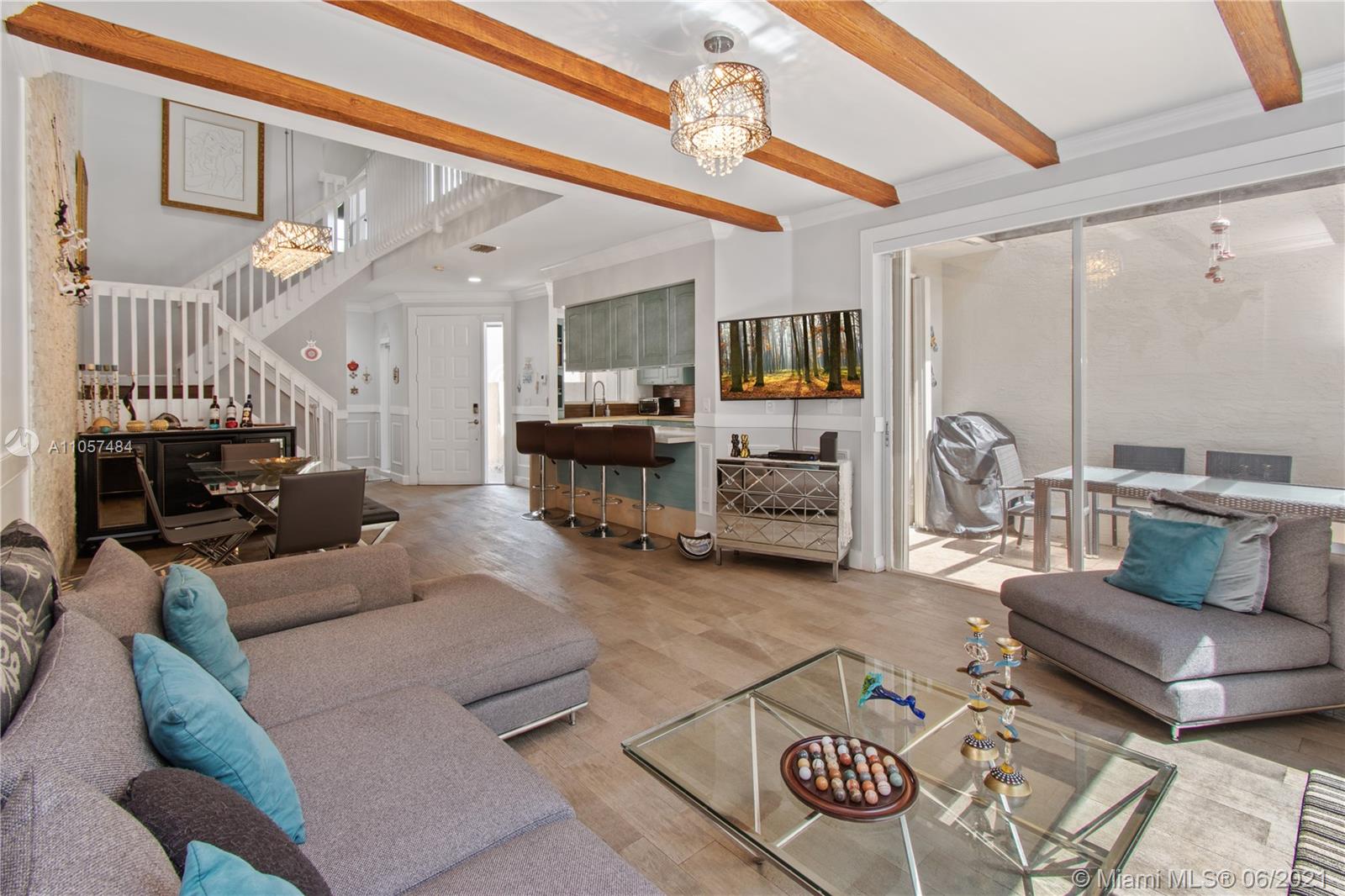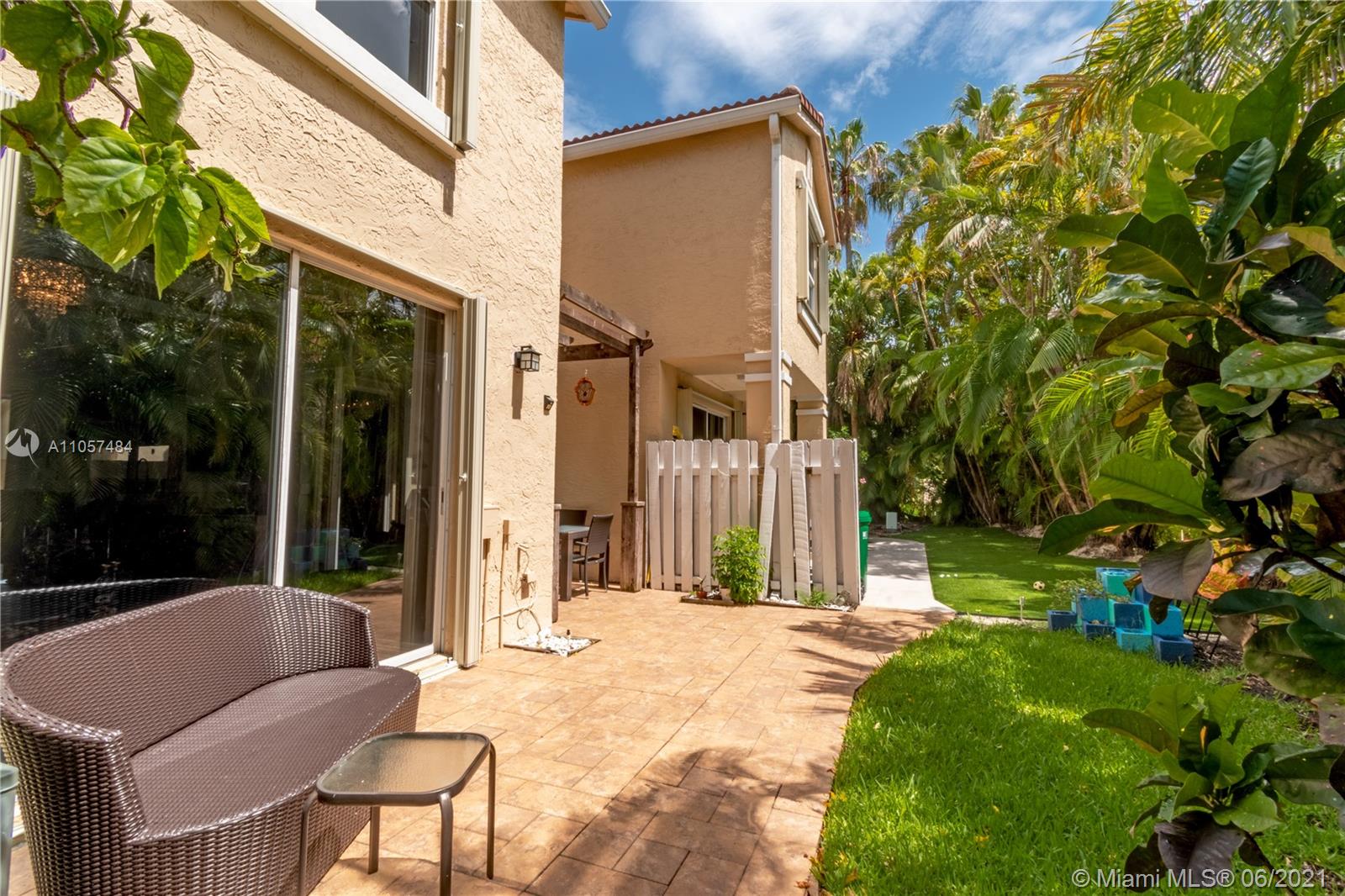 Tastefully renovated town-home in the heart of Aventura! Spacious 3 bedrooms, 2 full bathrooms upstairs and one powder room/half bath downstairs- completely turn key with spectacular charm. Updated with new bathrooms, appliances, hurricane impact windows, shutters, and artfully designed throughout. Lush garden views provide complete privacy. Unique to only 3 townhomes in this community, is an offset entrance with a barrier from the main road for extra safety and additional parking. Very secure, gated community that is walking distance to an A+ rated school (Don Soffer Aventura High school) , several plazas, Aventura mall, gym, dog park, synagogues, etc.