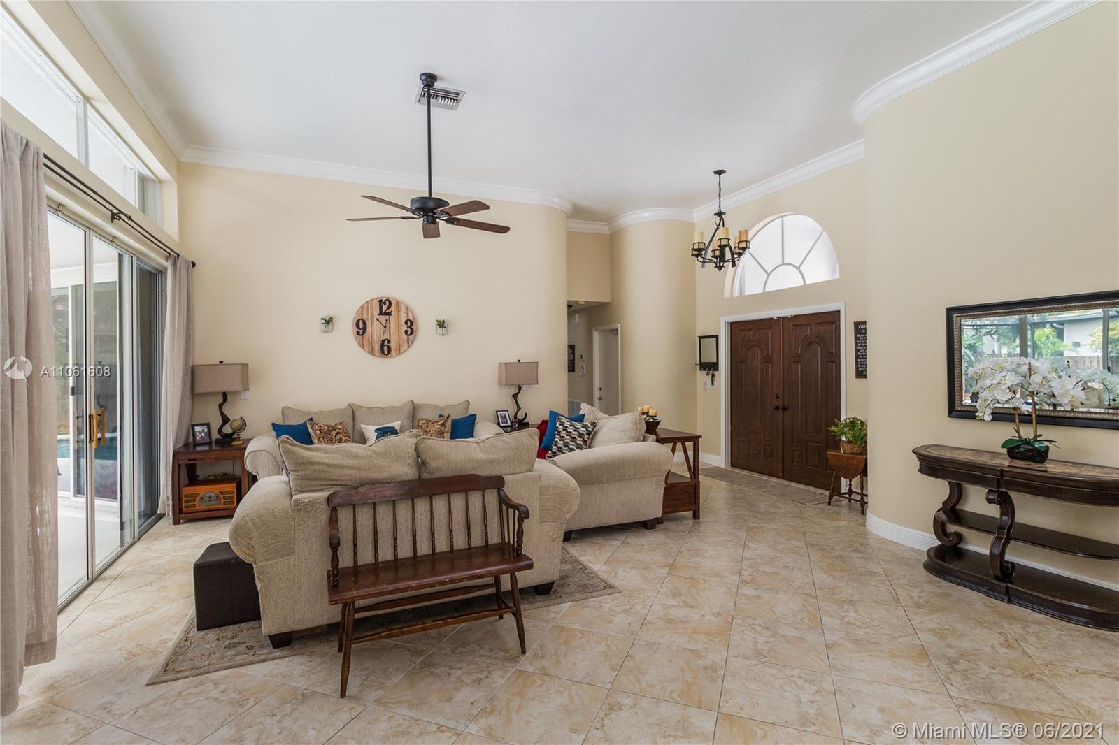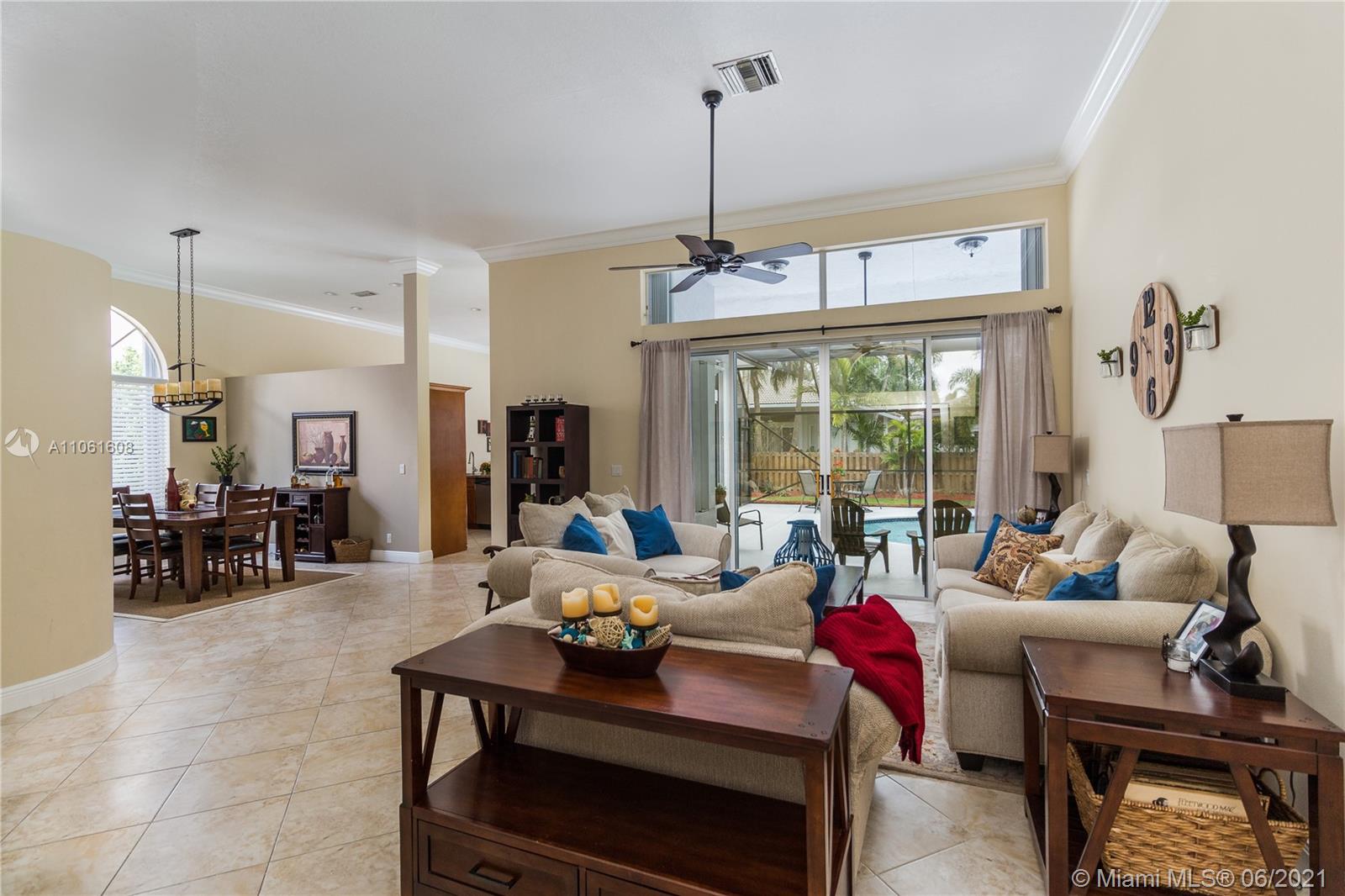 Large well-appointed 4 bedroom Coral Springs home in The Estates of Turtle Run shows true pride of ownership. Ideal floor plan & vaulted ceilings make hosting 30+ guests a breeze. Open kitchen & living area functionally flow to an outdoor space boasting multiple access points. Perfect for entertaining, sprawling screened patio (enclosure redone 2017) & lagoon-style pool (new motor 2018). Master bath w/ dual vanity sinks, soaker tub, Roman shower & separate water closet. Stainless steel/granite kitchen w/ large breakfast bar. Custom closetry in all rooms, new washer/dryer & laundry area (2017), Trane 2-stage AC upgraded 2017, hot water heater 2014-w/permits. All windows & doors w/ hurricane protection. Close to Turnpike, Sawgrass Expy & Coral Springs conveniences of shopping, dining, more.