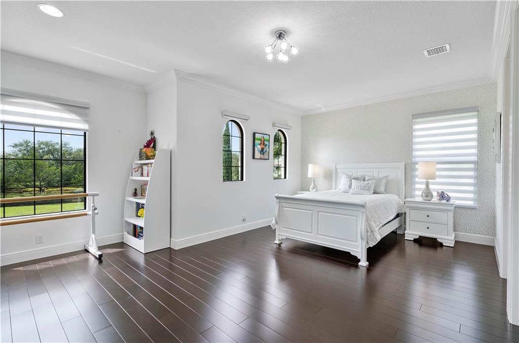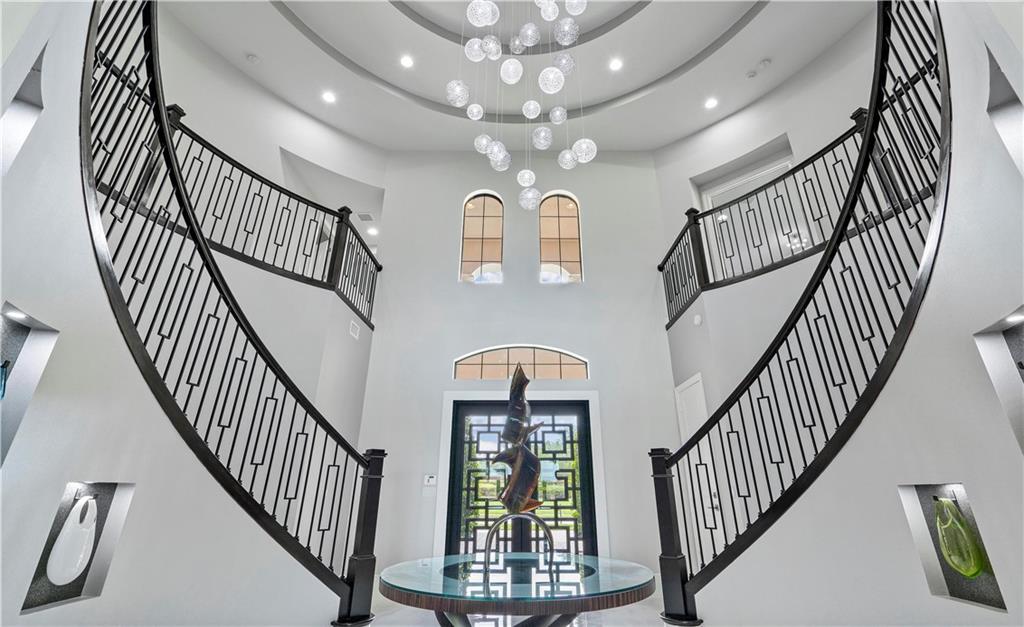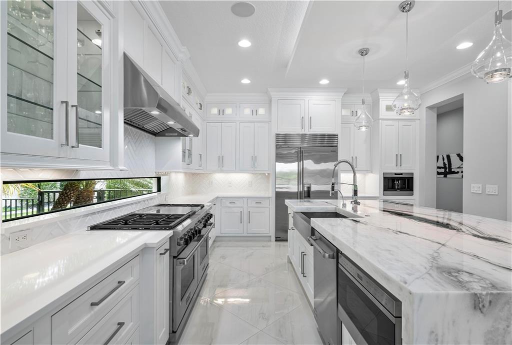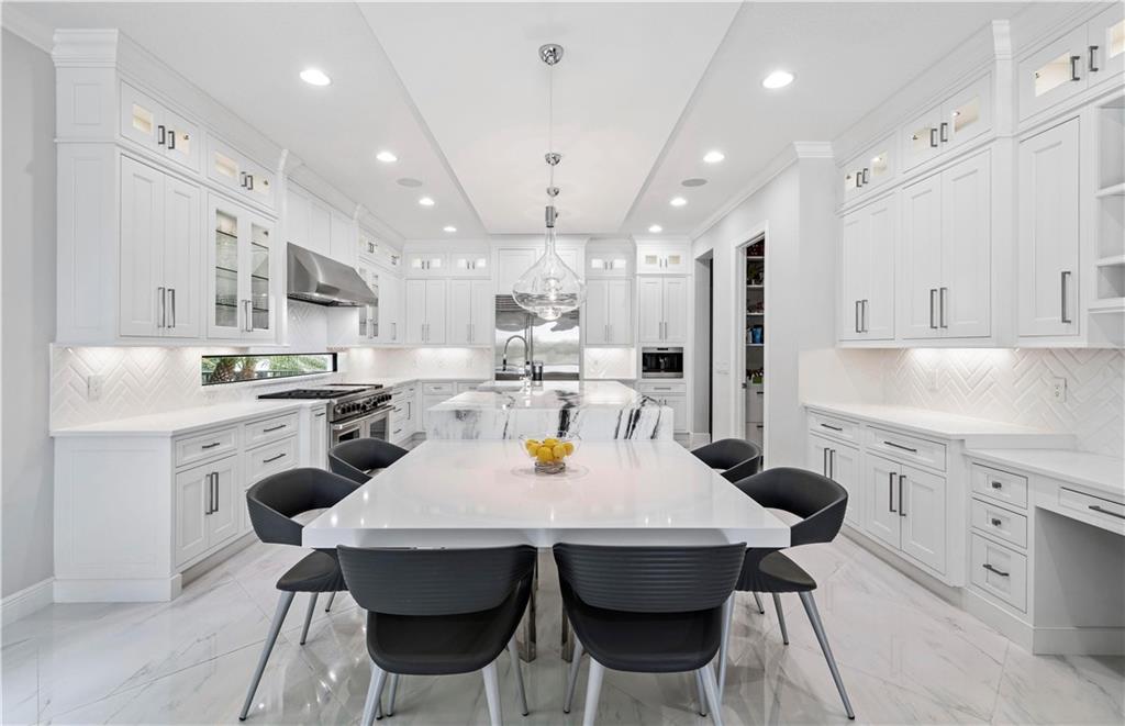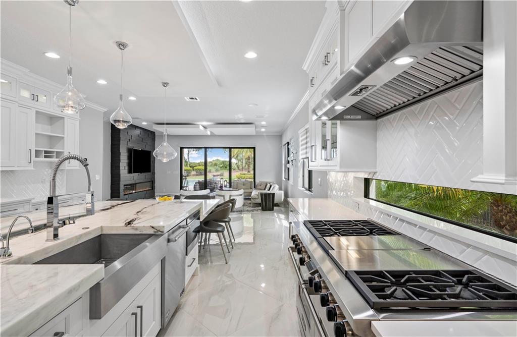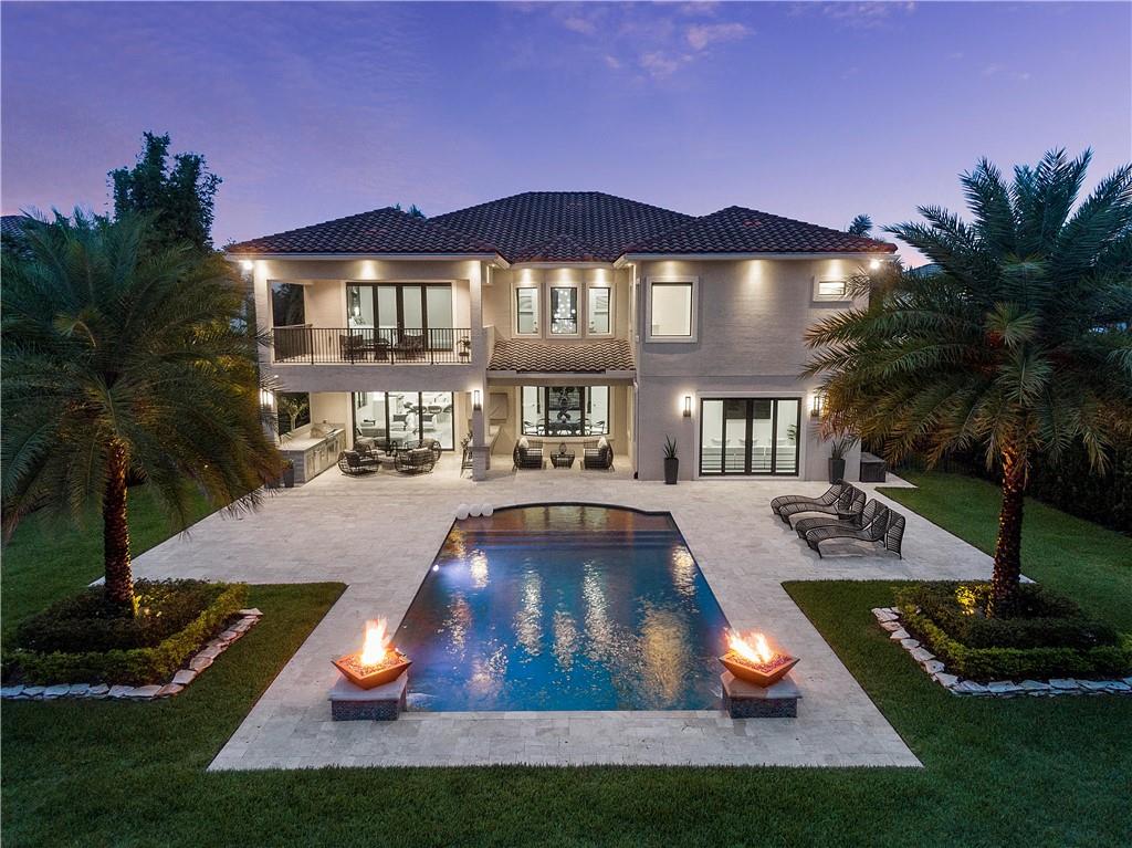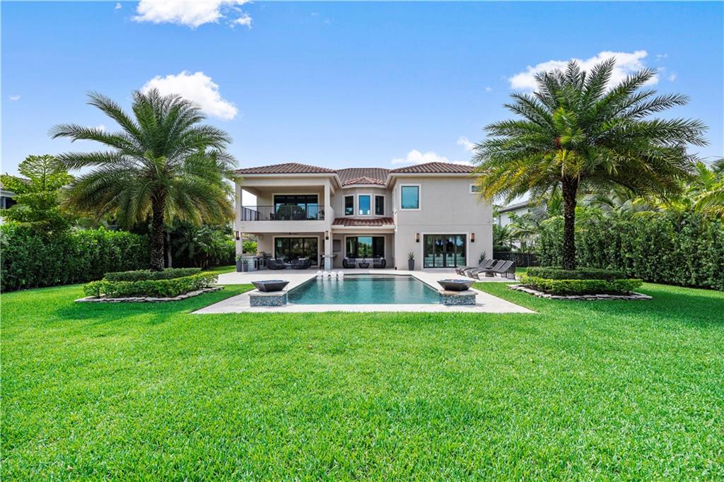 Perfection in Parkland Golf & CC! 6,300+ sq.ft, 4 car garage, 5 beds, 5½ baths, bonus room, office, & retreat. Come enjoy this professionally designed free flowing modern home. Glass/wrought iron doors lead you into a soaring 25’ entry with dual staircases that is inviting & bright. The chef’s kitchen has stacked cabinets, Wolf/Sub Zero appliances & a large marble waterfall island. Designer wallpaper, exceptional lighting fixtures & custom built-ins add character as you move from room to room. Step outside under the large lanai onto your stone deck with a modern heated pool, a full summer kitchen w/bar, mature landscaped fenced-in lot on almost a half-acre of space. Impact glass, generator, golf/water views, built in speakers & more. This is So FL country club living at its finest.