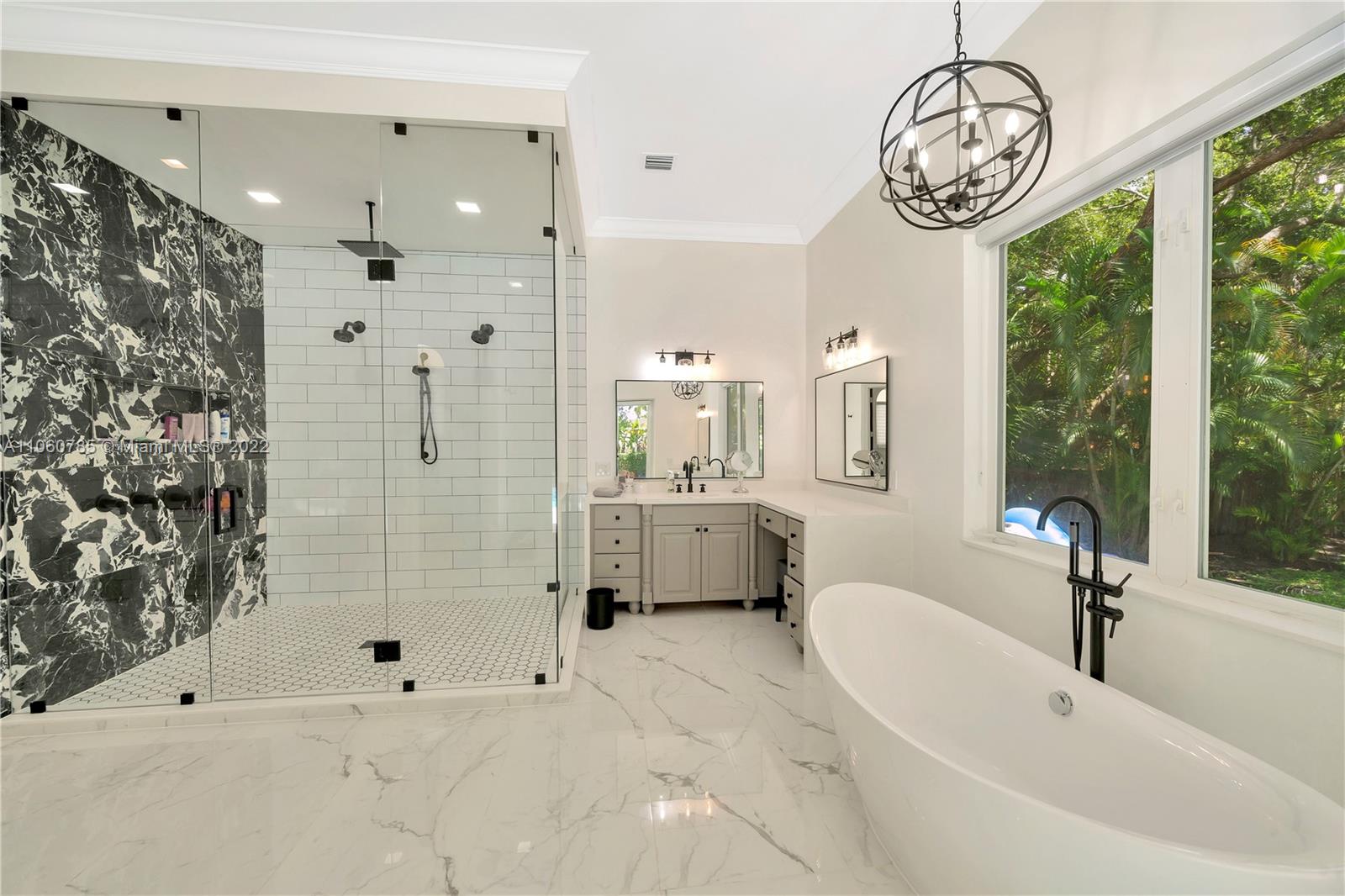 Stunning 1-story home recently remodeled in NE Pinecrest! This home sits on over 1 acre with a half court for the NBA enthusiast. Plenty of privacy with hedges surrounding the property and electric gate at entrance. 3-car garage, 6 bedrooms on one side of the home and an additional service/guest room on the opposite side, laundry room, remodeled kitchen and bathrooms, etc. The perfect home for a large family that wants to be minutes from the best schools Miami has to offer.